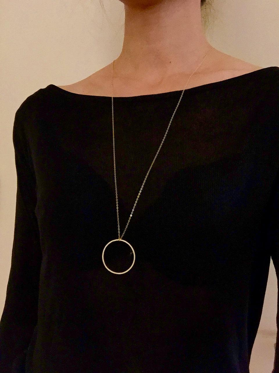 Collar de Cadena Larga para Mujer con Nuevo Elegante Anillo de Metal Transfronterizo Europeo y Americano, Accesorios de Cadena para Suéter de Mujer