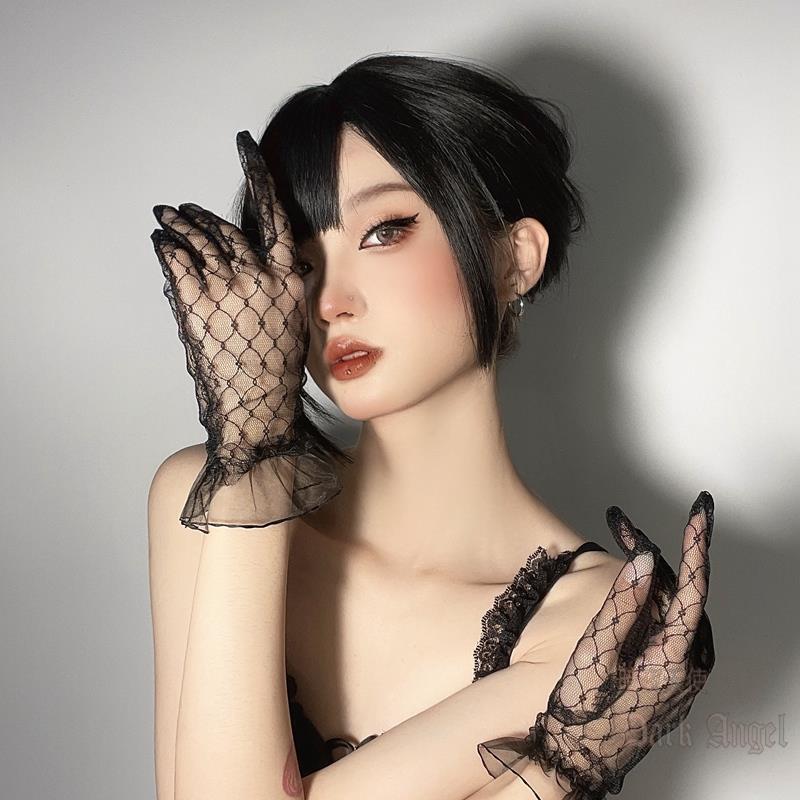 Nuevos guantes de novia para boda, guantes de encaje, dedos blancos, negros, de alto rendimiento, estilo lolita, manga larga, estilo japonés, bonitos