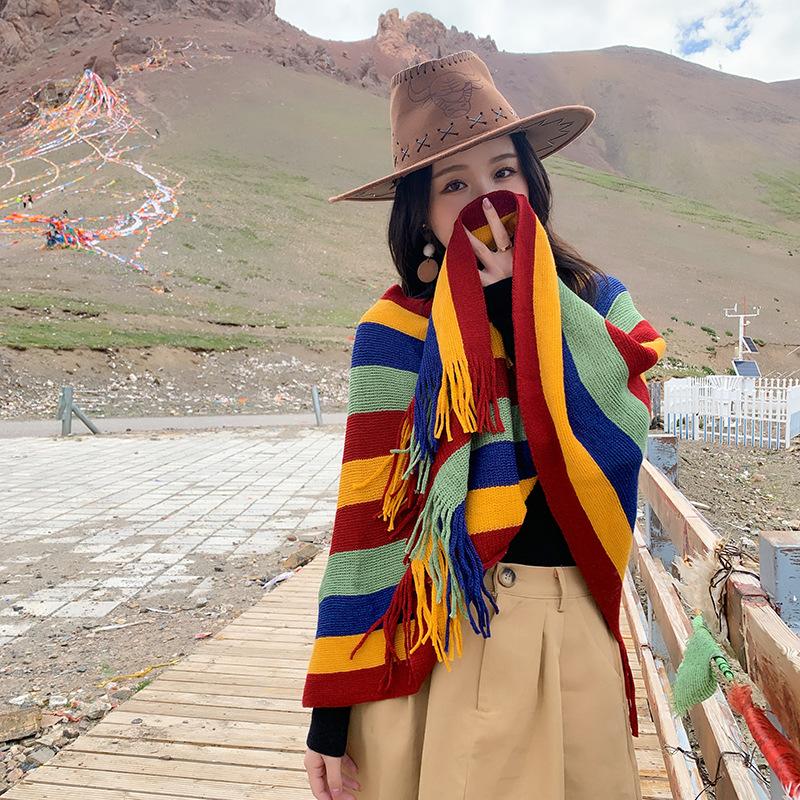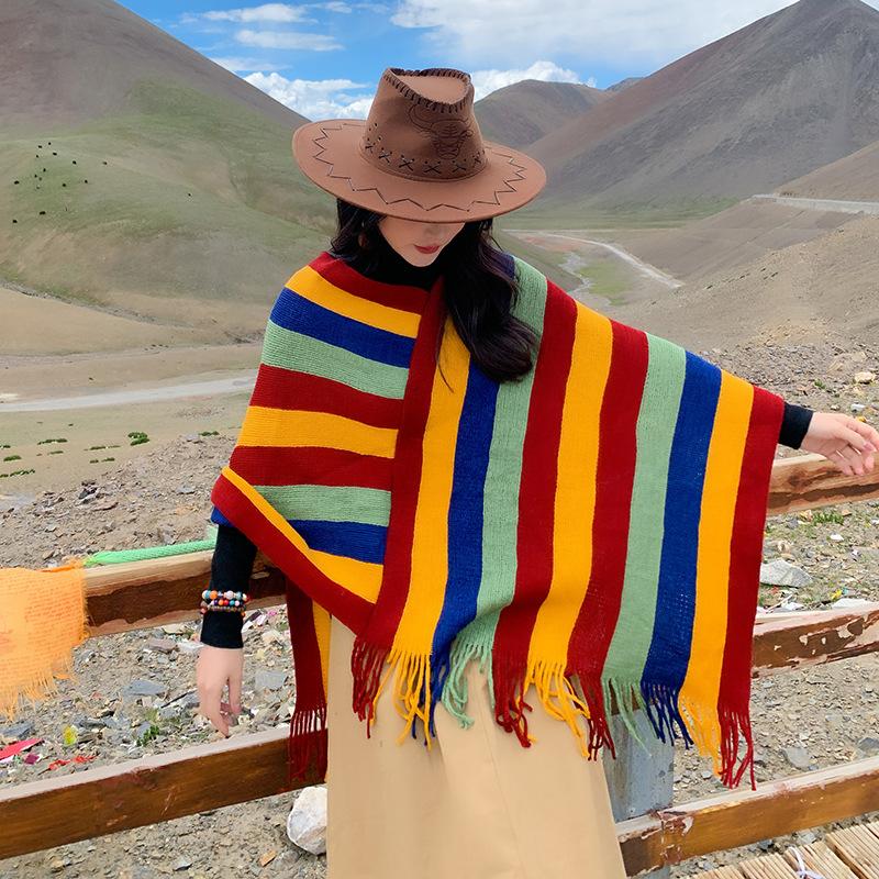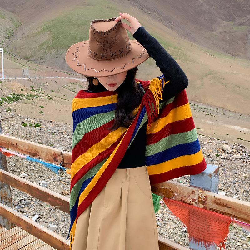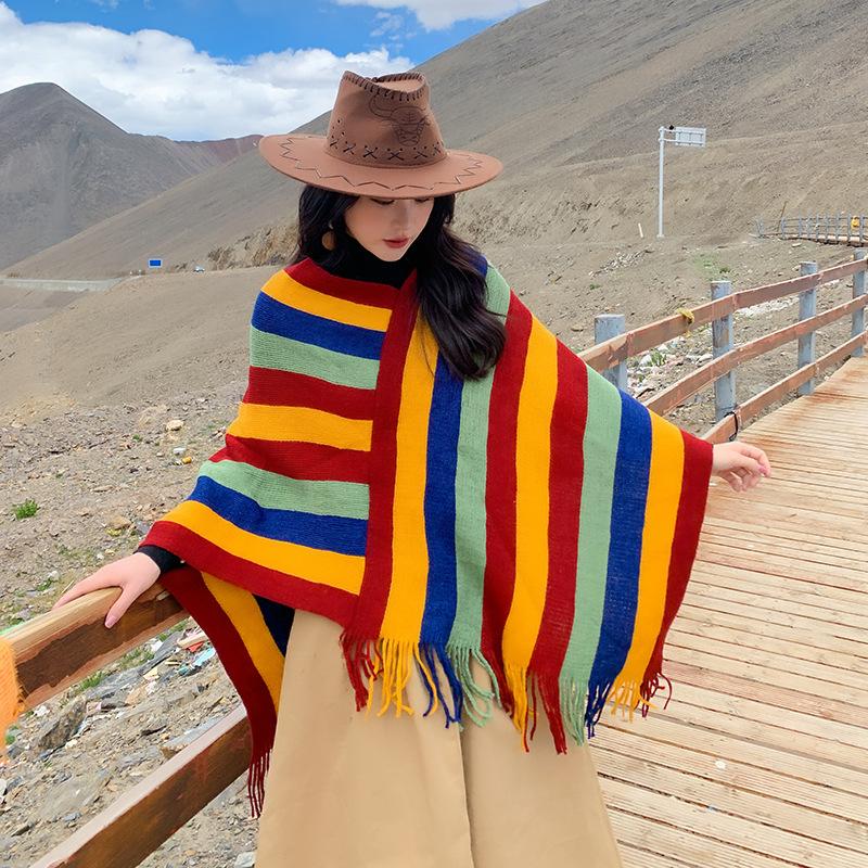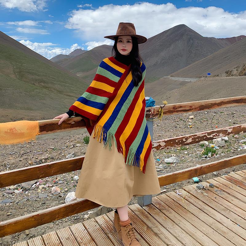 Circunferencia de hombro: 88cm, largo medio 53cm, largo en ambos lados incluyendo borlas aproximadamente 90cm