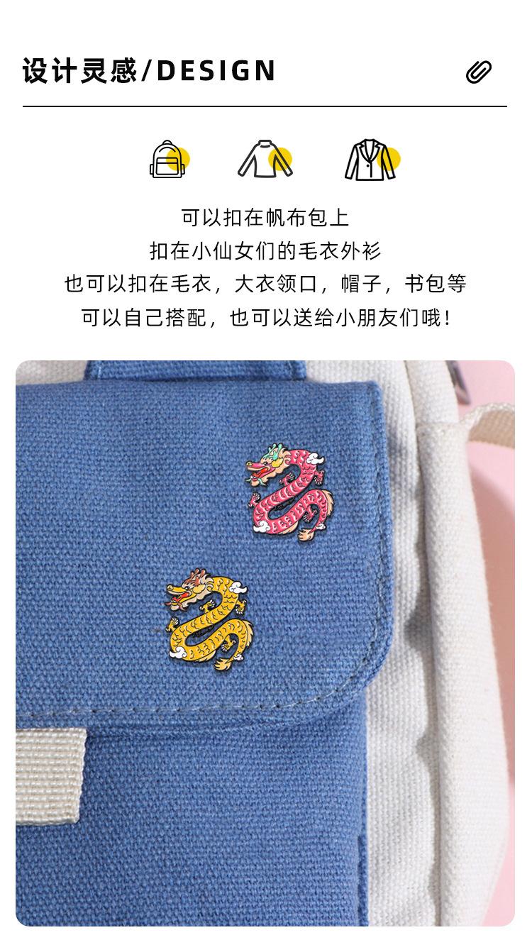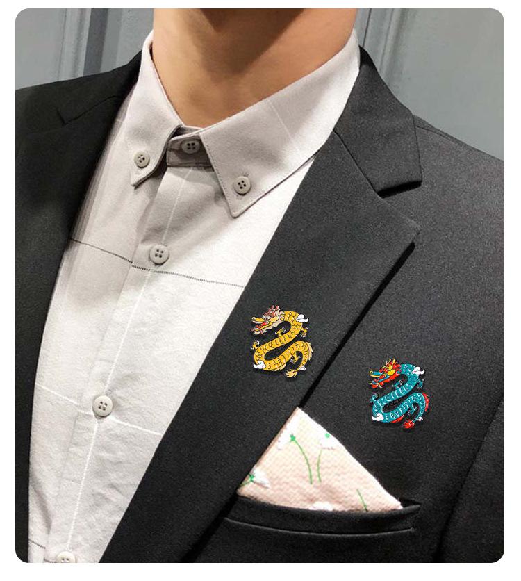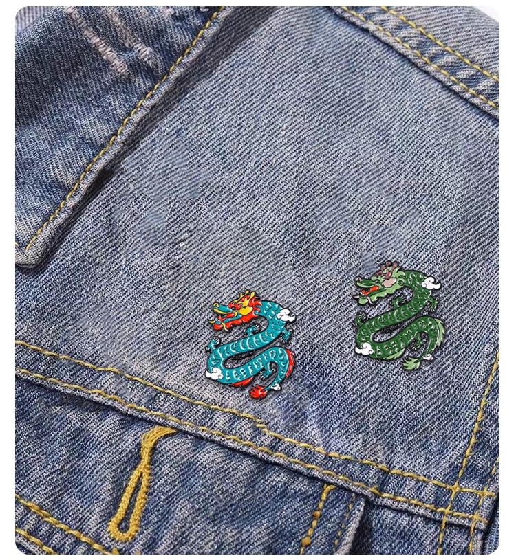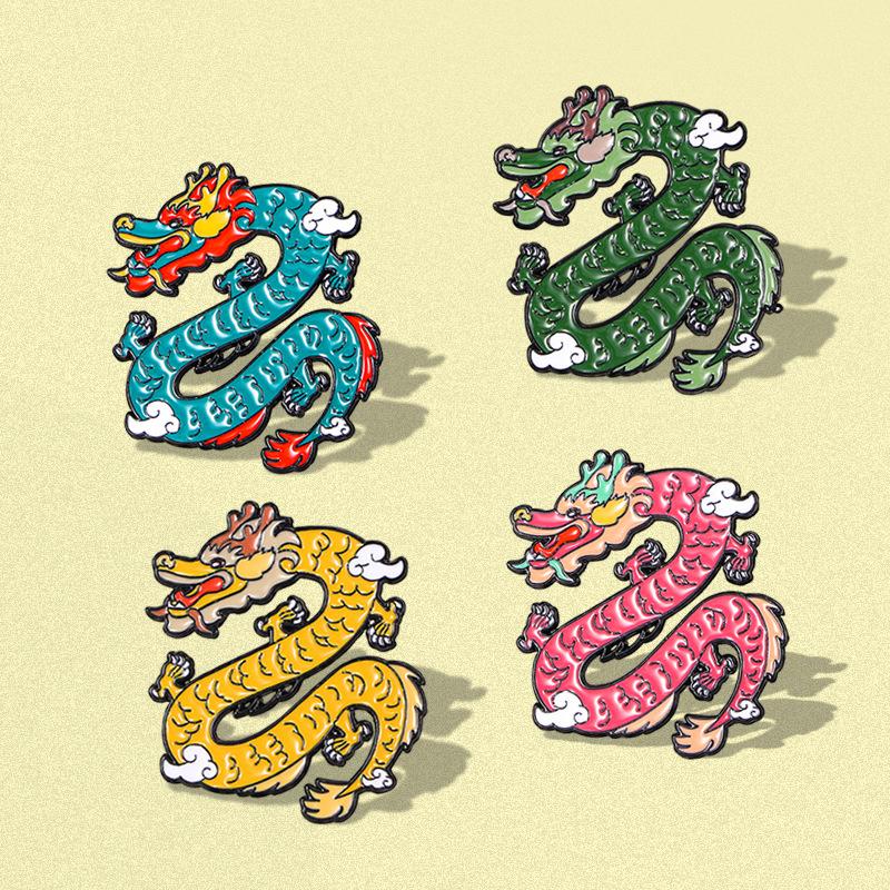Broche original de dragón chino de dibujos animados, año del dragón, moda nacional, lindo, lindo, atmósfera festiva de Año Nuevo, pin bordado para ropa