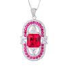 Collar con colgante cuadrado de 12 x 12 cm de corindón rojo púrpura esmeralda artificial chapado en oro y base de cobre de joyería Zhuang Sheng