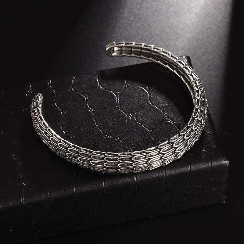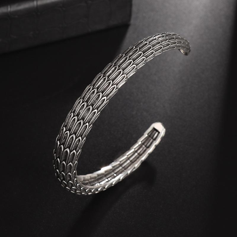 Pulsera de escamas de dragón personalizada plateada para hombre, estilo chino retro, pulsera de escamas inversas de plata tailandesa, venta al por mayor de fábrica