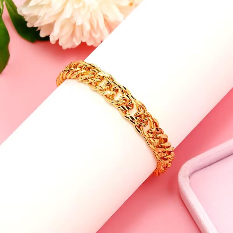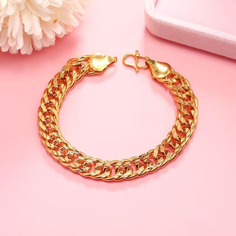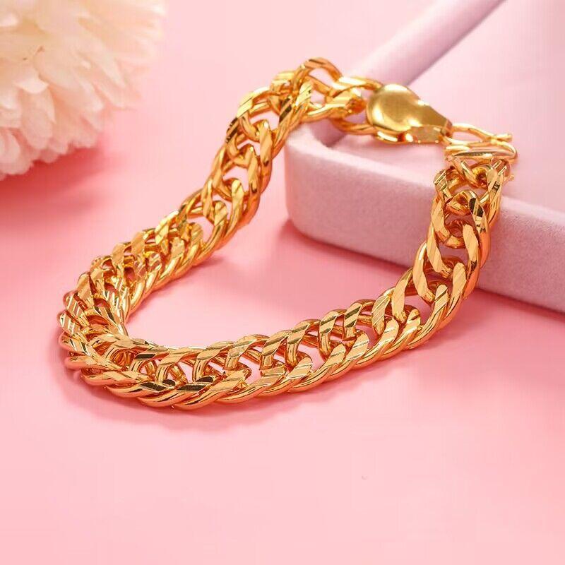 Pulsera amarilla chapada en oro de 24k de Vietnam, pulsera plana de 10 mm, pulsera de cobre chapada en oro, joyería que no se desvanece, regalo de joyería para hombres