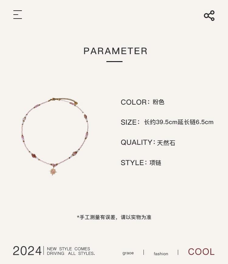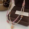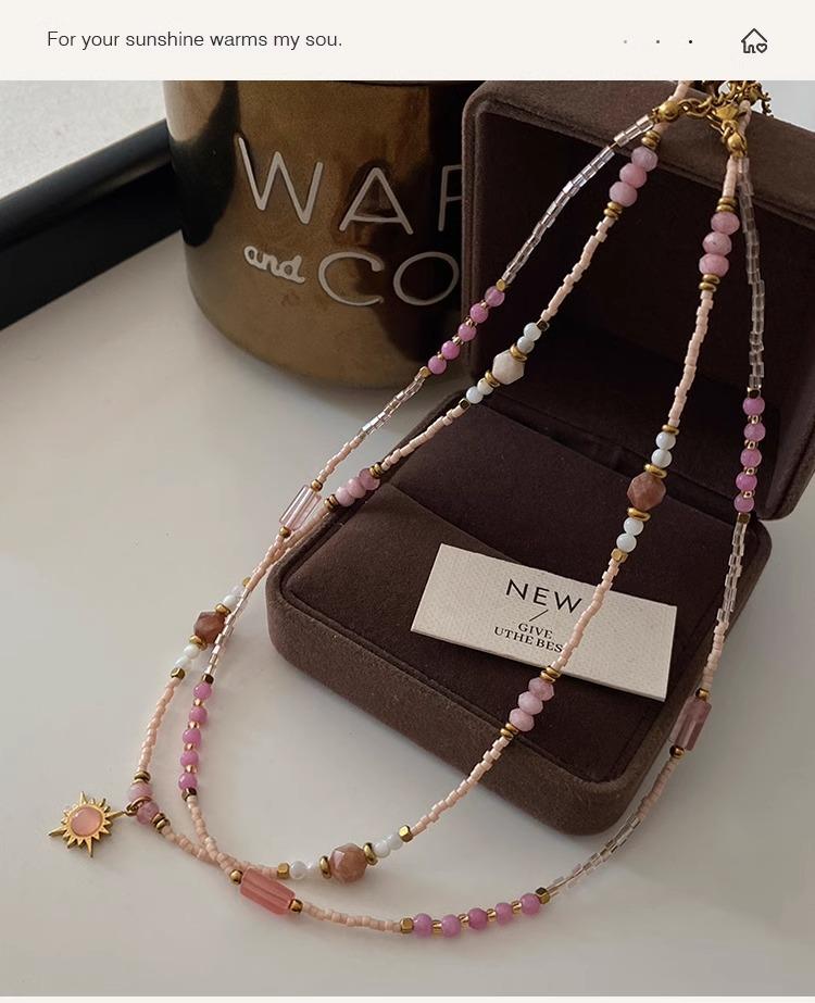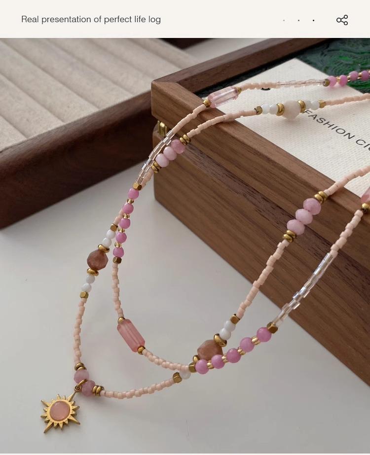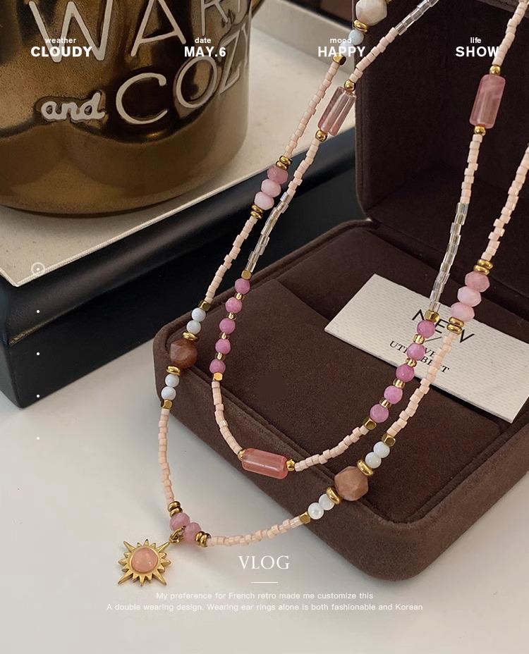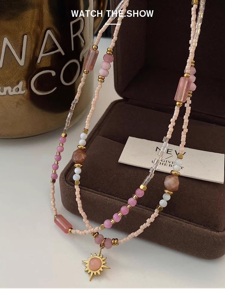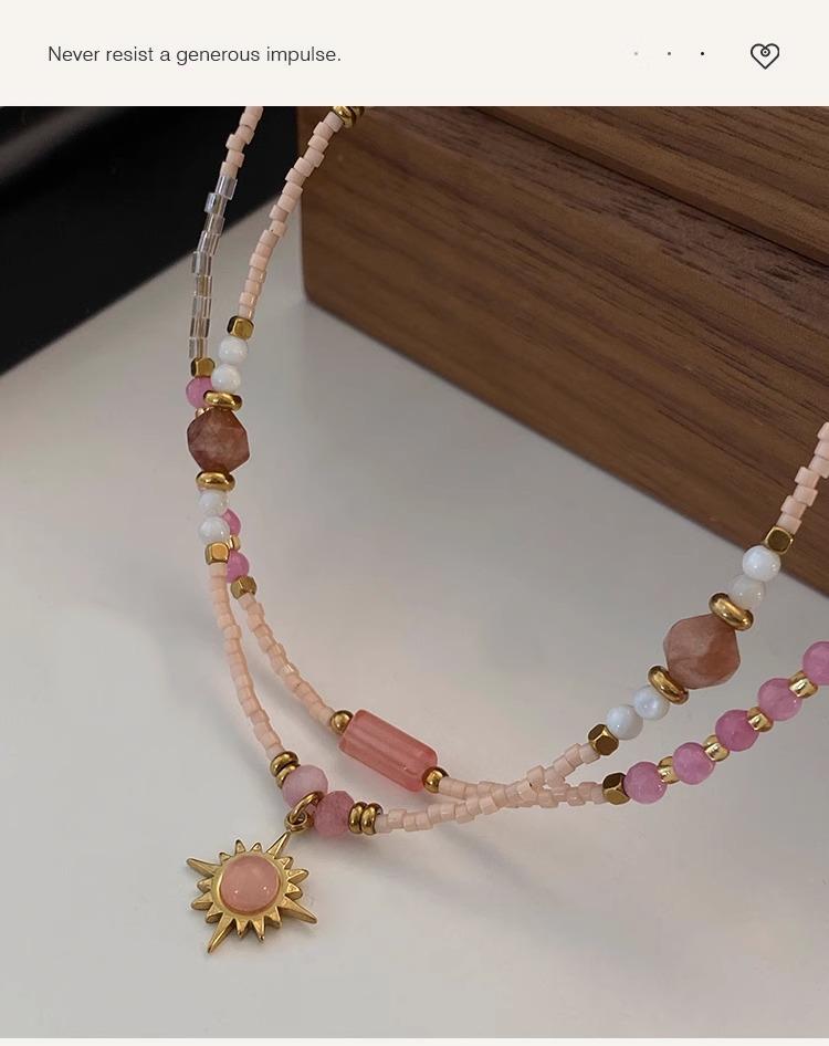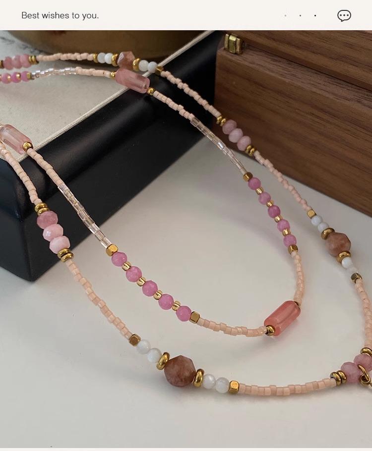 Collar de piedra rosa para mujer, novedad de primavera 2024, cadena de clavícula de piedra natural con nicho, collar de cuentas de alta calidad.
