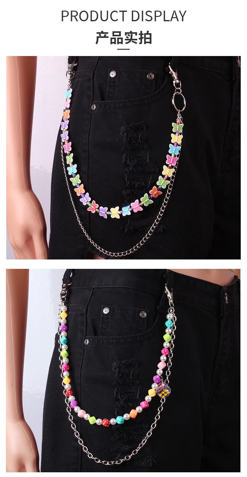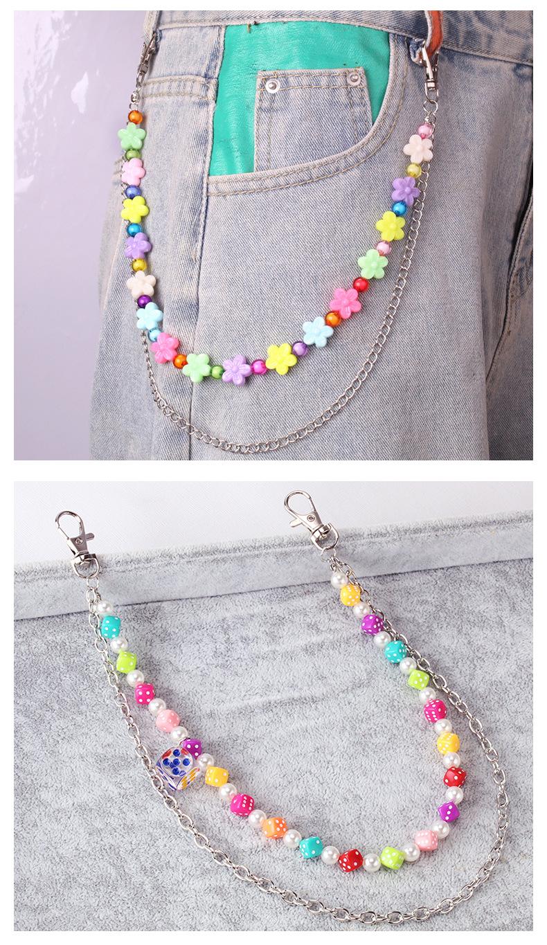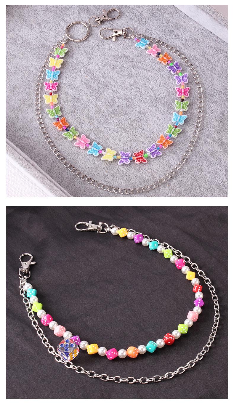 Acrylic flower double layer trouser chain, Acrylic dice double layer trouser chain, Acrylic butterfly double layer trouser chain