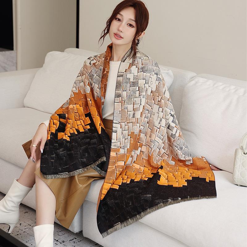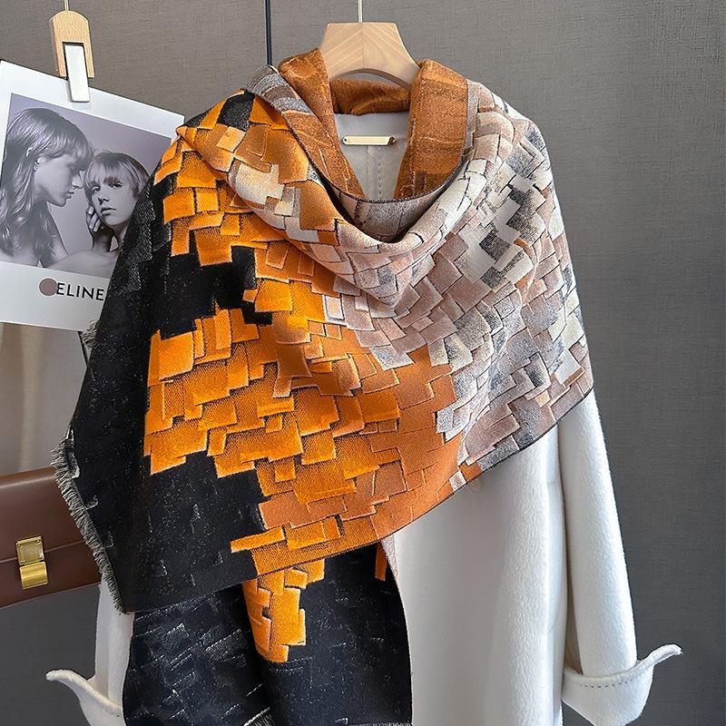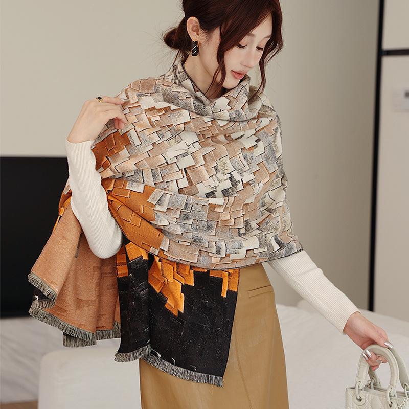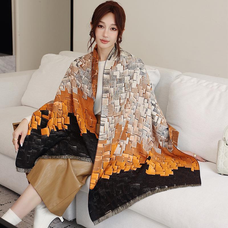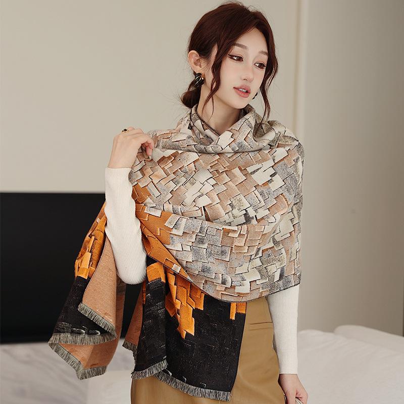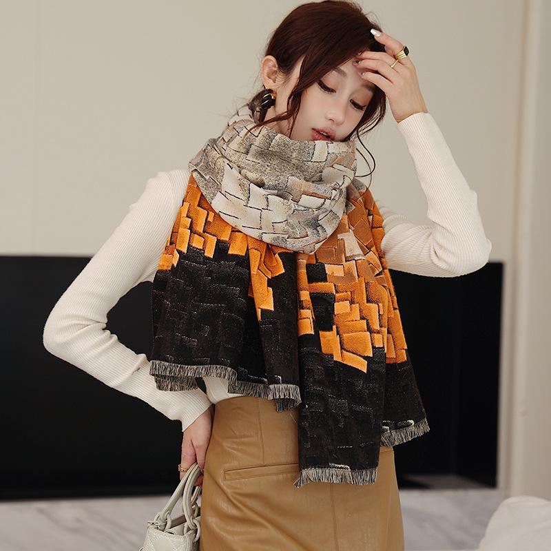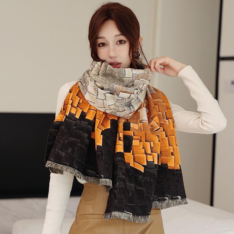 Bufanda de invierno para mujer, estilo coreano, combinable con todo, de cachemira, gruesa, cálida, de doble cara, a cuadros, color a juego, para aire acondicionado.