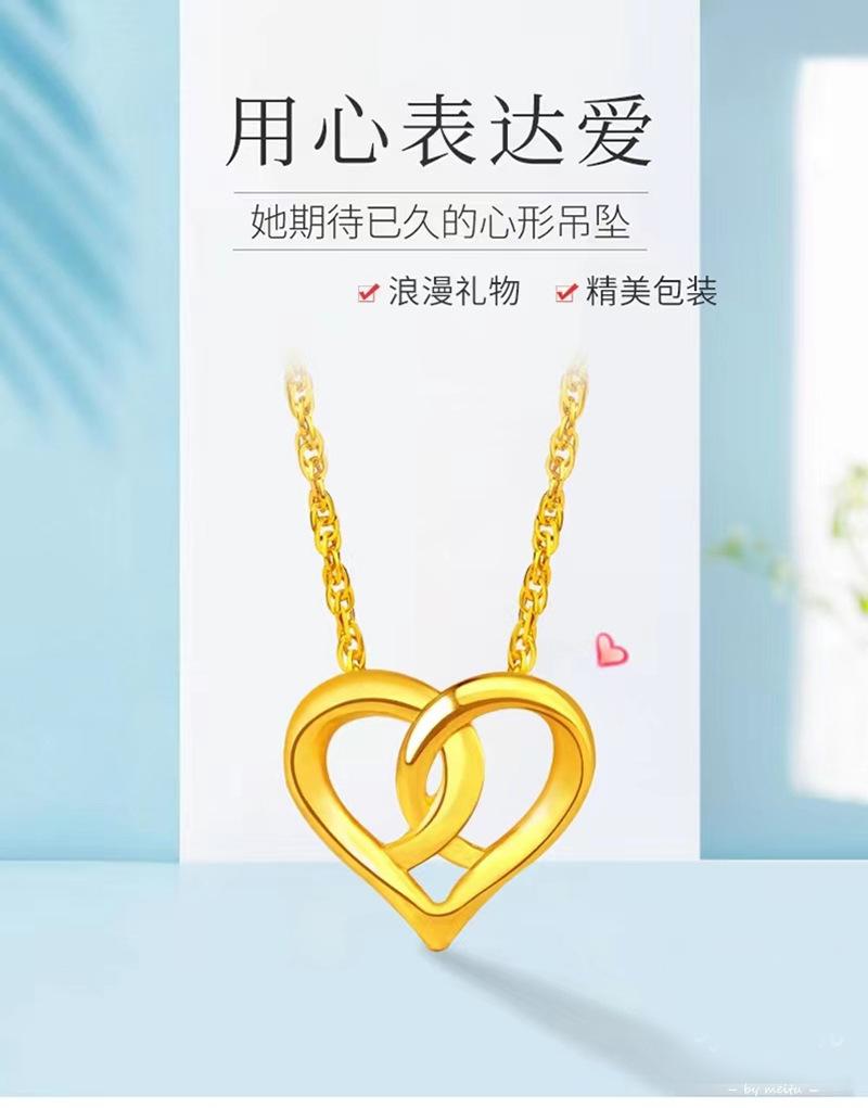 Heart-falling pendant + O-type necklace, Pendant + Water Ripple Necklace