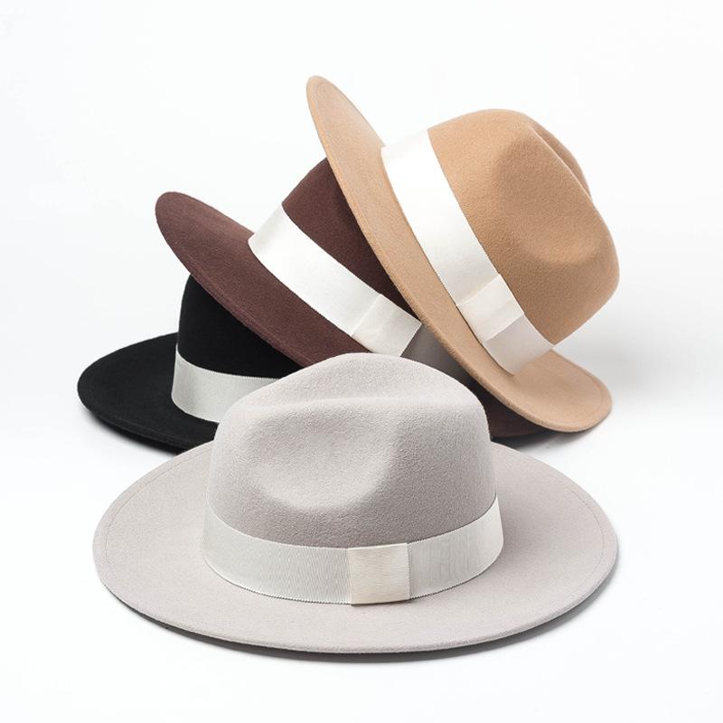 Sombrero de jazz de lana delicado, de ala ancha, de fieltro, para compras de viaje, estilo europeo y americano, para otoño e invierno, nuevo y sencillo