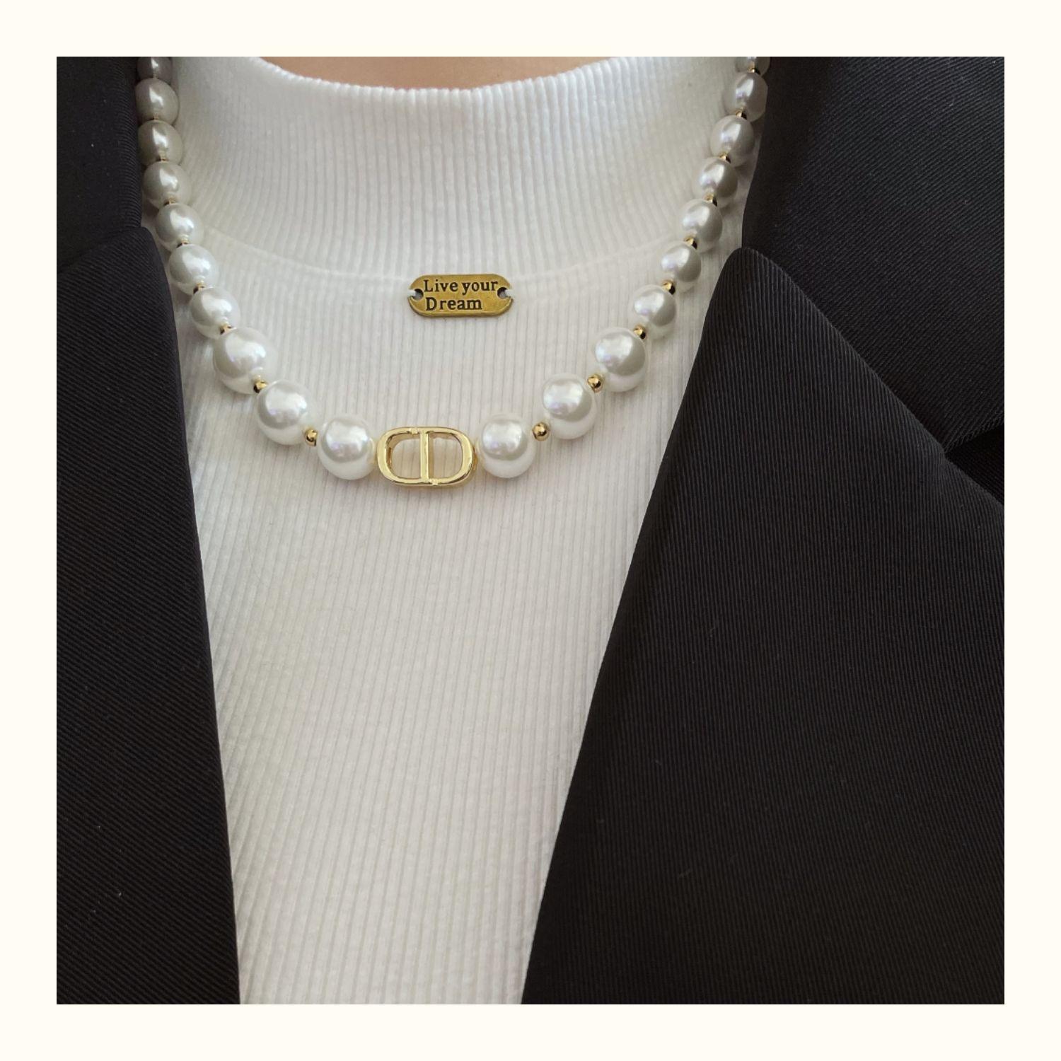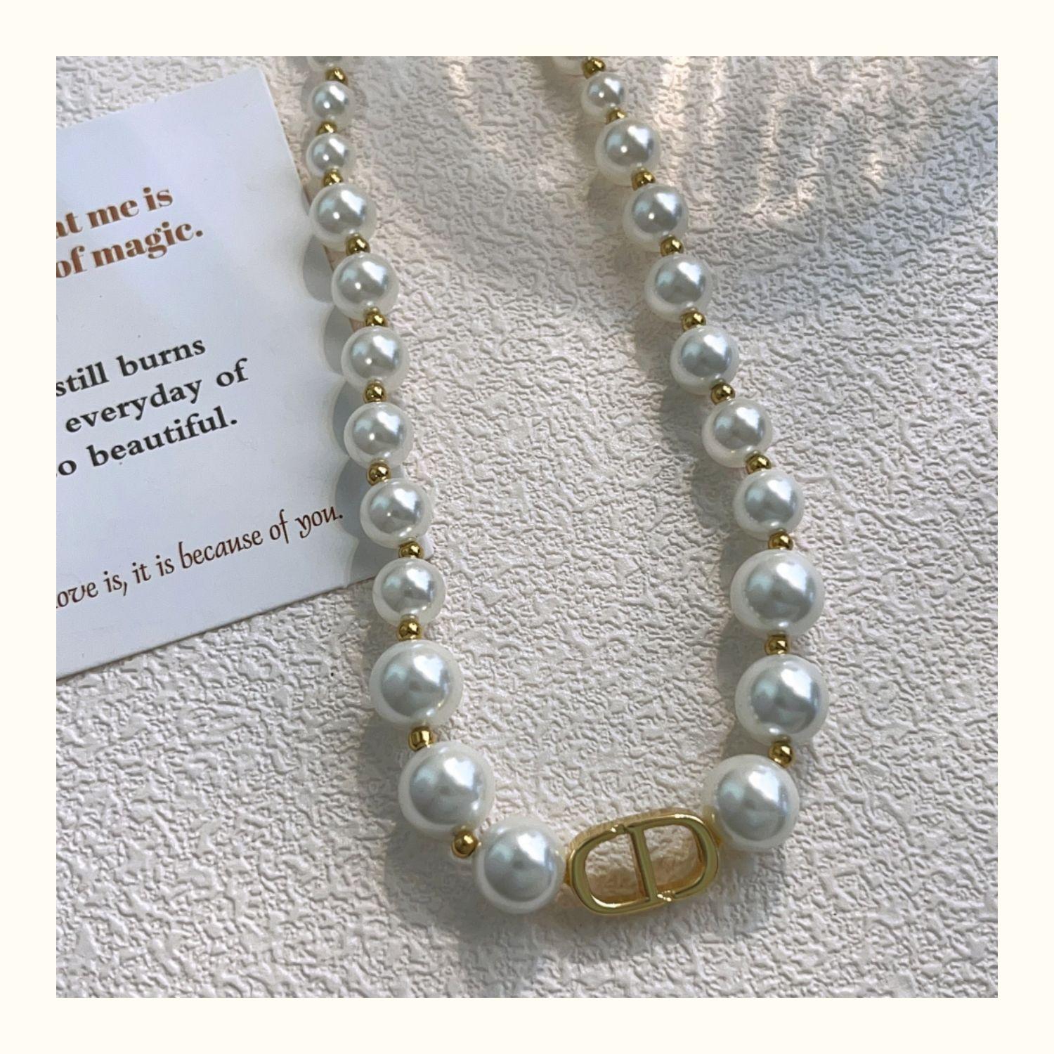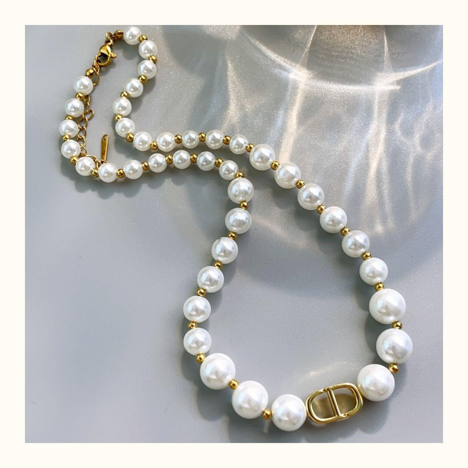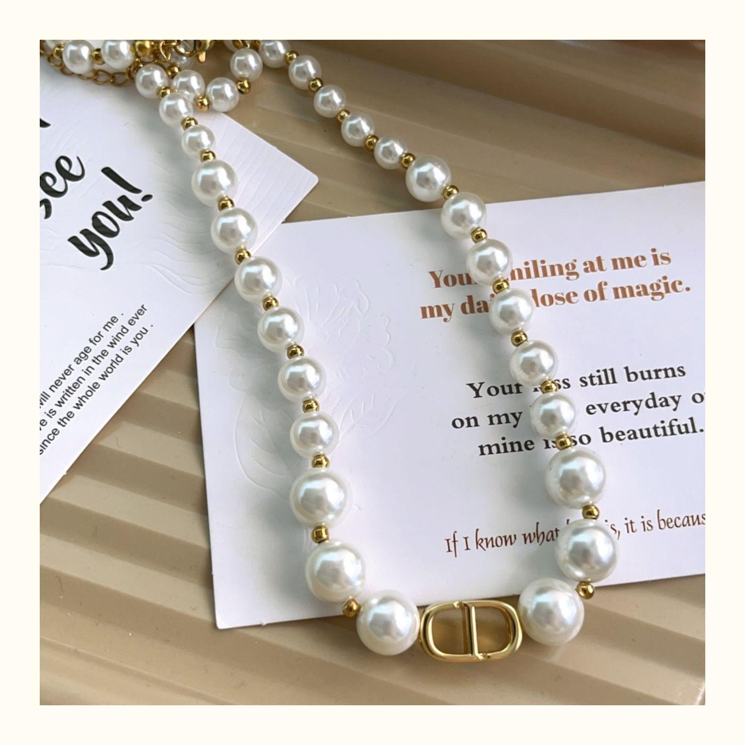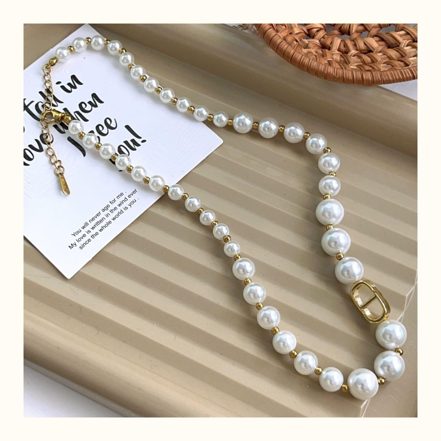 Collar de perlas con degradado para el hogar, gargantilla ligera de lujo con temperamento de nicho, cadena de clavícula de alto sentido, estilo pequeño, cadena de cuello retro