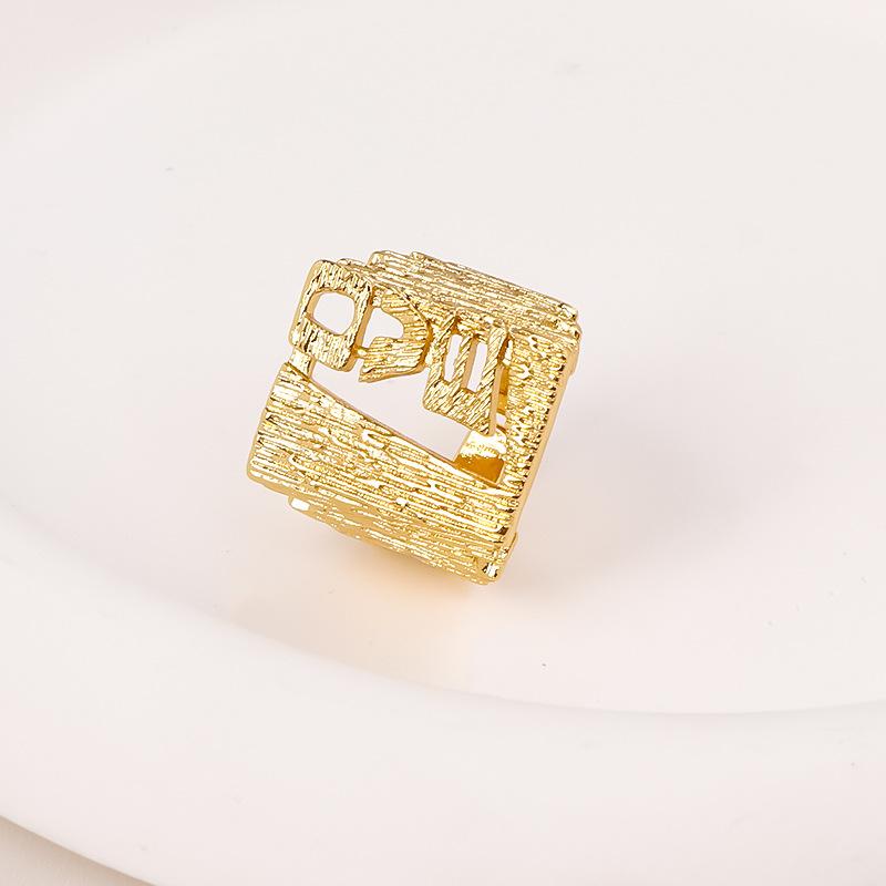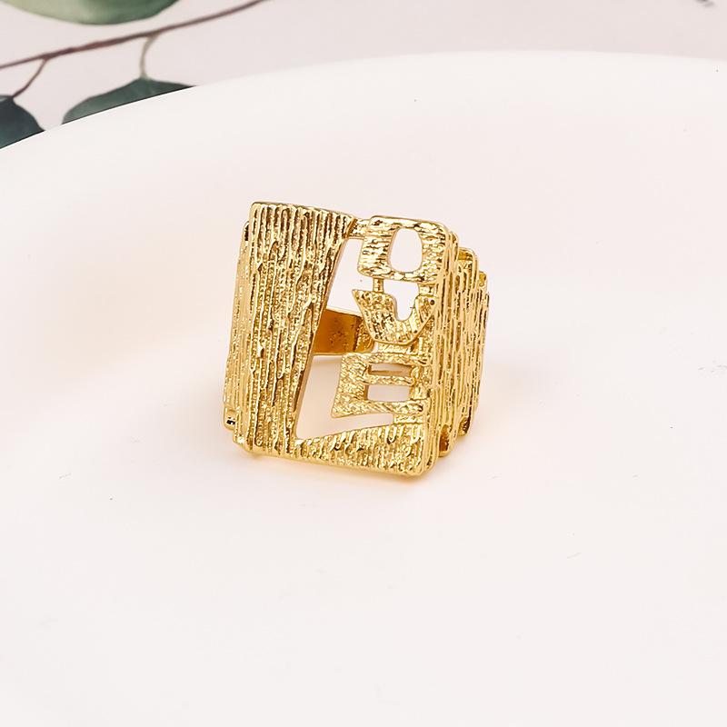 Nuevo Anillo de Dedo Creativo Transfronterizo de Versión Ancha con Patrón de Árbol Calado LOVE, Cobre con Baño de Oro que Conserva el Color, Anillo Simple Único para Mujeres