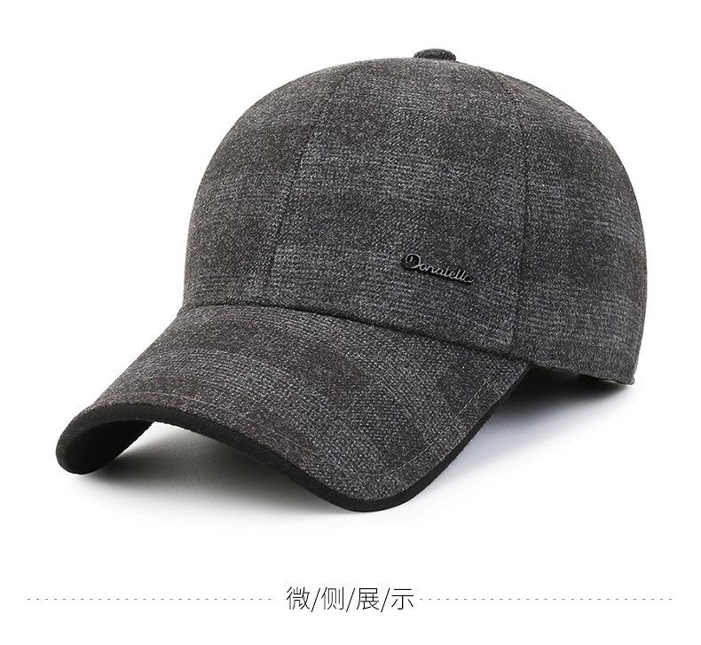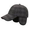 Sombrero de algodón para hombre otoño e invierno lana para exteriores forrado de vellón cálido gorra de béisbol casual con cuadros británicos protección para las orejas gorra con visera