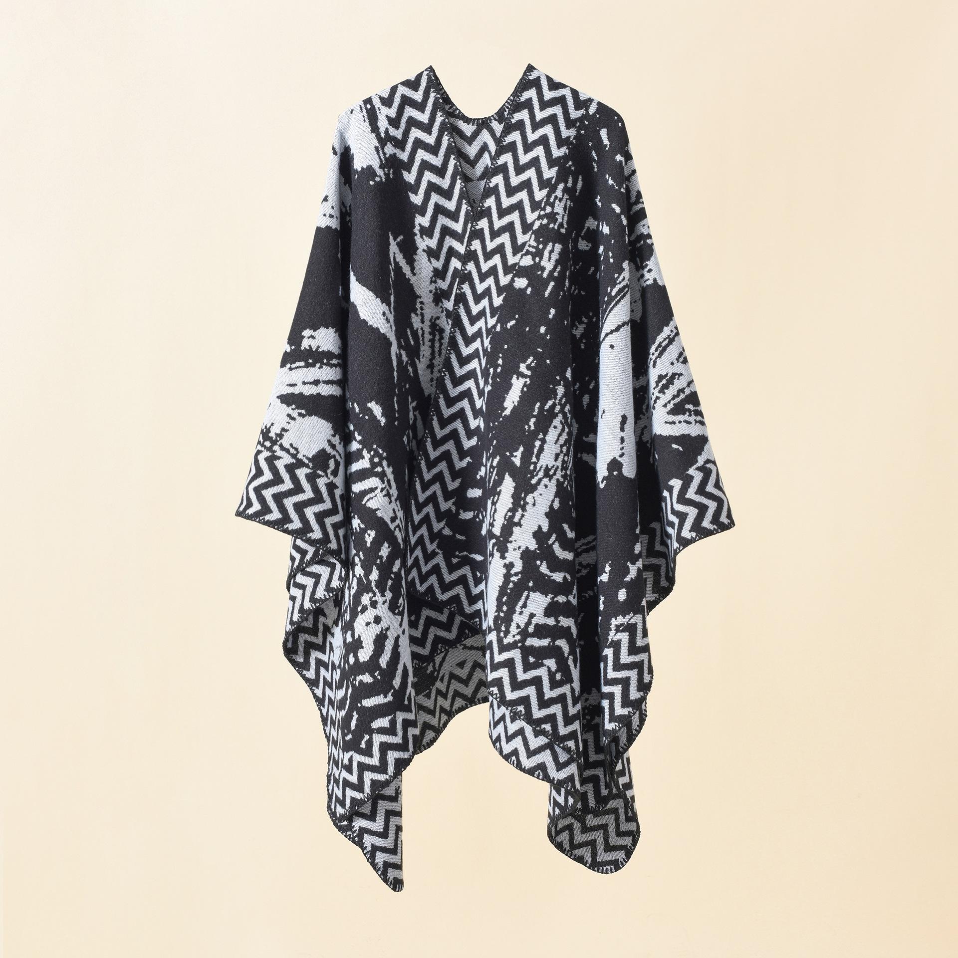 Capa de flecos a cuadros en blanco y negro con chal sencillo de comercio exterior transfronterizo, capa cálida de otoño e invierno, capa de calle europea y americana