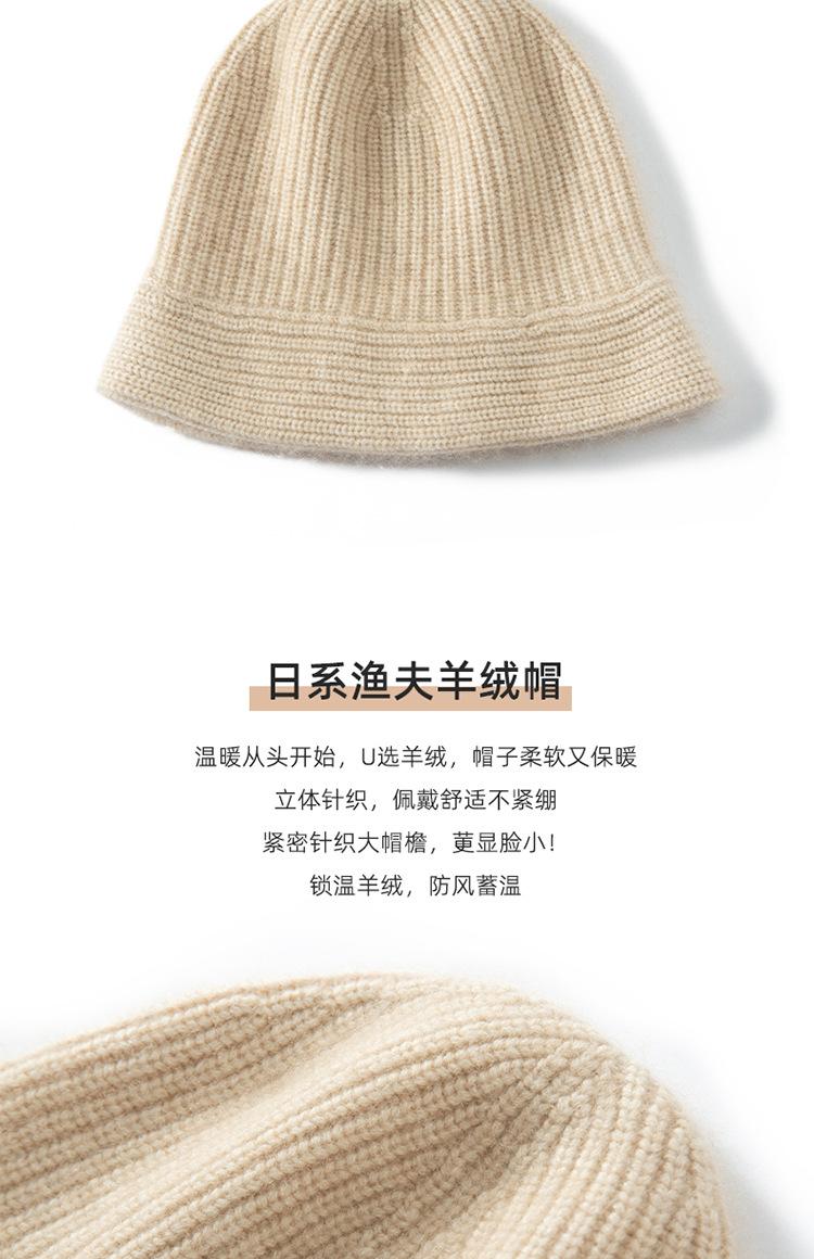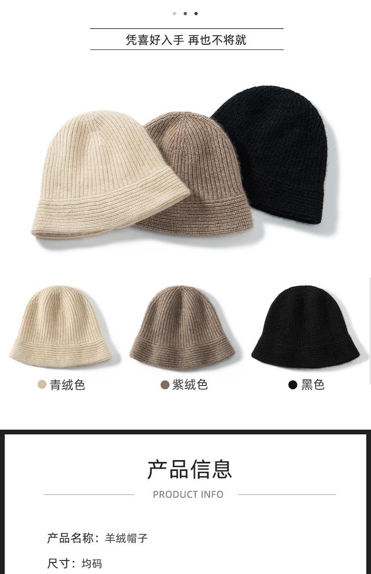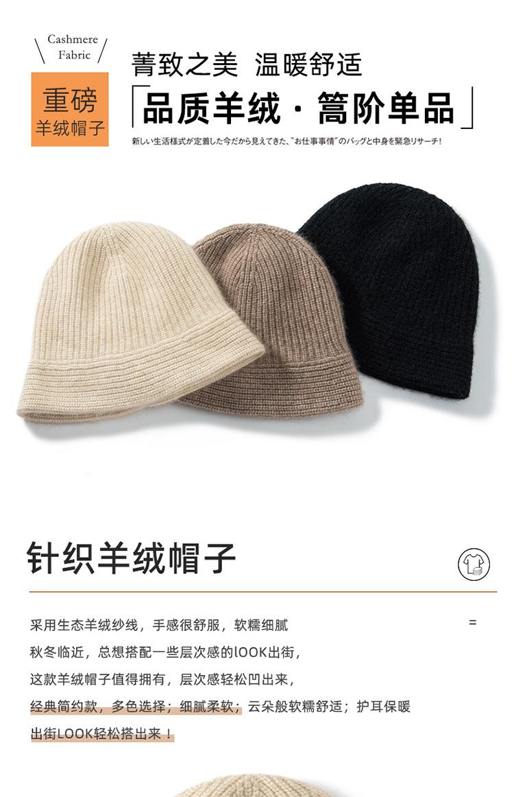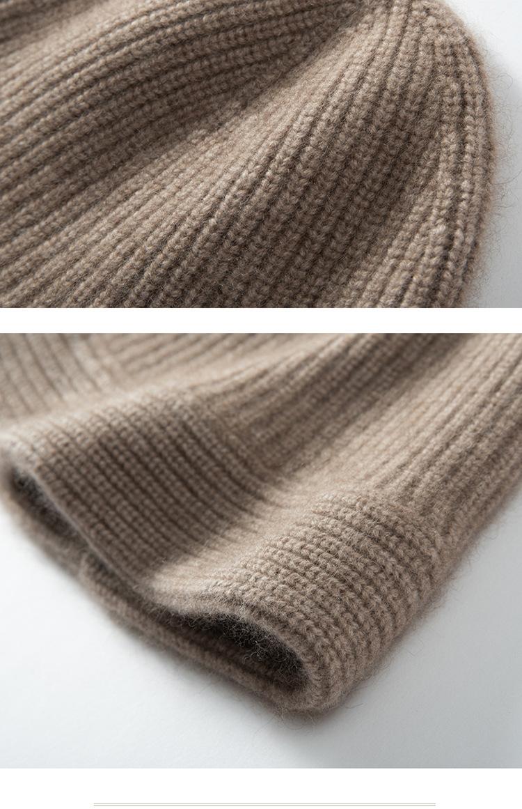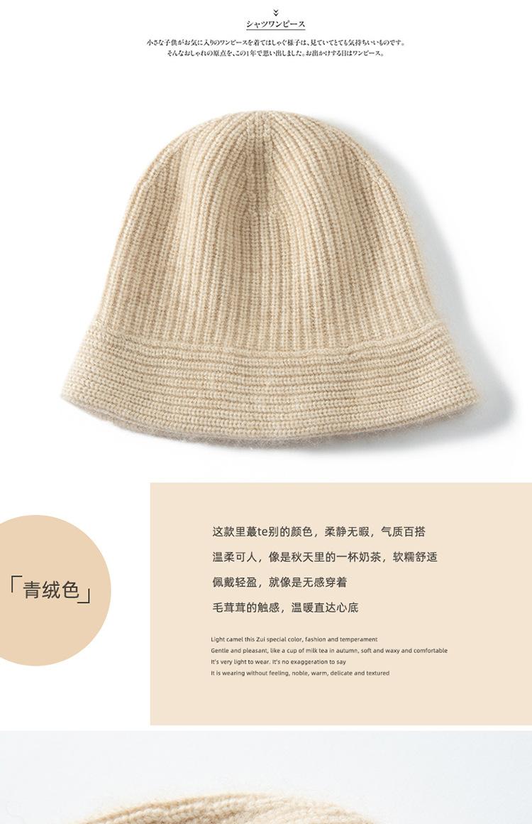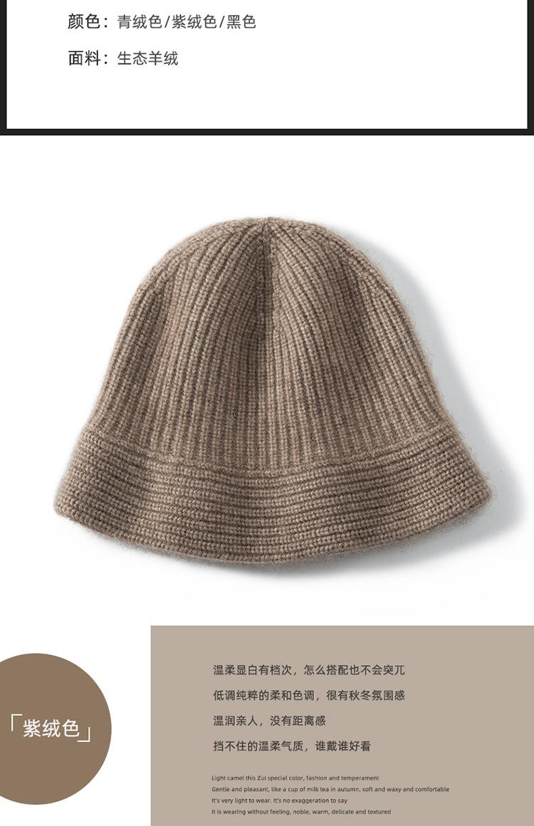 Gorro de cachemira grueso para otoño e invierno, para mujer, resistente al frío, cálido, de color sólido, combinable con todo, gorro de pescador de punto de cachemira, gorro de lana