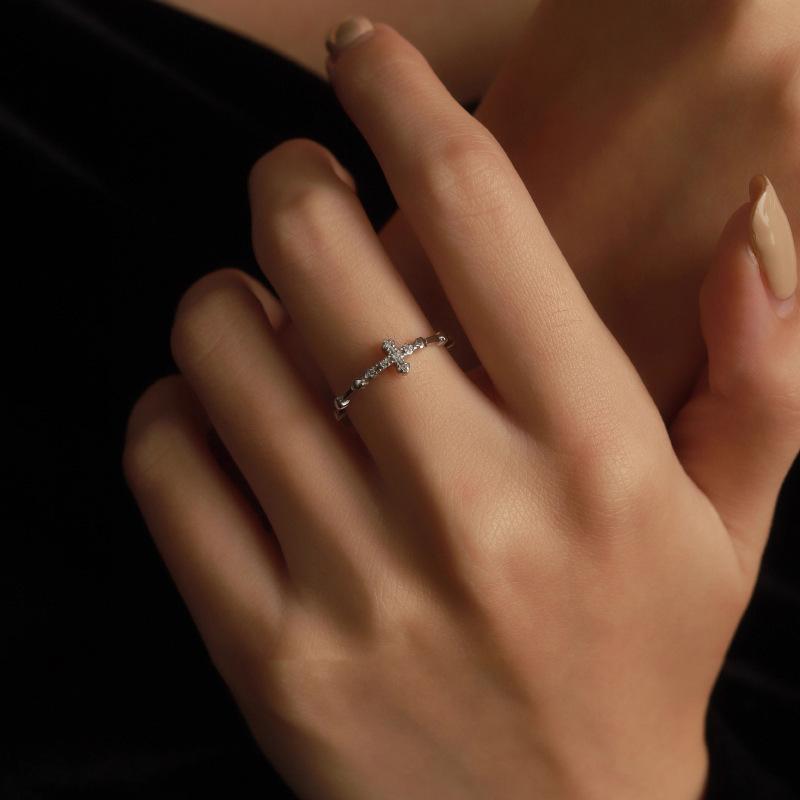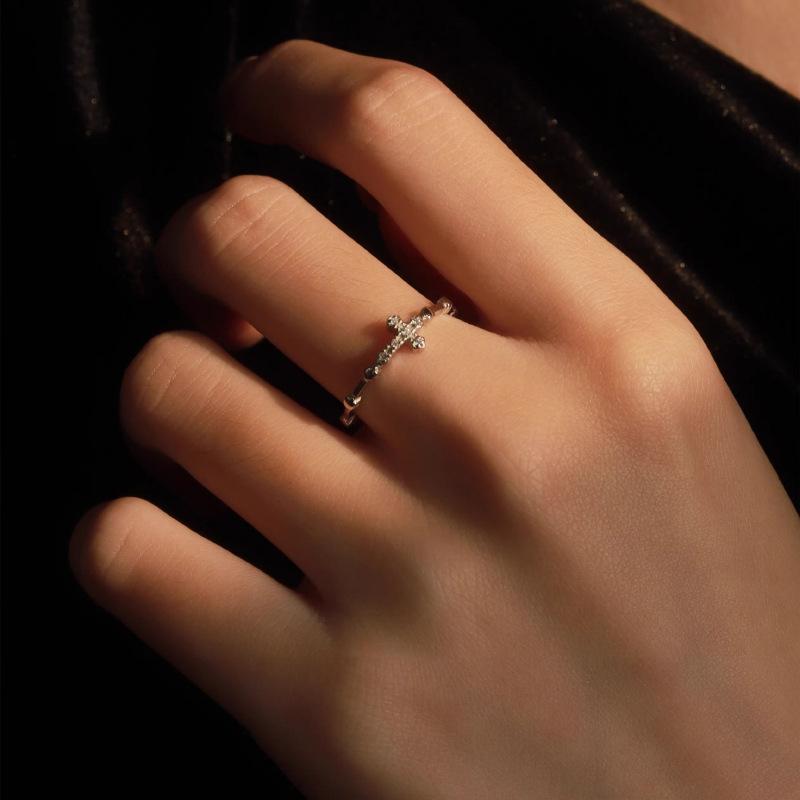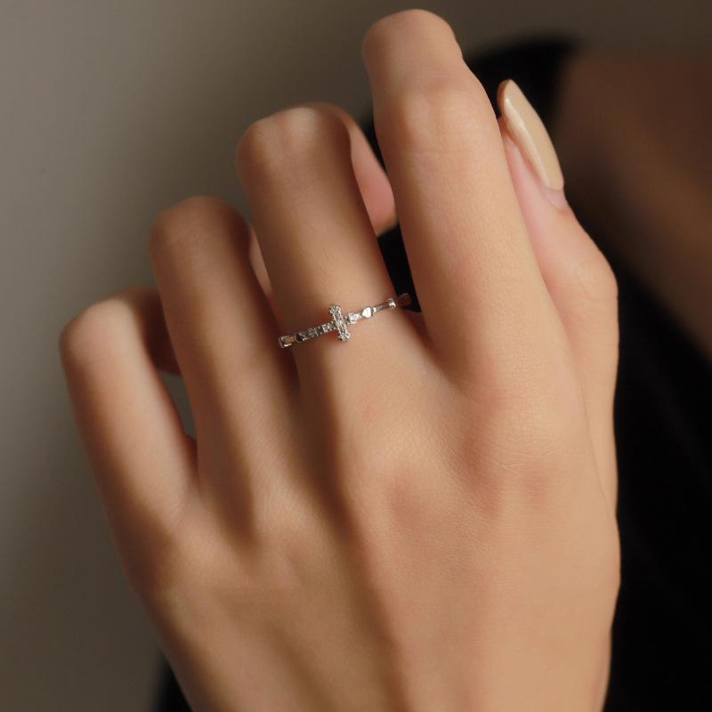 Anillo de diseño de nicho con forma de cruz, estilo frío femenino, moda que combina con todo, personalidad minimalista, fino, anillo de dedo índice abierto, moda.