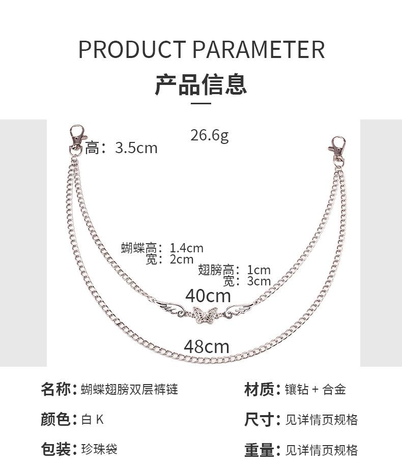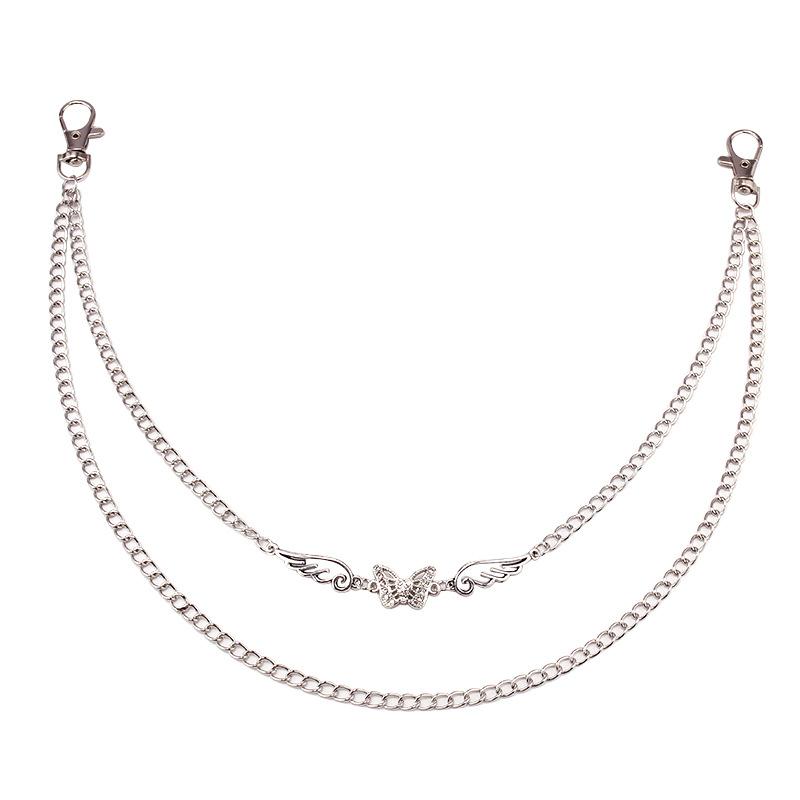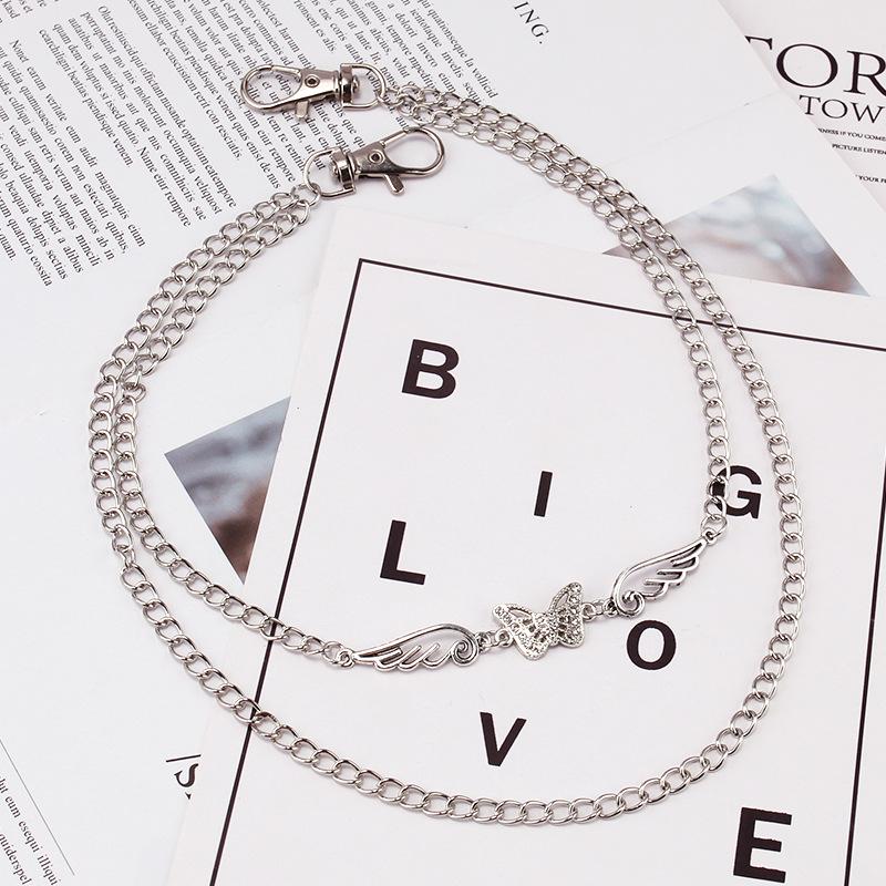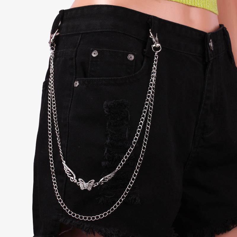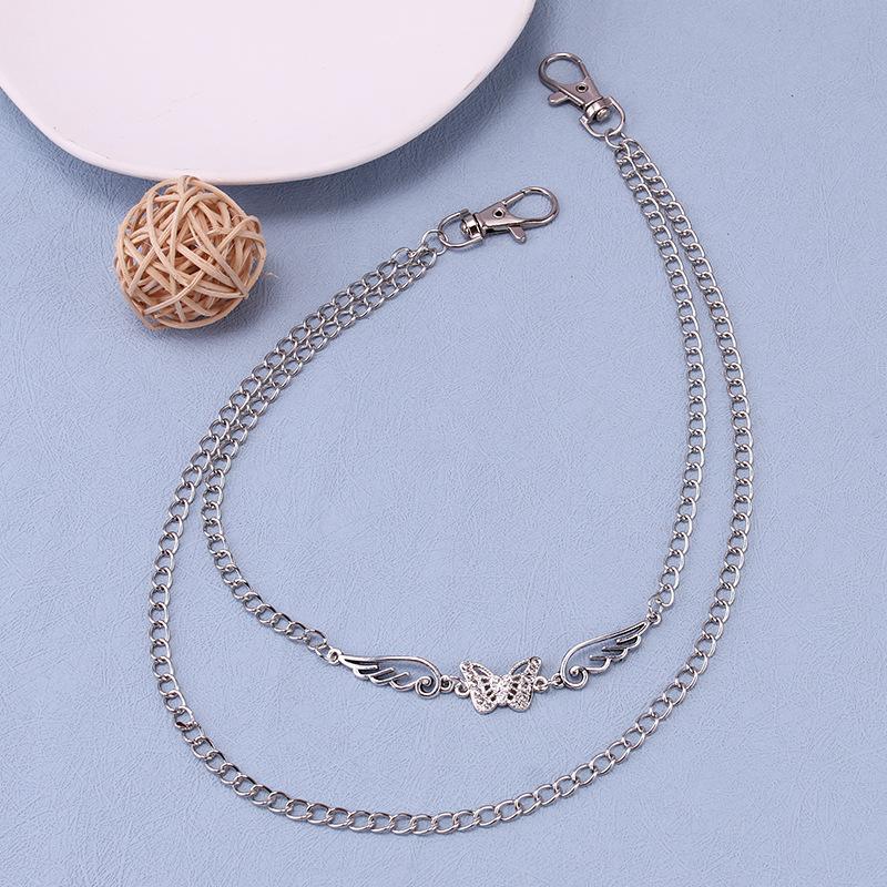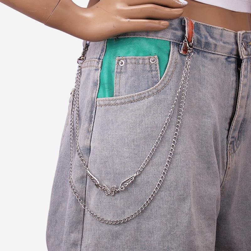 Cadena para pantalón cool para mujer, accesorios punk para jeans decorativos, falda a cuadros de uniforme jk de moda, cadena para pantalón de mariposa de diamantes