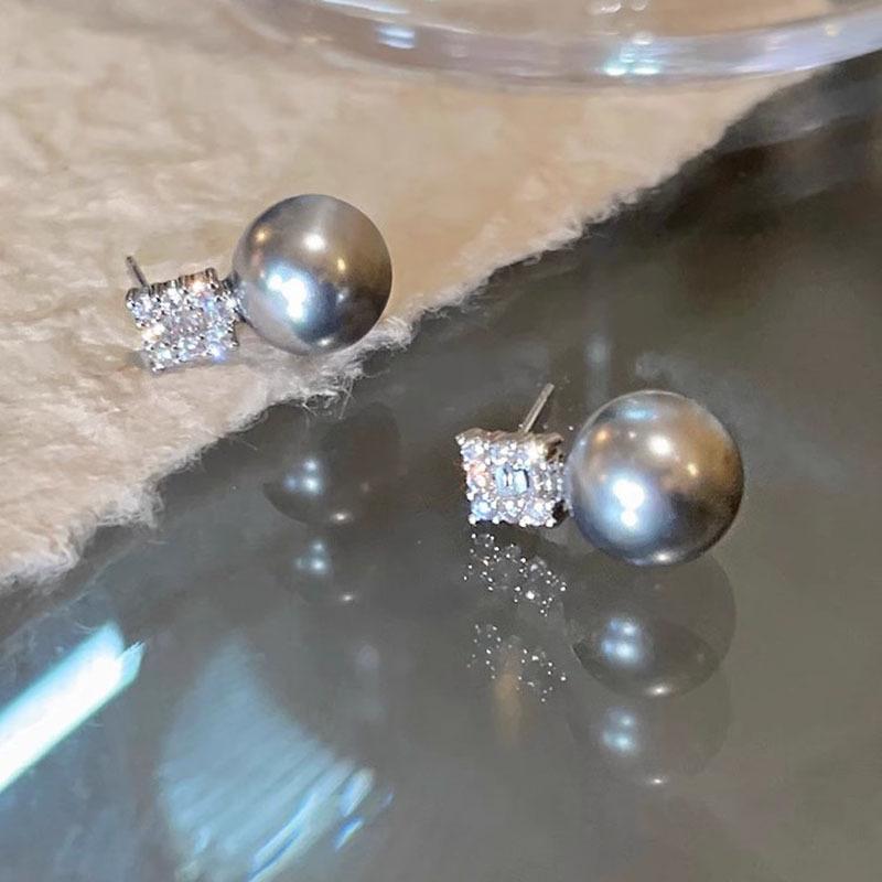 Pendientes elegantes de perlas francesas Dongdaemun de Corea del Sur, pendientes rojos de red de moda con incrustaciones de diamantes para mujer, pendientes dulces femeninos de alta calidad