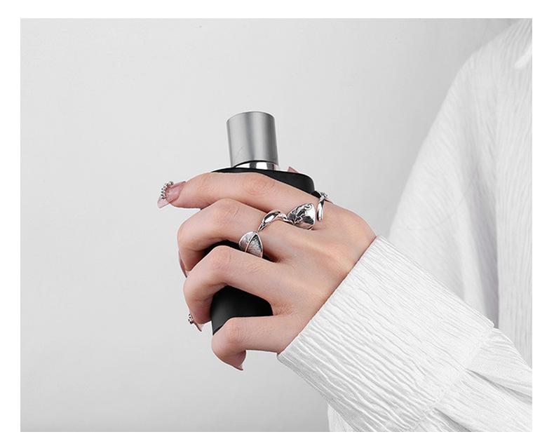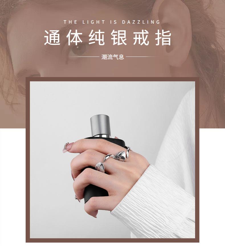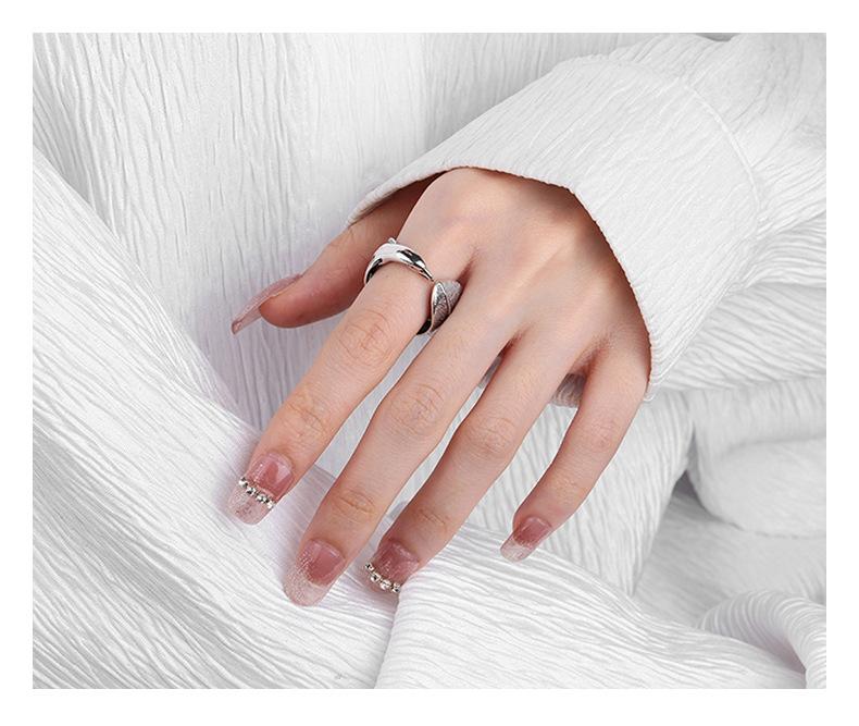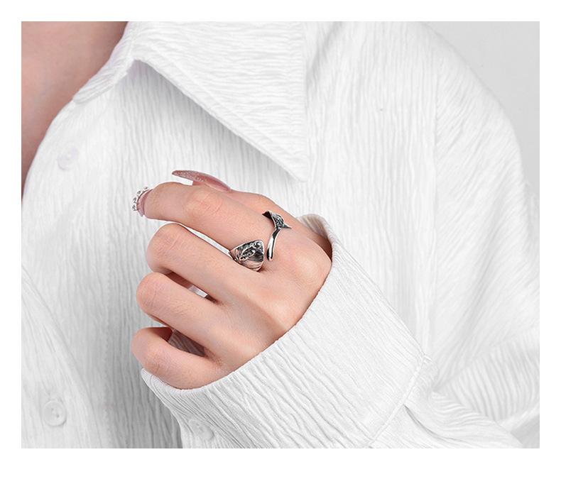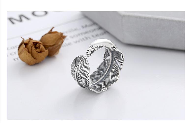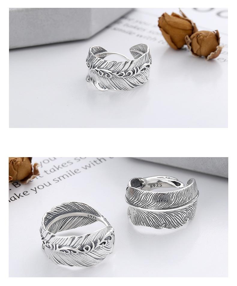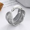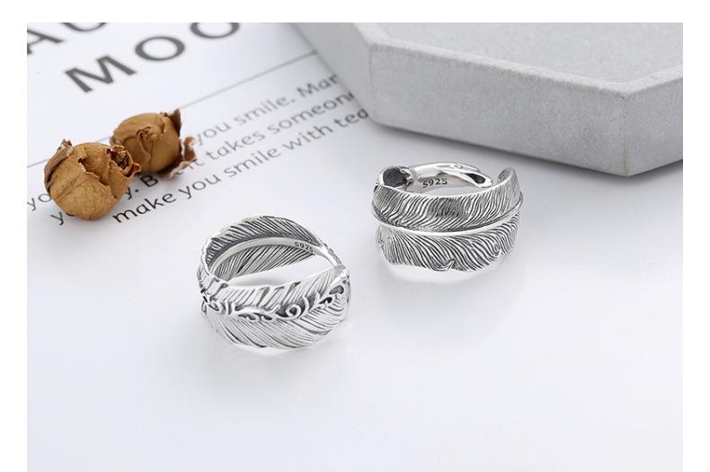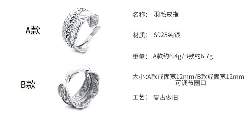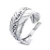 Chao Sheng Plata esterlina S925 retro envejecido clásico versión ancha textura forma de pluma anillo abierto tendencia anillo para hombre y mujer
