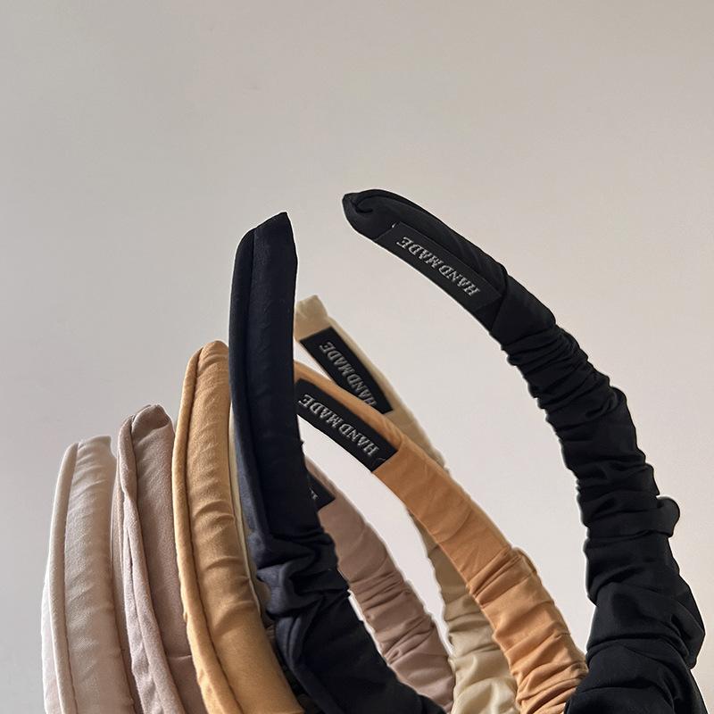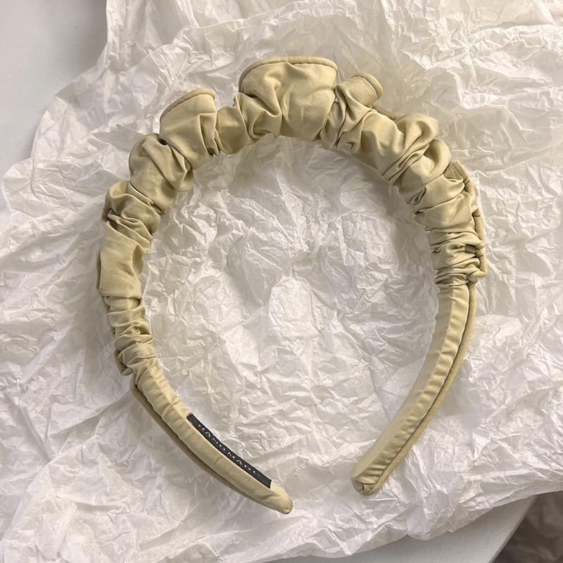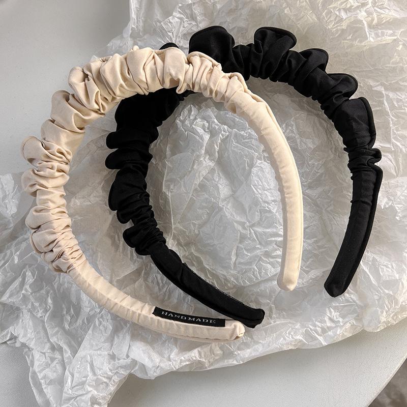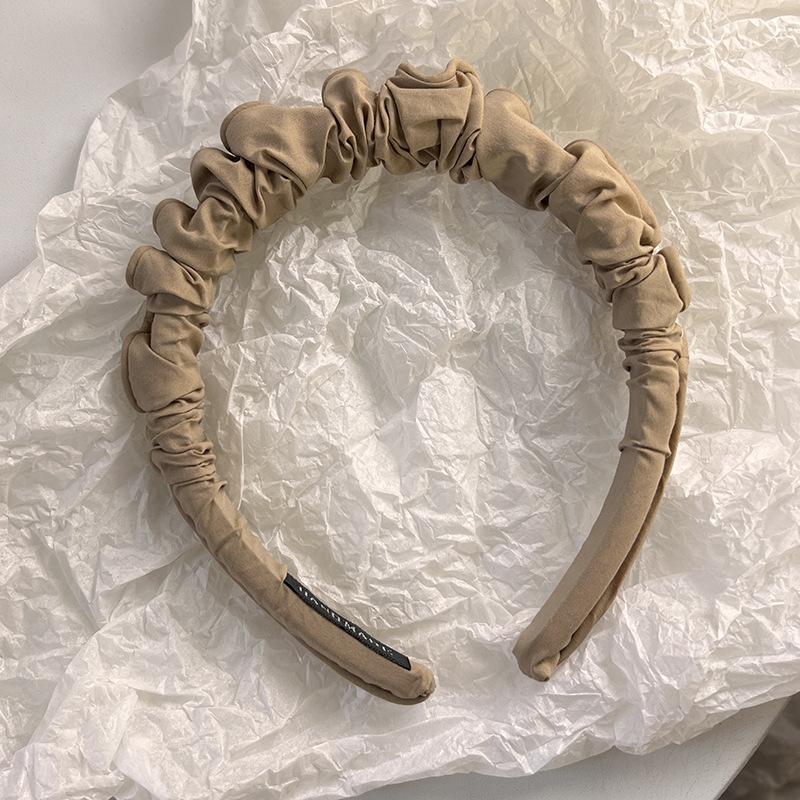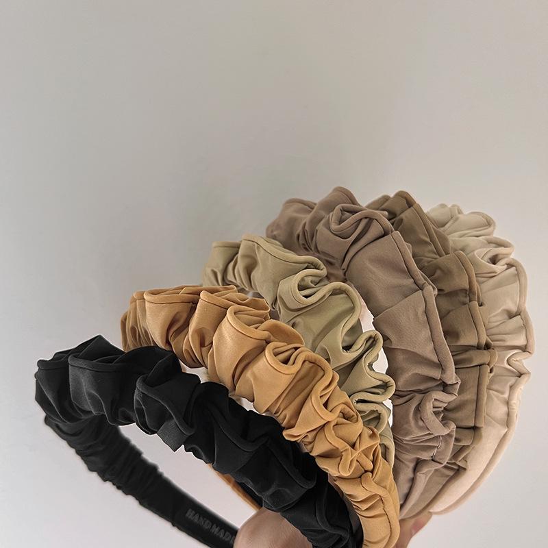 Diadema plisada, tocado coreano, tela de color sólido de alta calidad, clip para el cabello en la parte superior craneal alta, diadema francesa elegante y suave para mujer