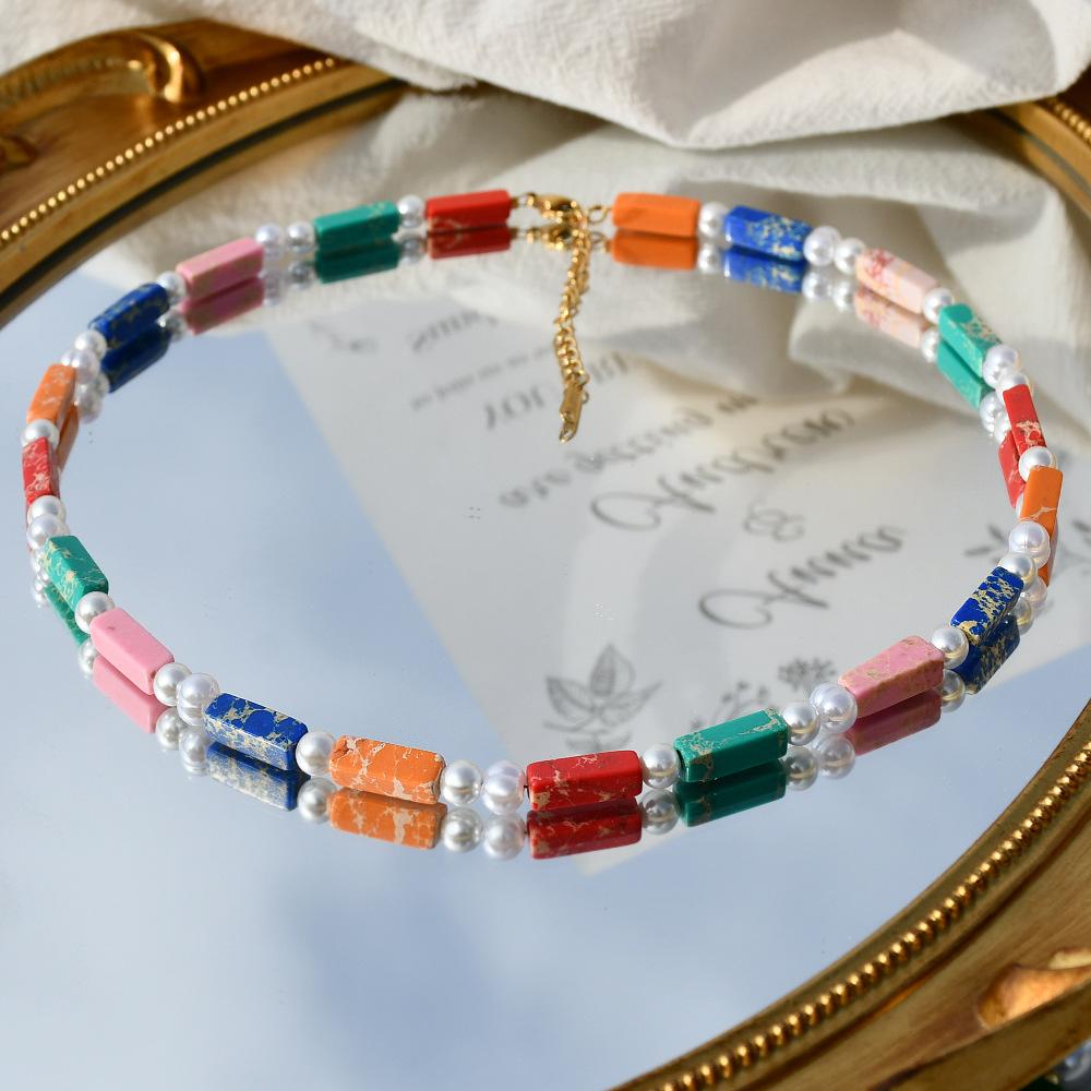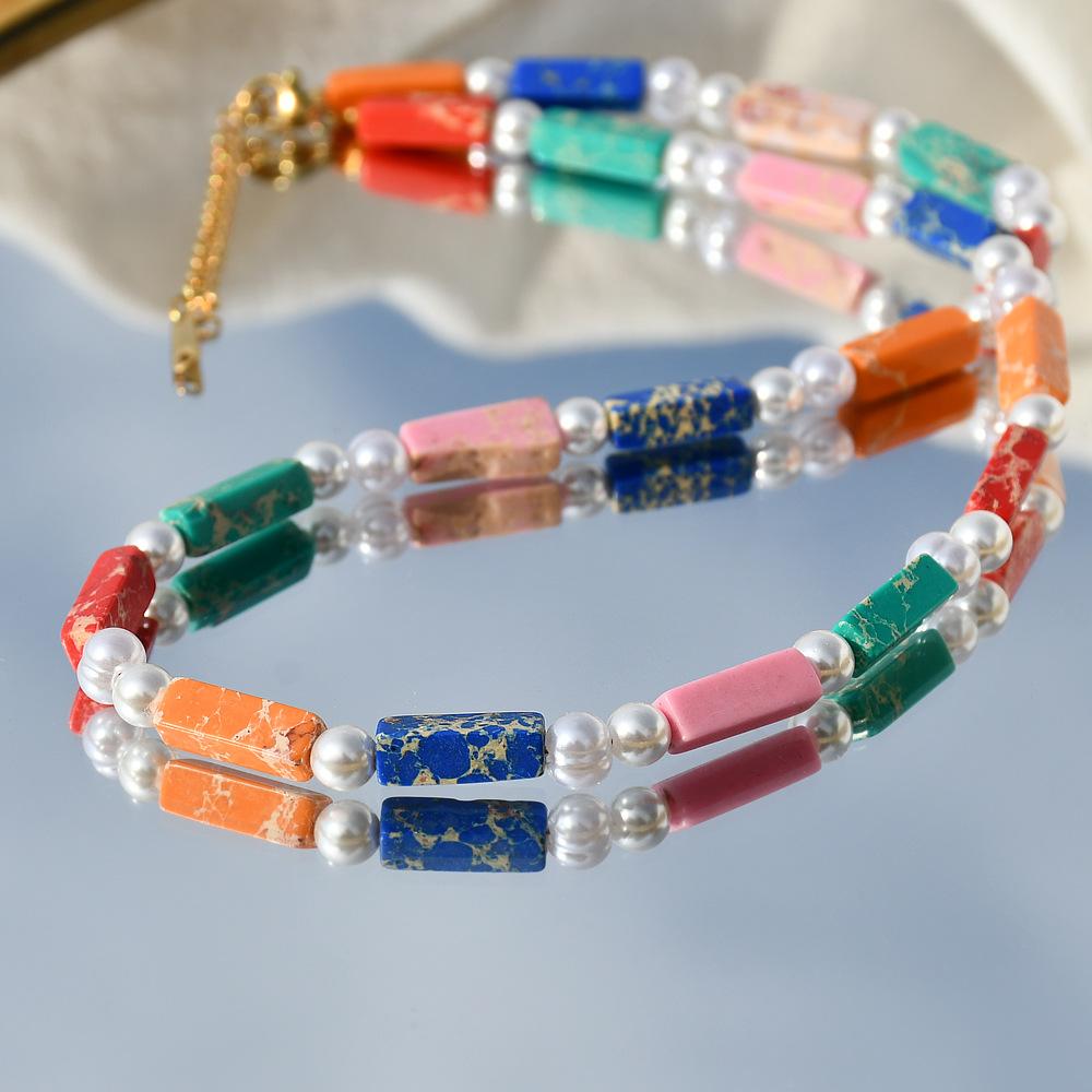 Collar de perlas de piedra imperial de color europeo y americano, moderno y a la moda
