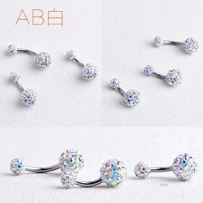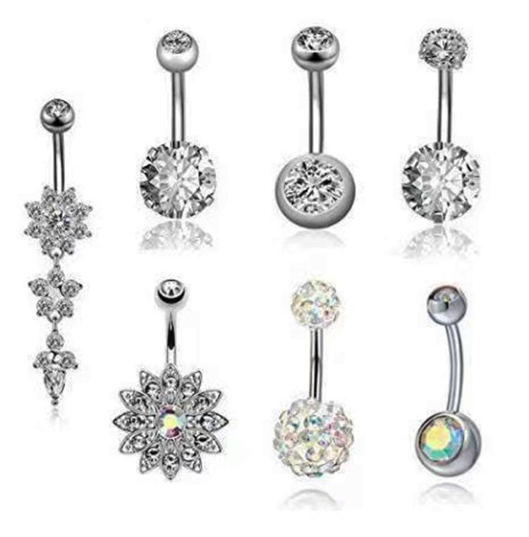 Amazon exquisito piercing para ombligo de circonita color AB bola de cerámica suave hebilla para ombligo moda europea y americana anillo para ombligo de diamante juego de 7 piezas