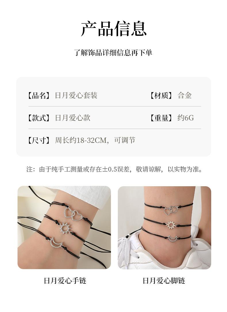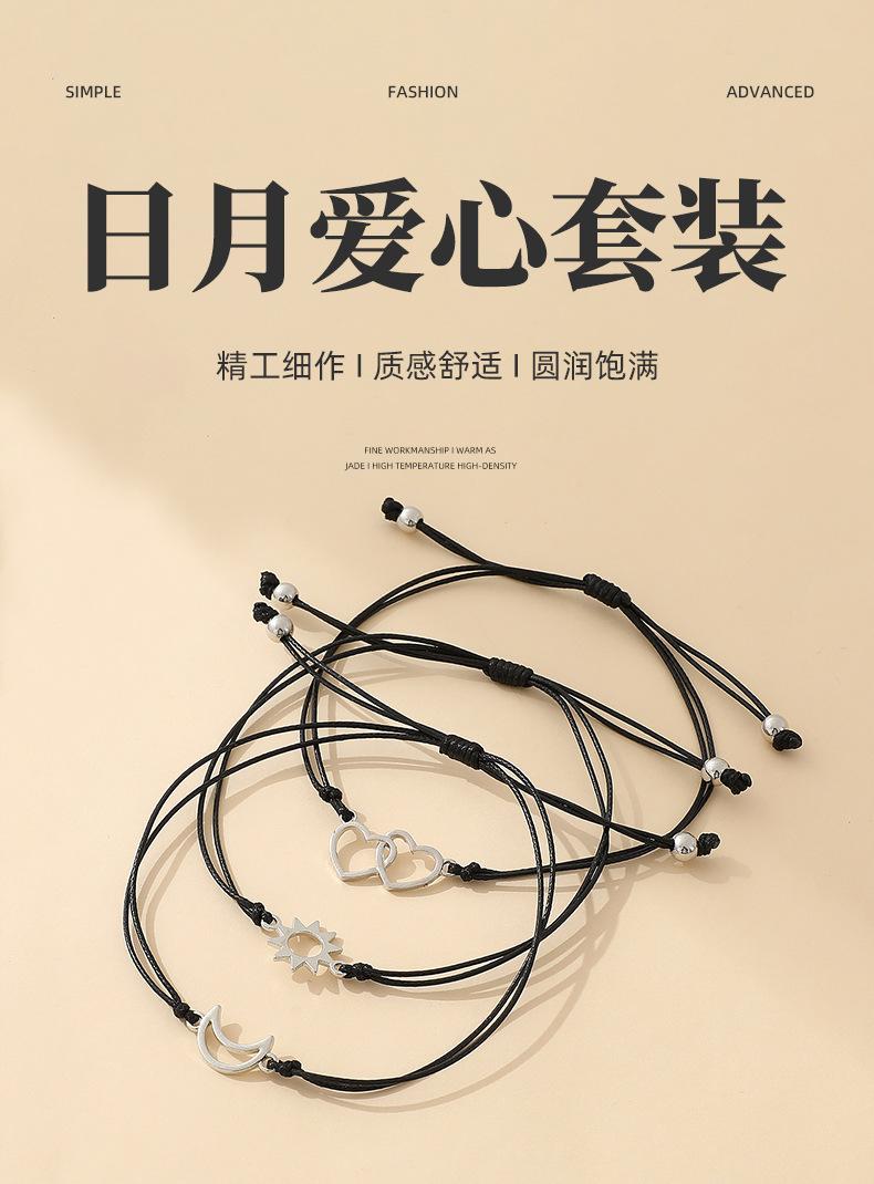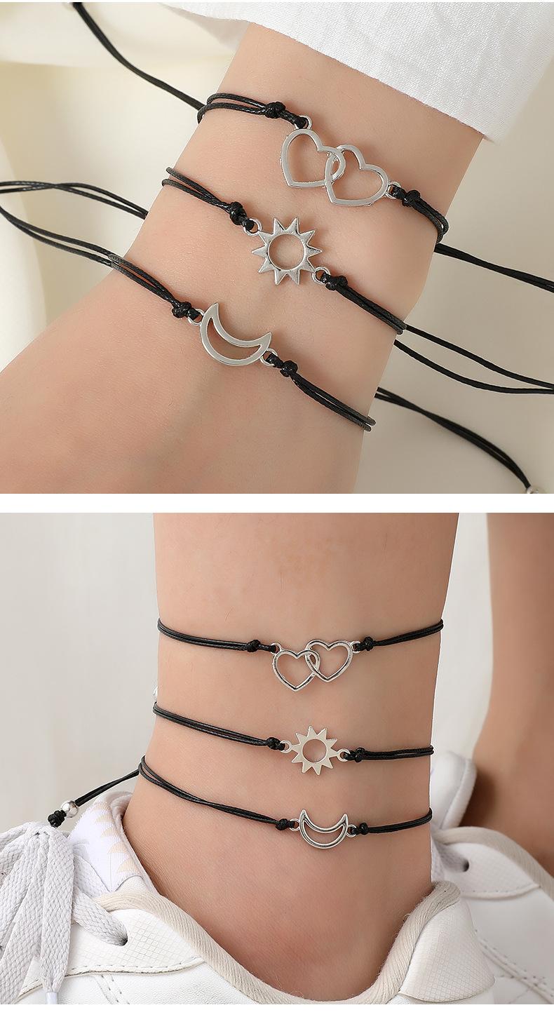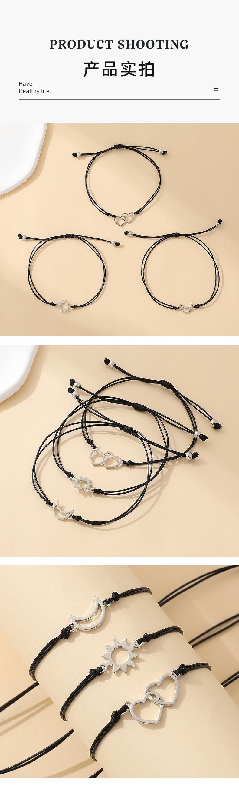 Pulsera de Aleación de Amistad de Personalidad Simple Pulsera Tejida de Cuerda de Cera de Aleación de Personalidad Europea y Americana Sol Luna Estrella Moderna