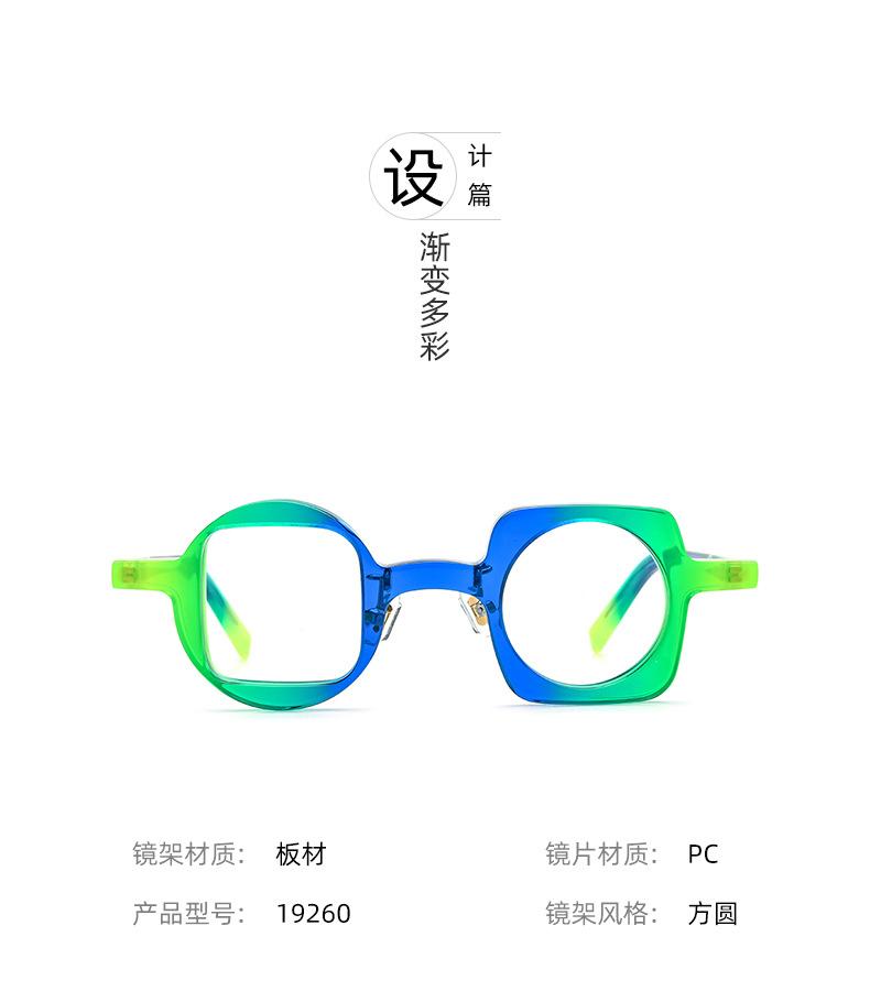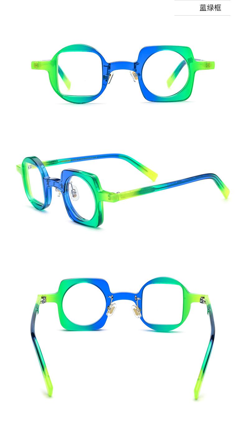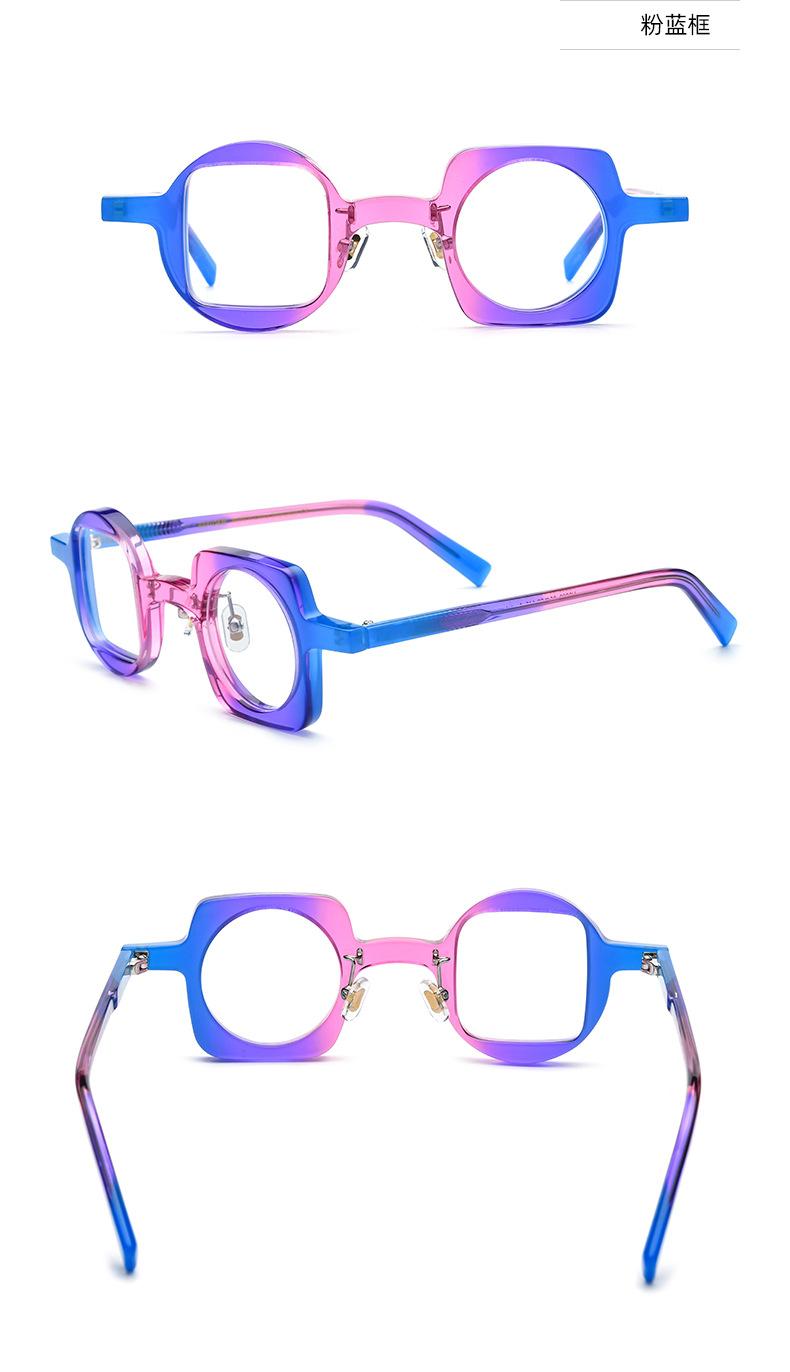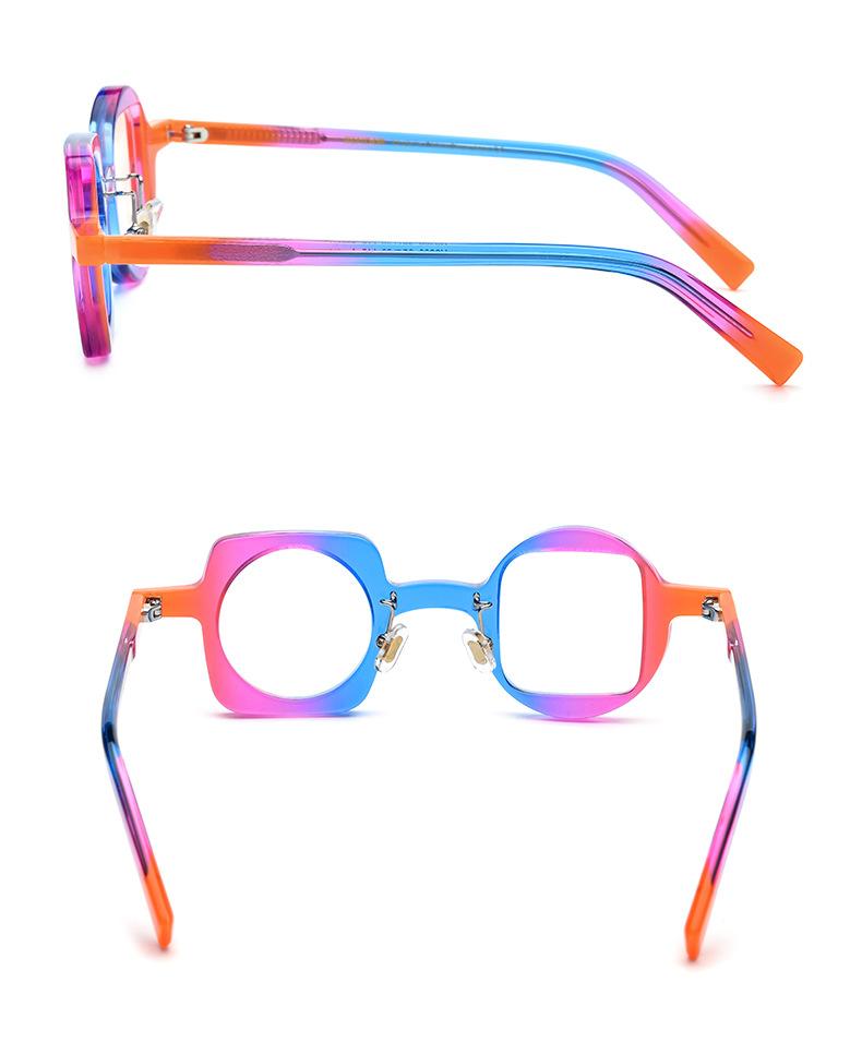 Nueva montura de gafas redonda de acetato con parches multicolor