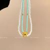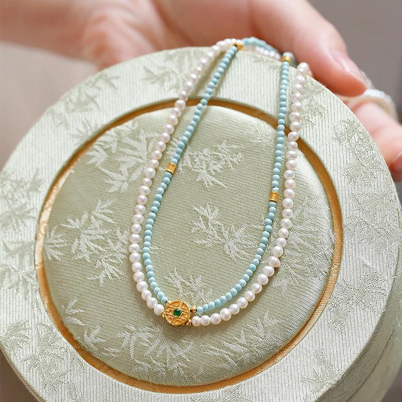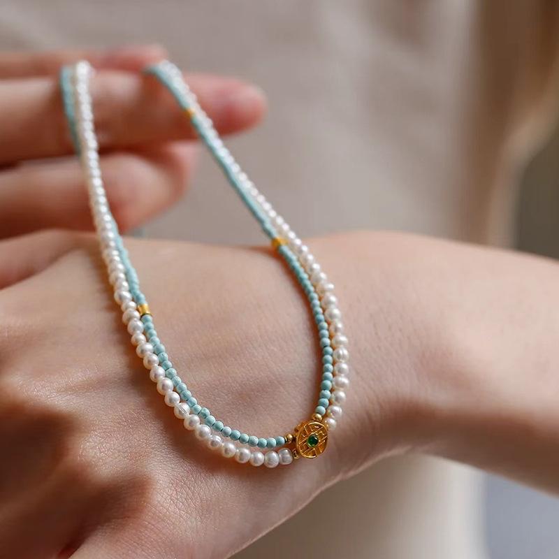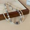 Collar de perlas de doble capa estilo retro francés para mujer, elegante, ligero, de lujo, combinable con todo, de gran valor, con cadena de clavícula.
