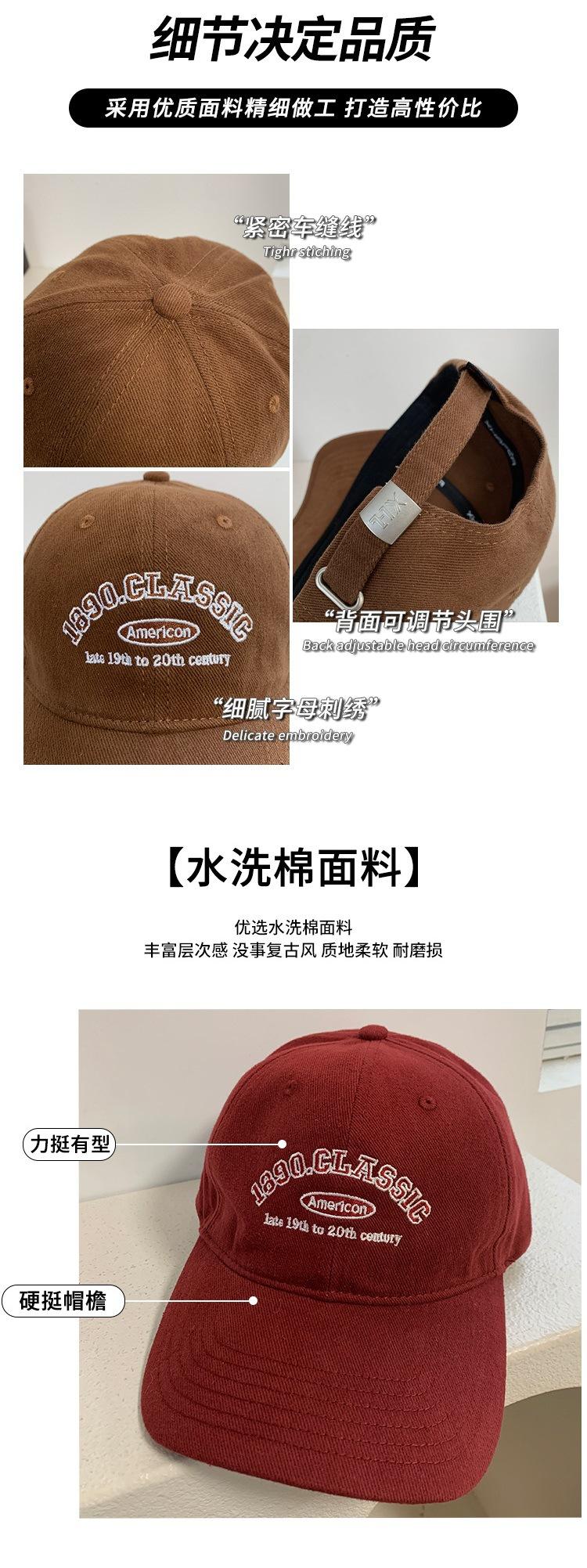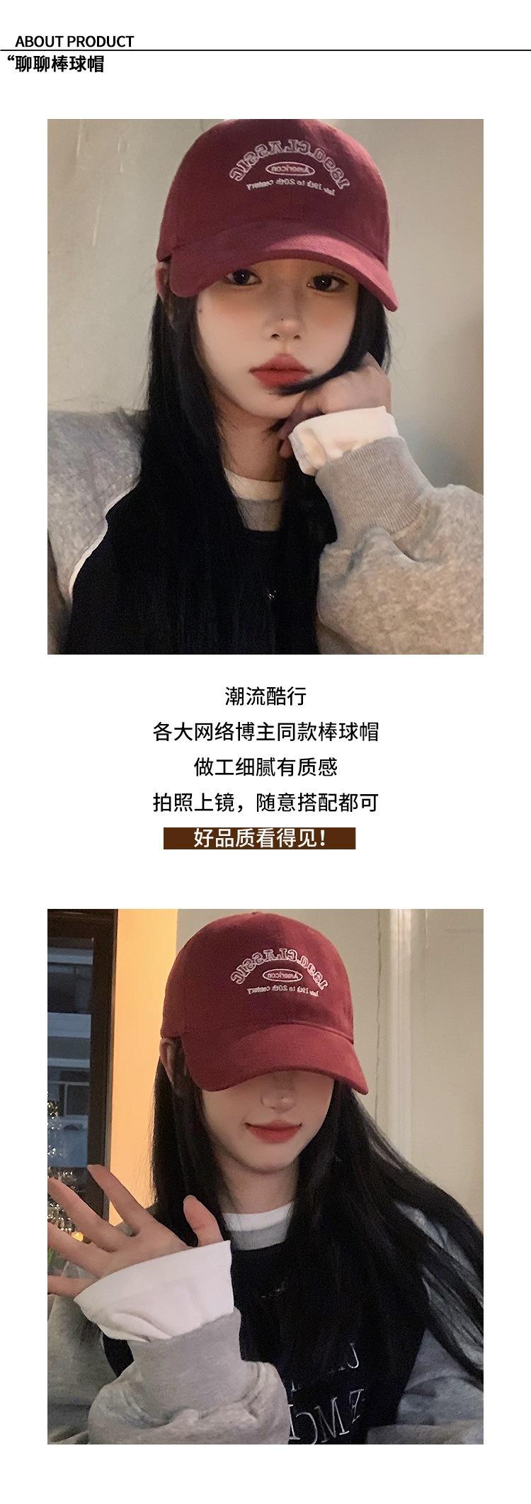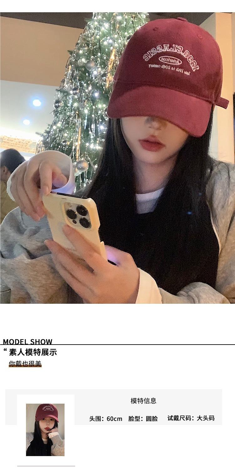 Gorra de béisbol color vino tinto para mujer, suave, de ala ancha, estilo retro, versátil, con gran circunferencia de cabeza, para rostro pequeño, a la moda