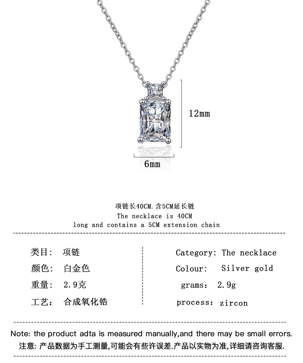 Collar largo cuadrado princesa con colgante geométrico simple de circón de azúcar de caña para mujer, venta al por mayor de Europa y Estados Unidos