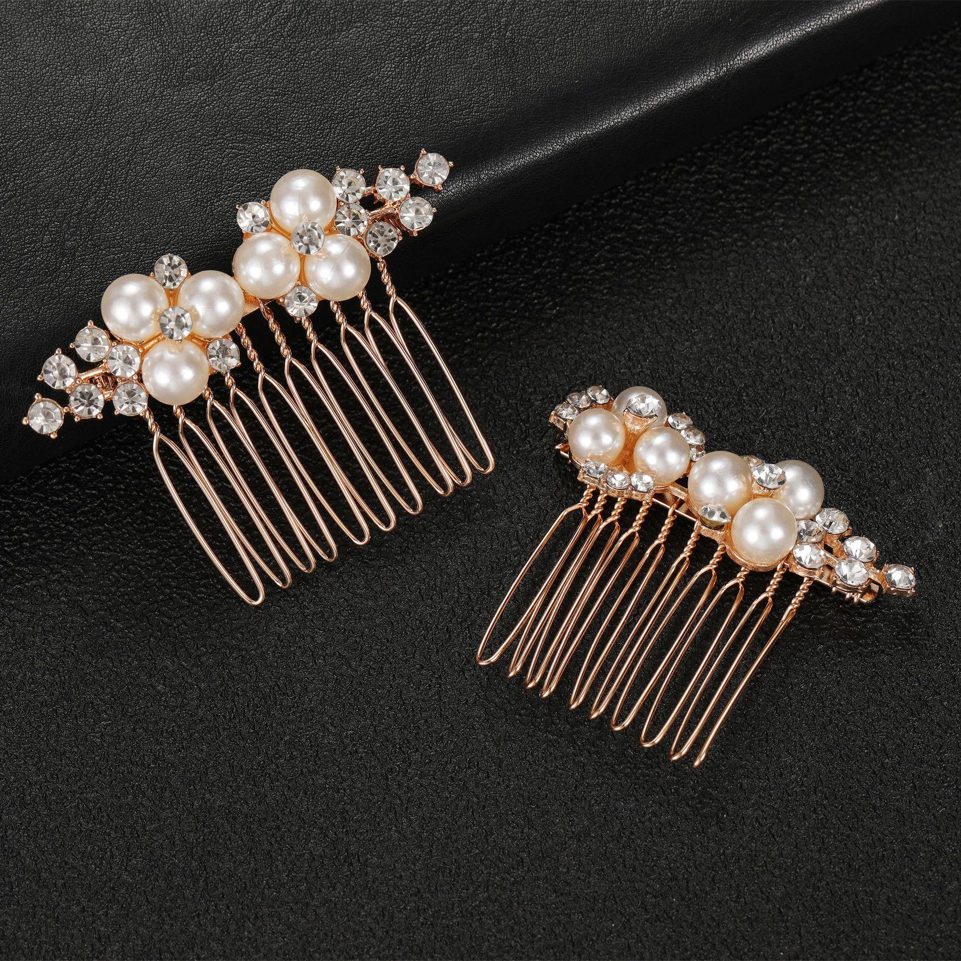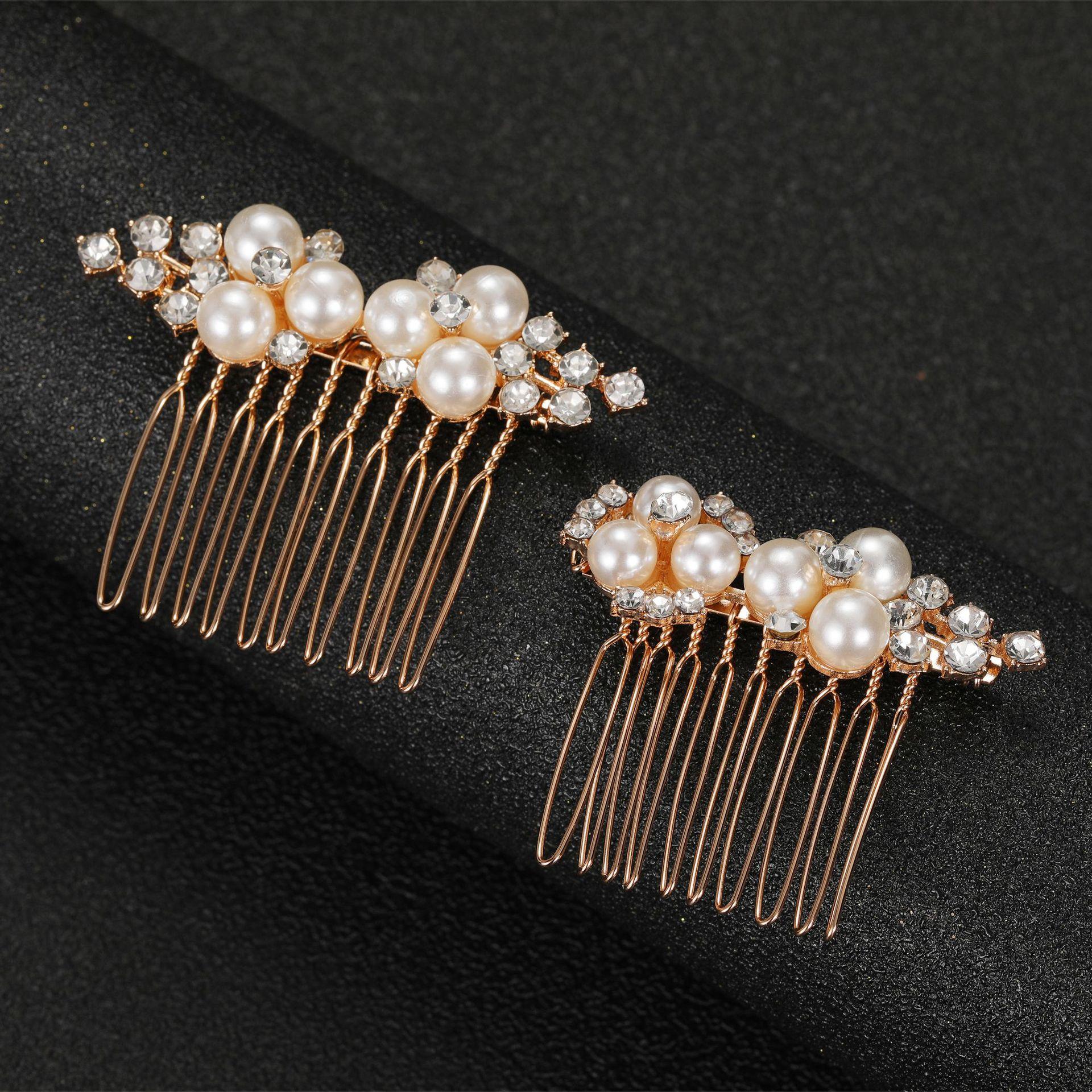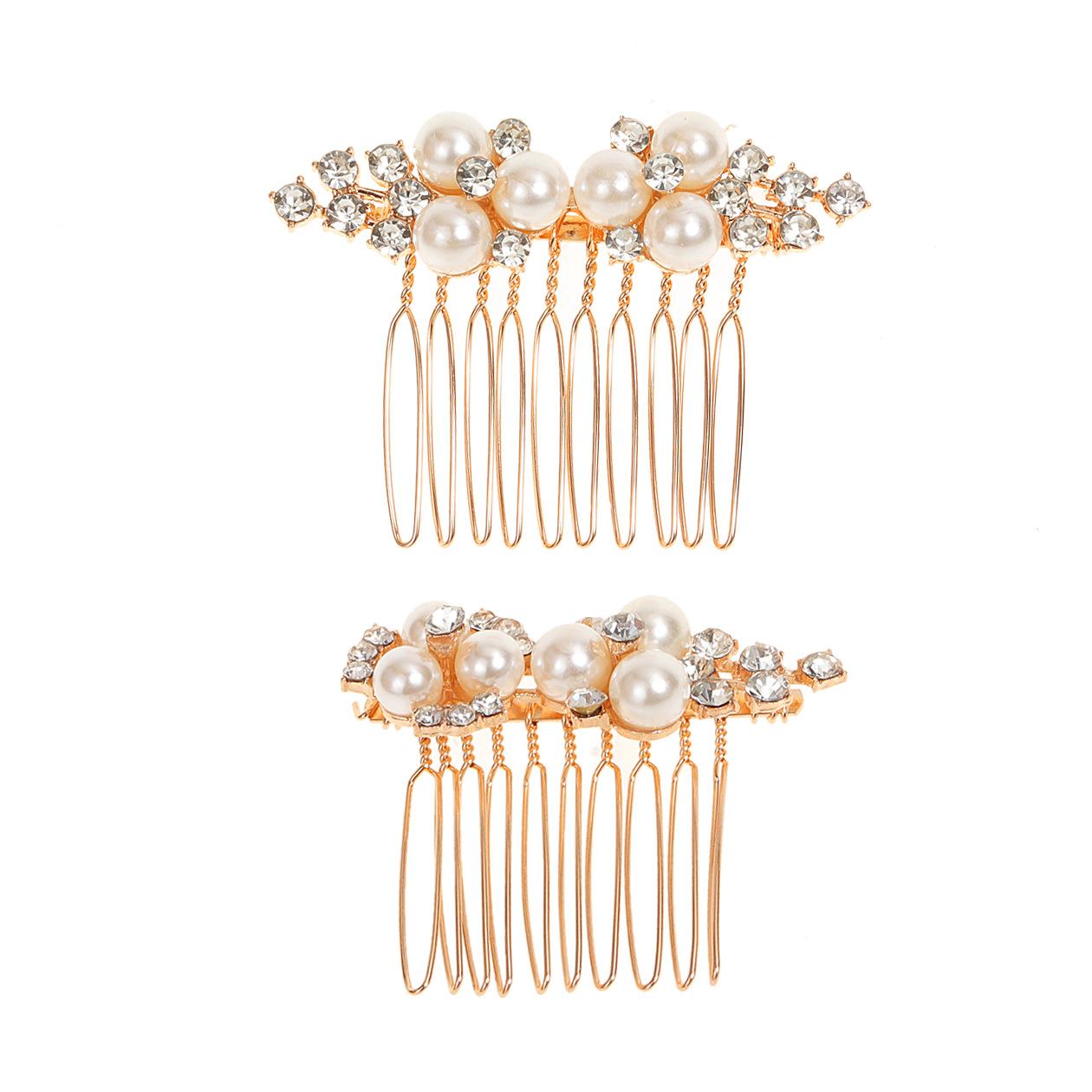 Europa y Estados Unidos transfronterizos 2 una combinación de peineta de flores de perla dorada peineta lateral accesorios para el cabello de novia de boda