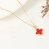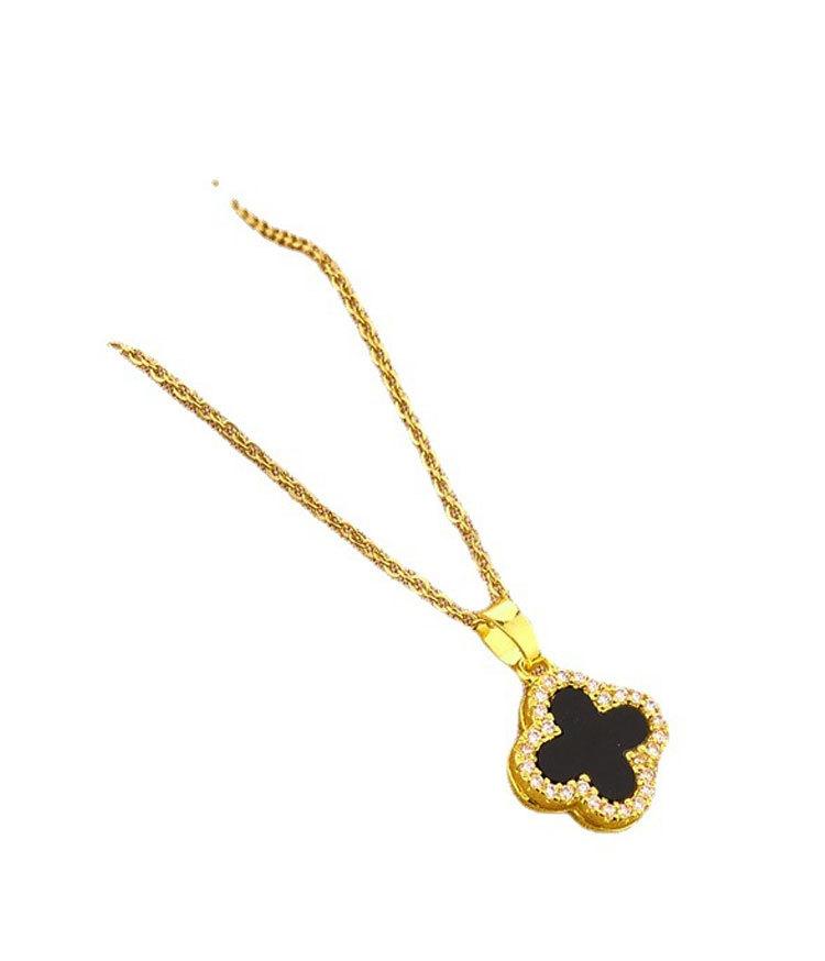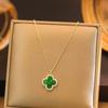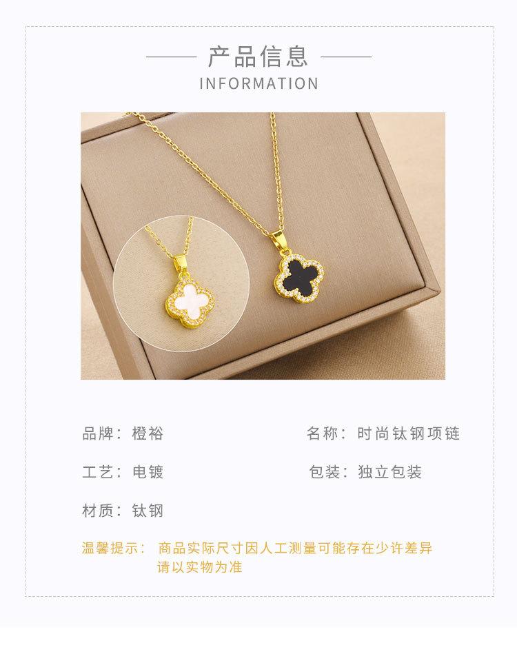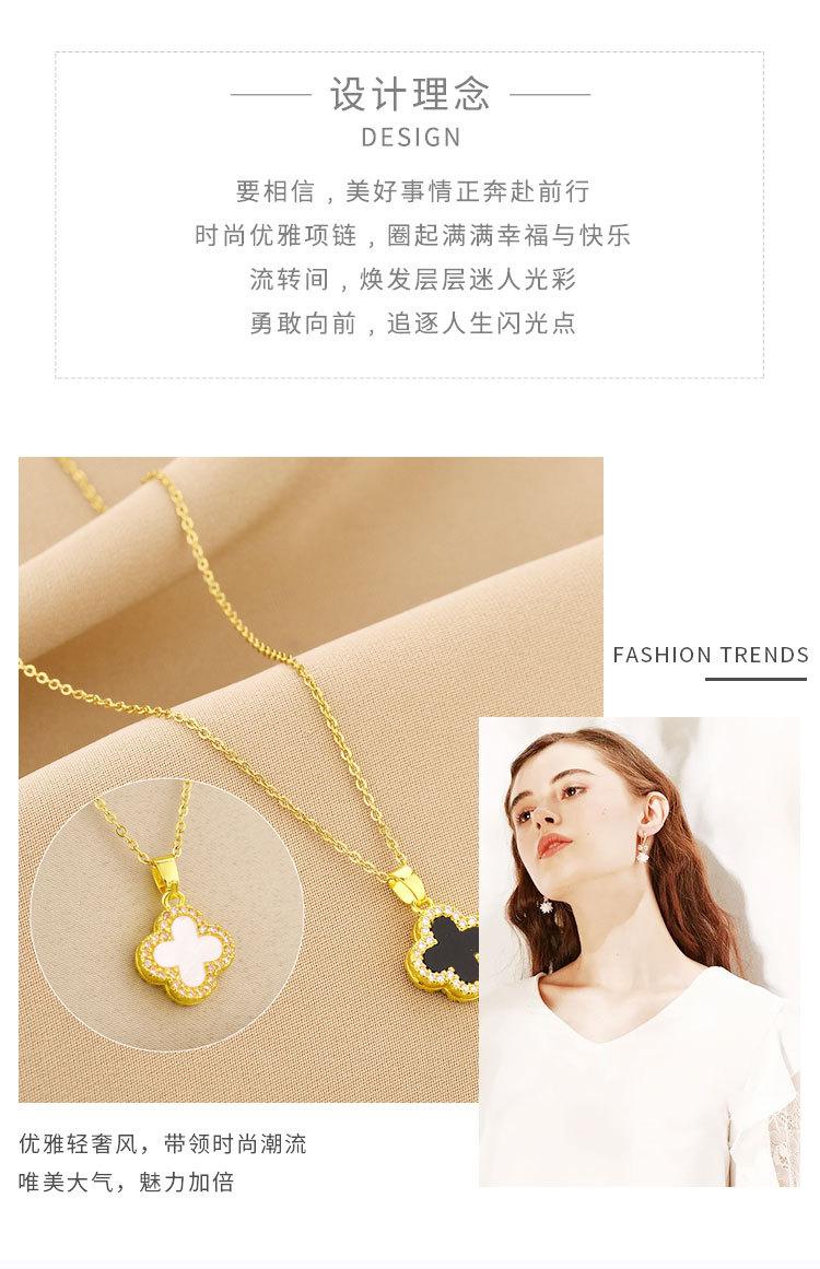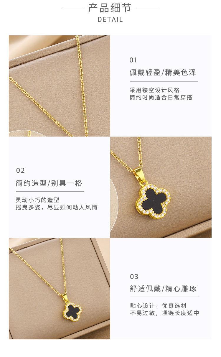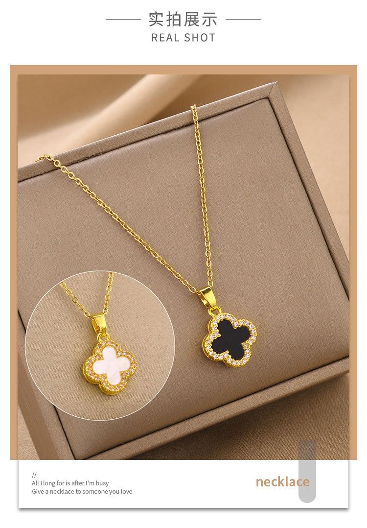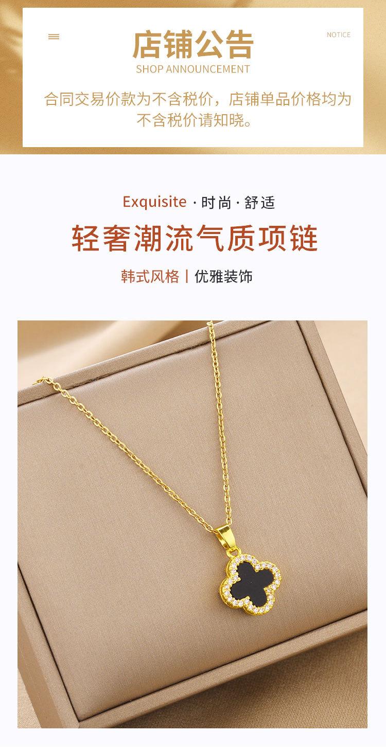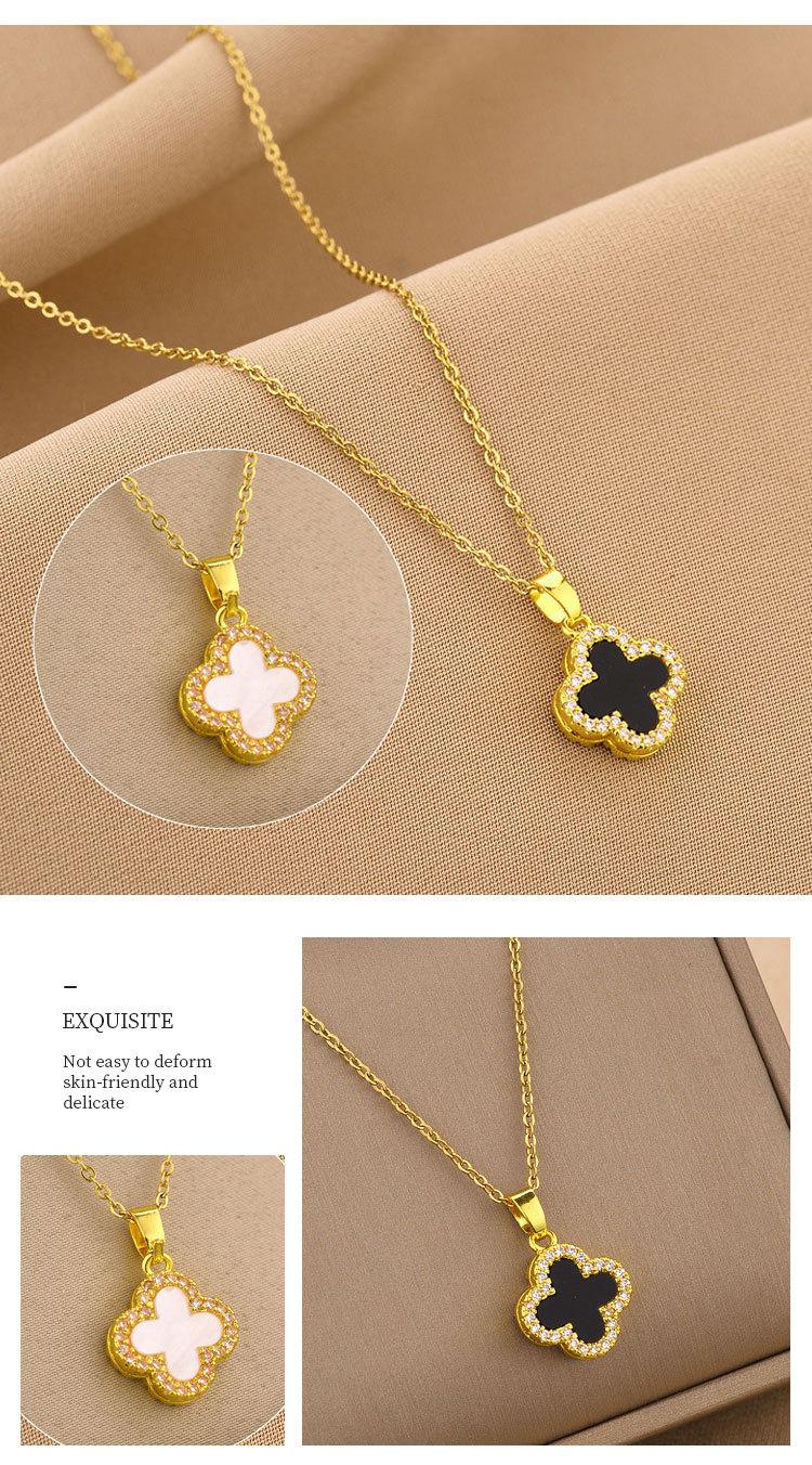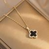 Collar de acero de titanio para mujer, colgante de trébol de cuatro hojas con diamantes en oro rosa de 18 quilates, nicho ligero de lujo, cadena de clavícula de concha negra, collar con temperamento