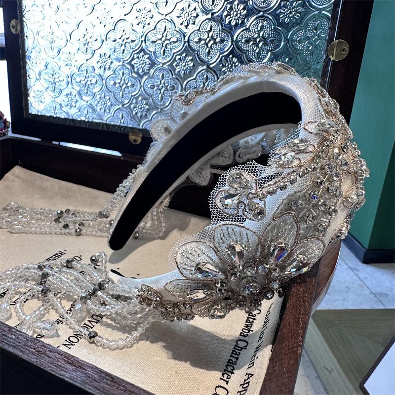 Aro para el pelo con colgante de borla de lujo con diamantes brillantes de cristal para industria pesada, diseño de nicho de moda francesa para novias, accesorios para el cabello con sello