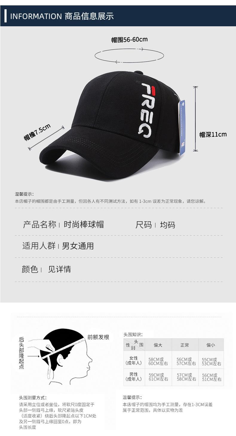 Gorra de béisbol bordada FREQ con letras bordadas laterales para primavera y otoño, gorra con visera, moda urbana, moda casual, protección solar