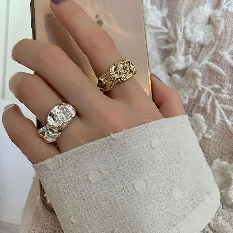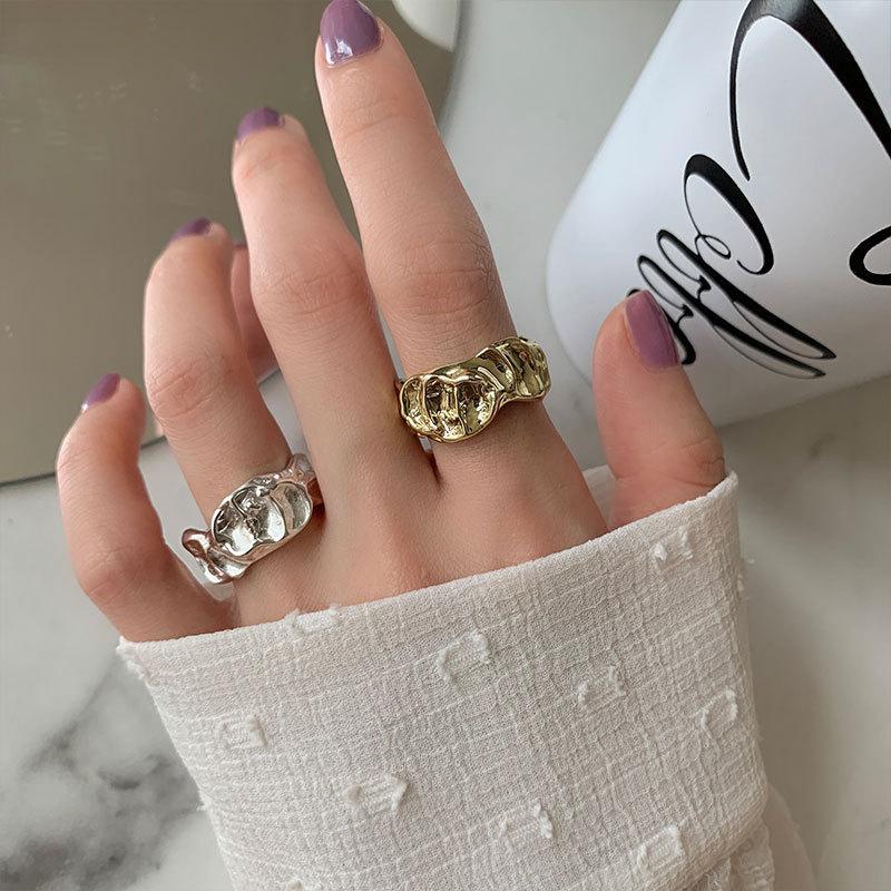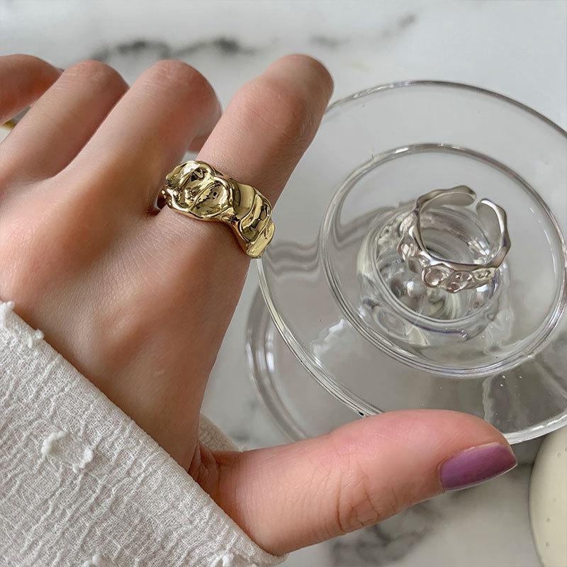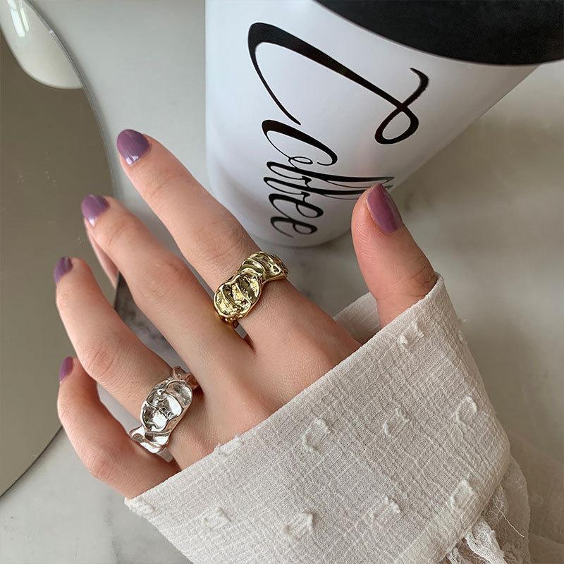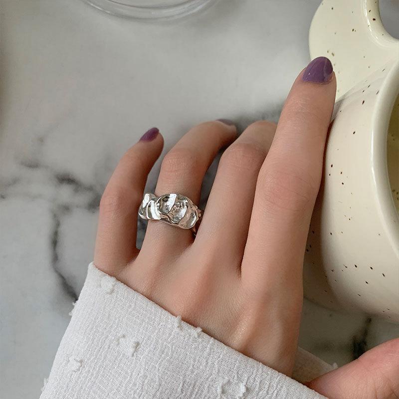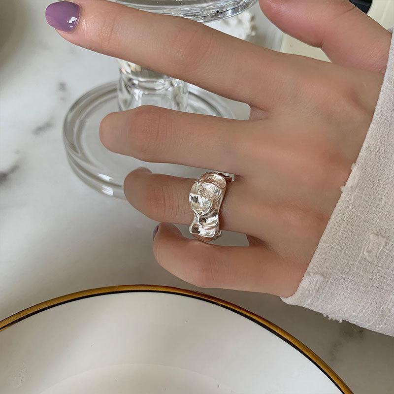 Anillo irregular distintivo de plata S925 de estilo coreano para mujer, estilo retro, con diseño de lava y protuberancias, estilo hip-hop.