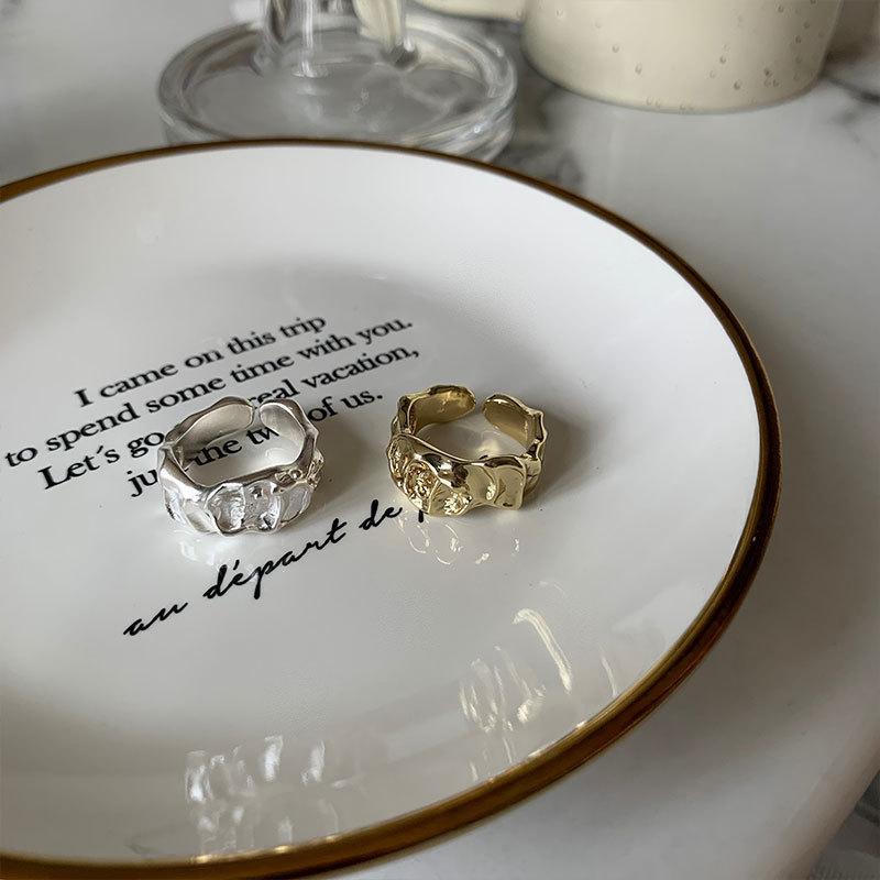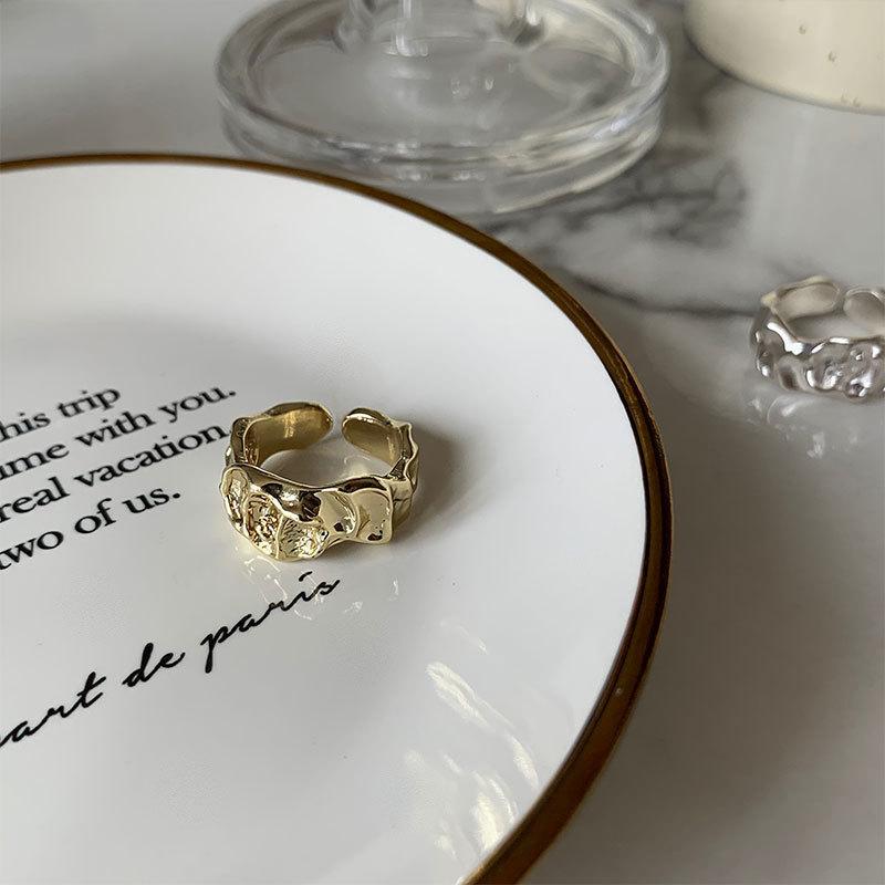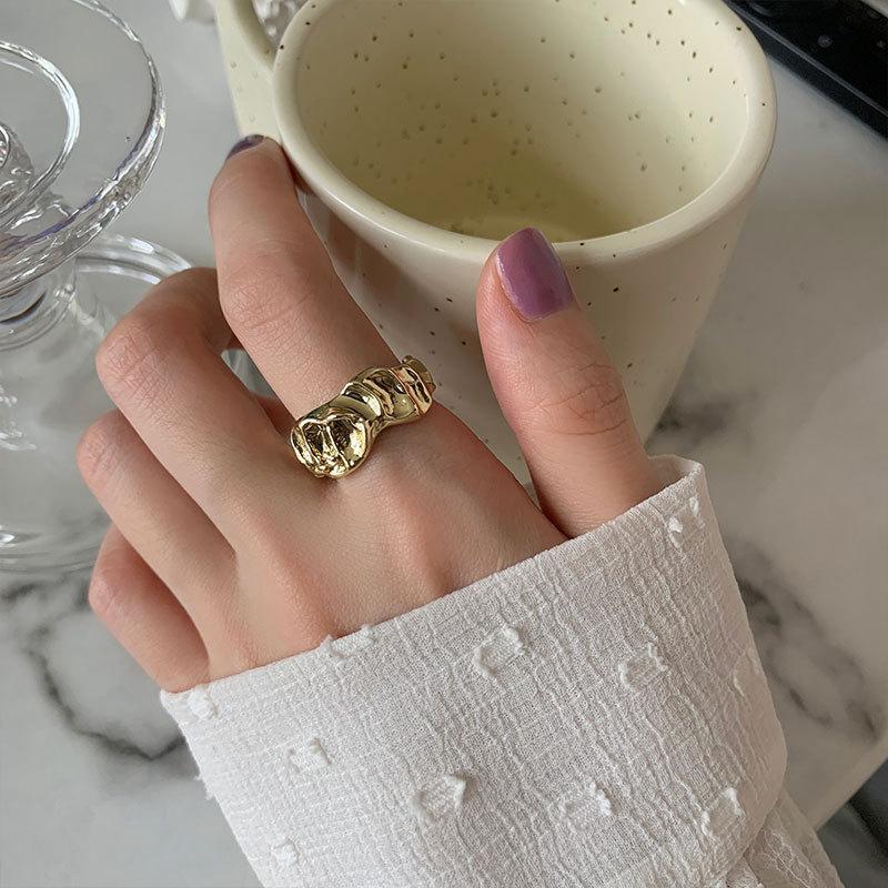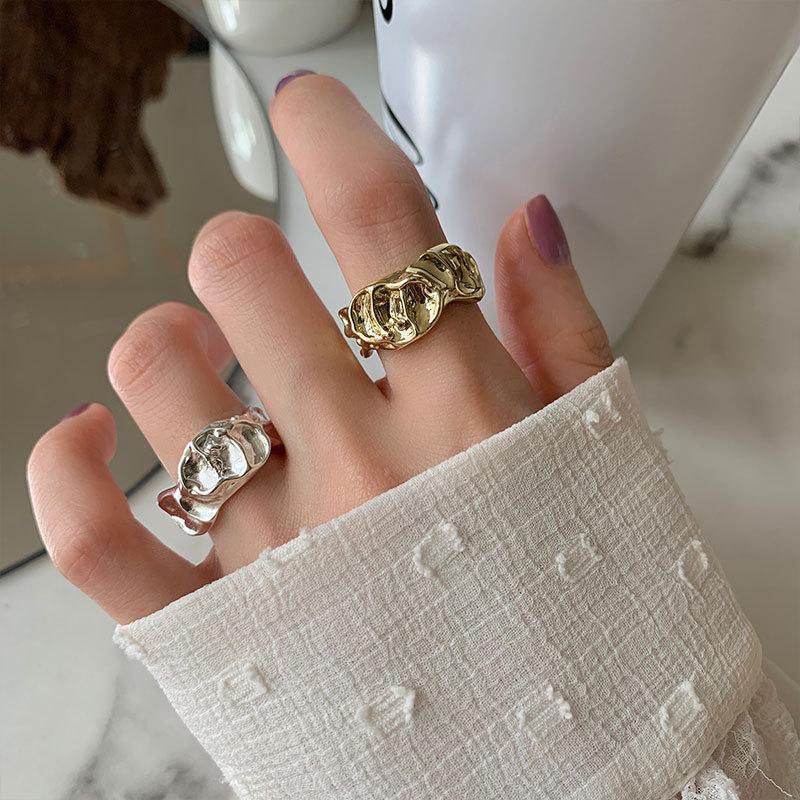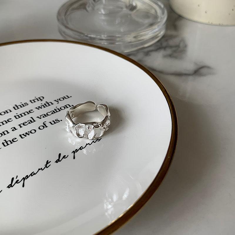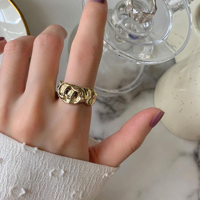 Anillo irregular distintivo de plata S925 de estilo coreano para mujer, estilo retro, con diseño de lava y protuberancias, estilo hip-hop.