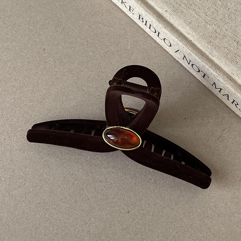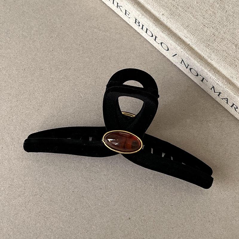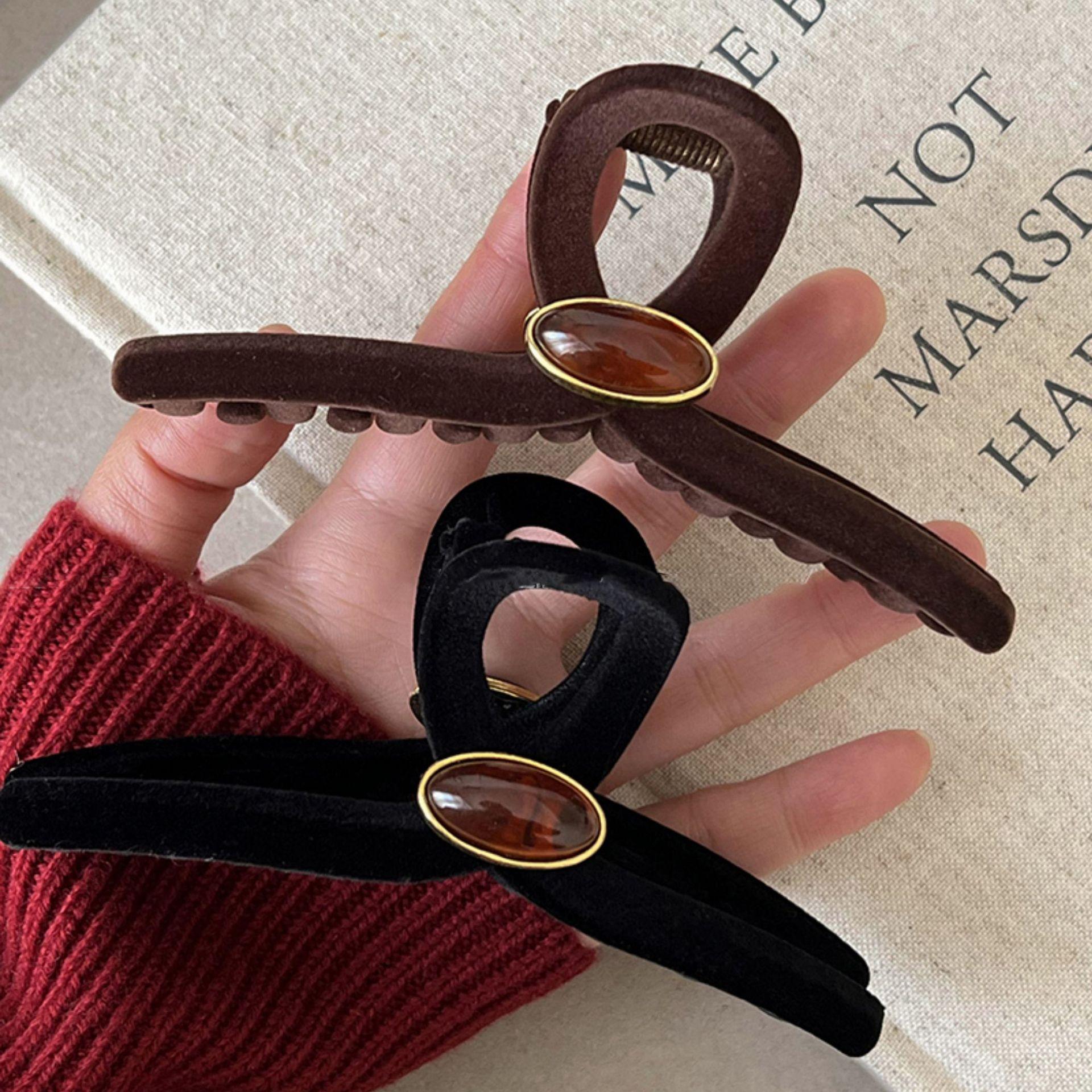 Clip negro de terciopelo para otoño e invierno para mujer 2023, nuevo clip de tiburón grande de alta calidad, horquilla para la cabeza trasera con temperamento, accesorios para el cabello