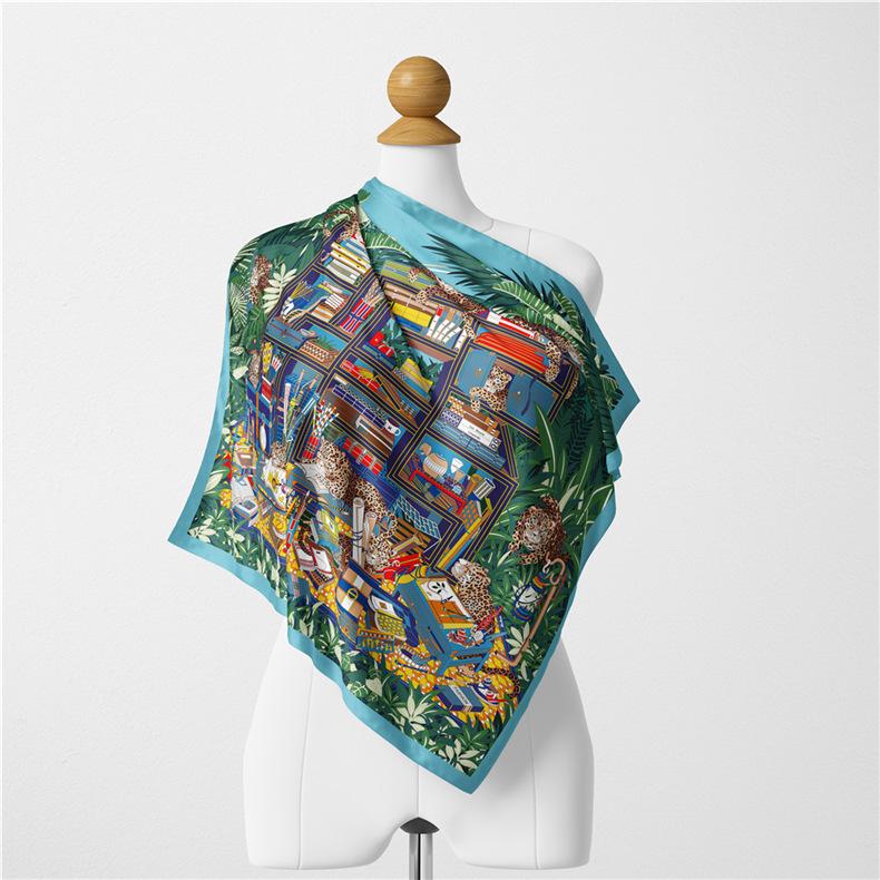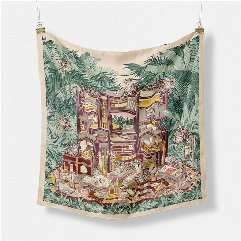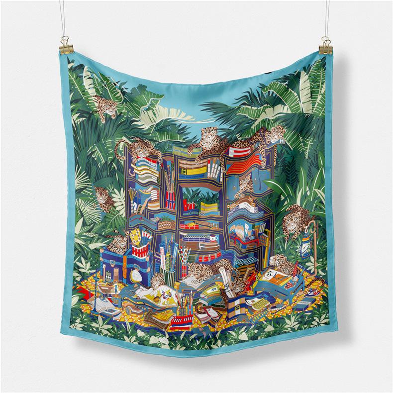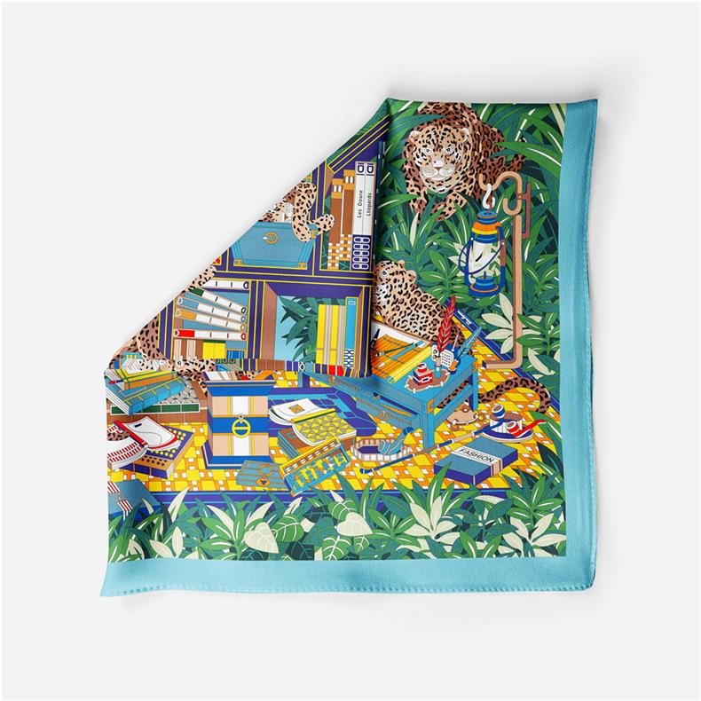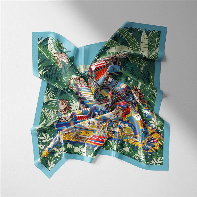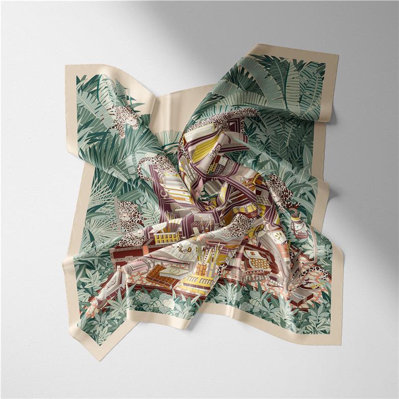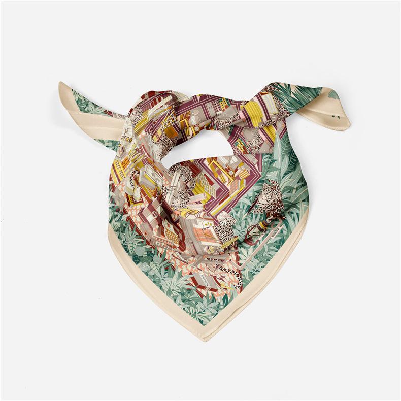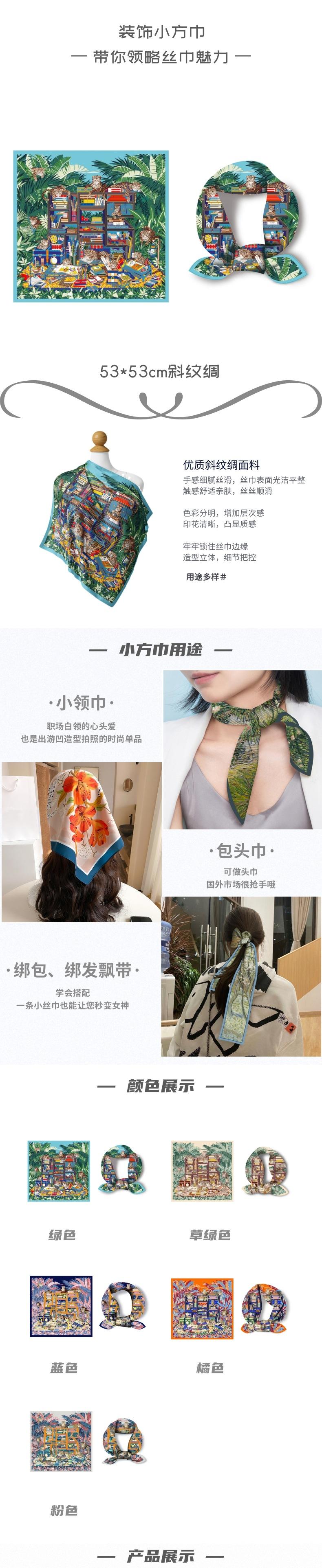 Bufanda de Seda Pequeña Verde de Comercio Exterior para Mujer Primavera y Otoño Delgada Estilo Coreano Versátil Bufanda Lazo para el Cabello Elegante Bufanda Cuadrada Traje Camisa Bufanda