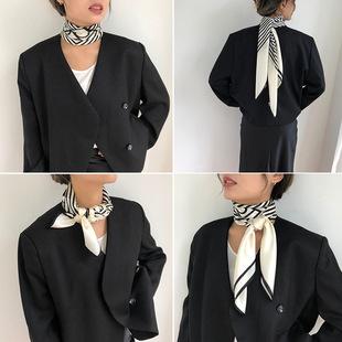 | |  | | Pañuelo para la cabeza de seda a rayas frías de 90 cm para mujer, chal francés, bufanda de seda morera de doble propósito | | | |