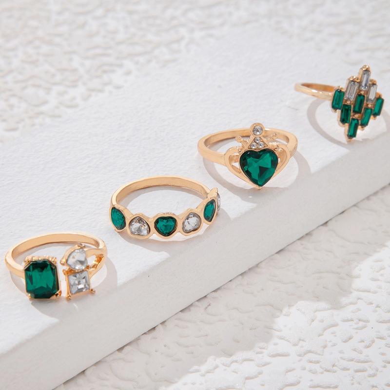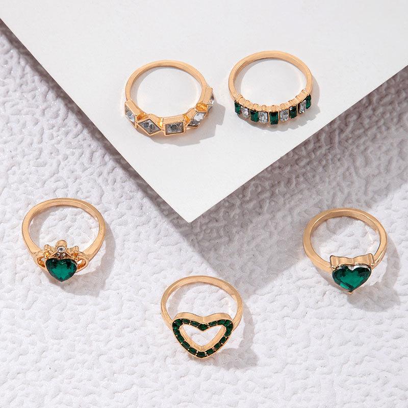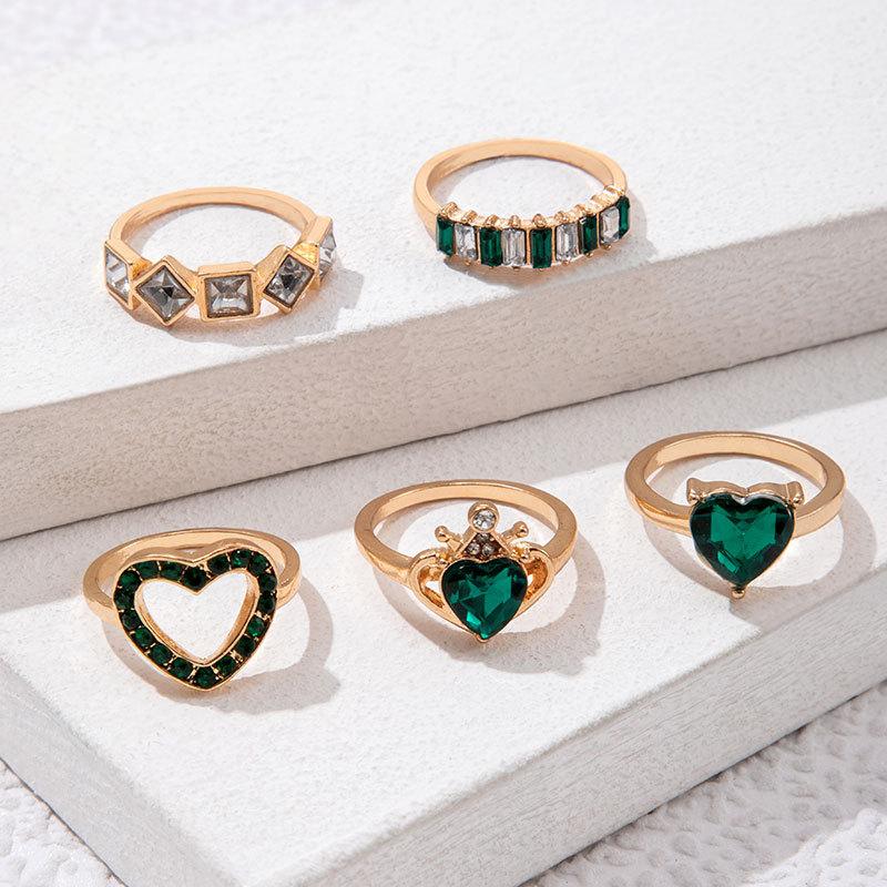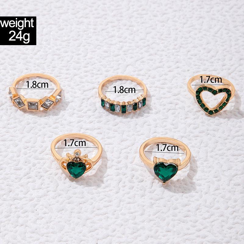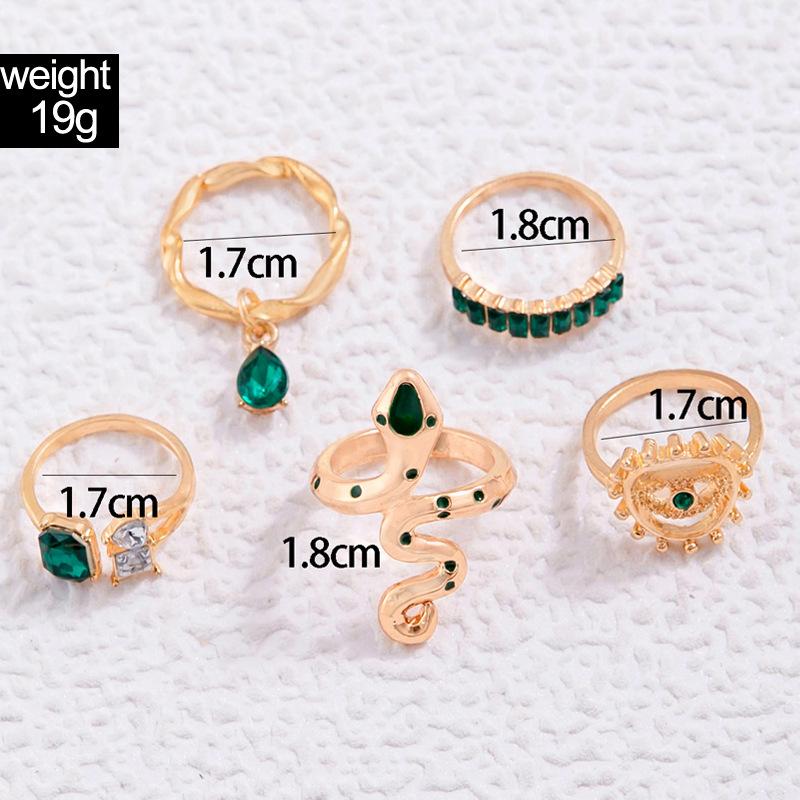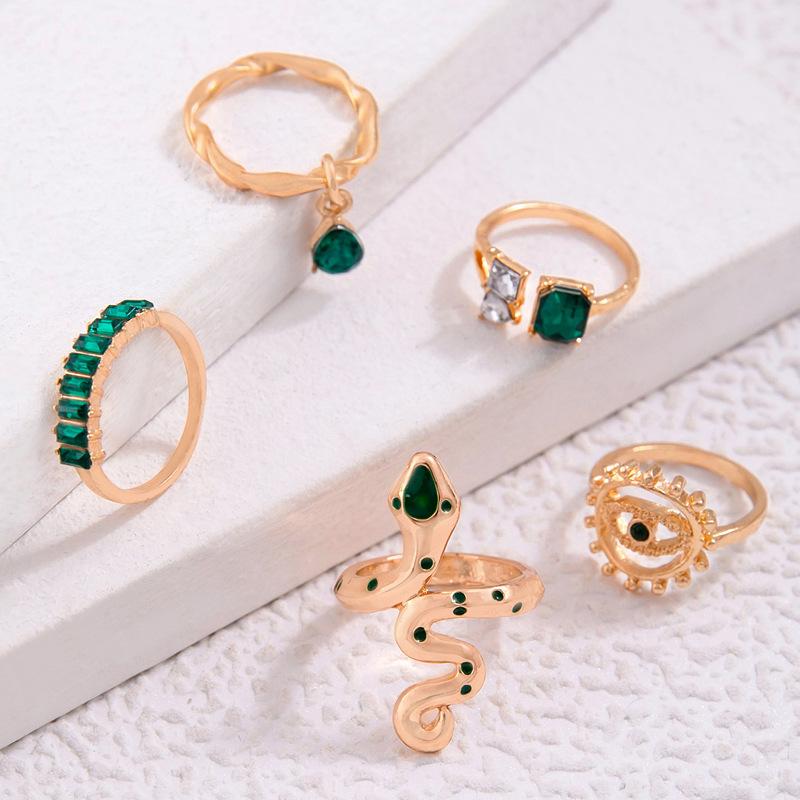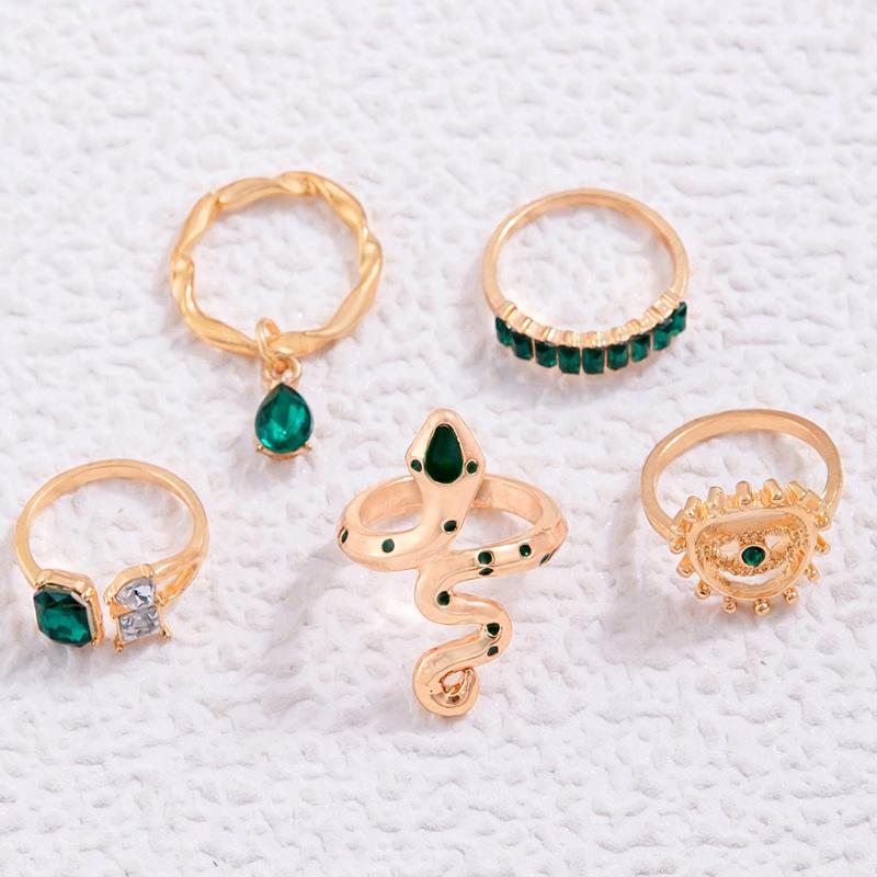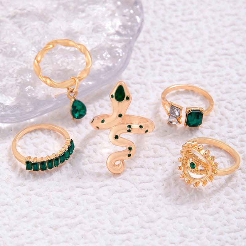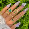 Anillo de Gema de Diamante Esmeralda de Imitación de Metal de Moda Retro Transfronteriza Europea y Americana Juego de Anillos de Serpiente en Forma de Corazón
