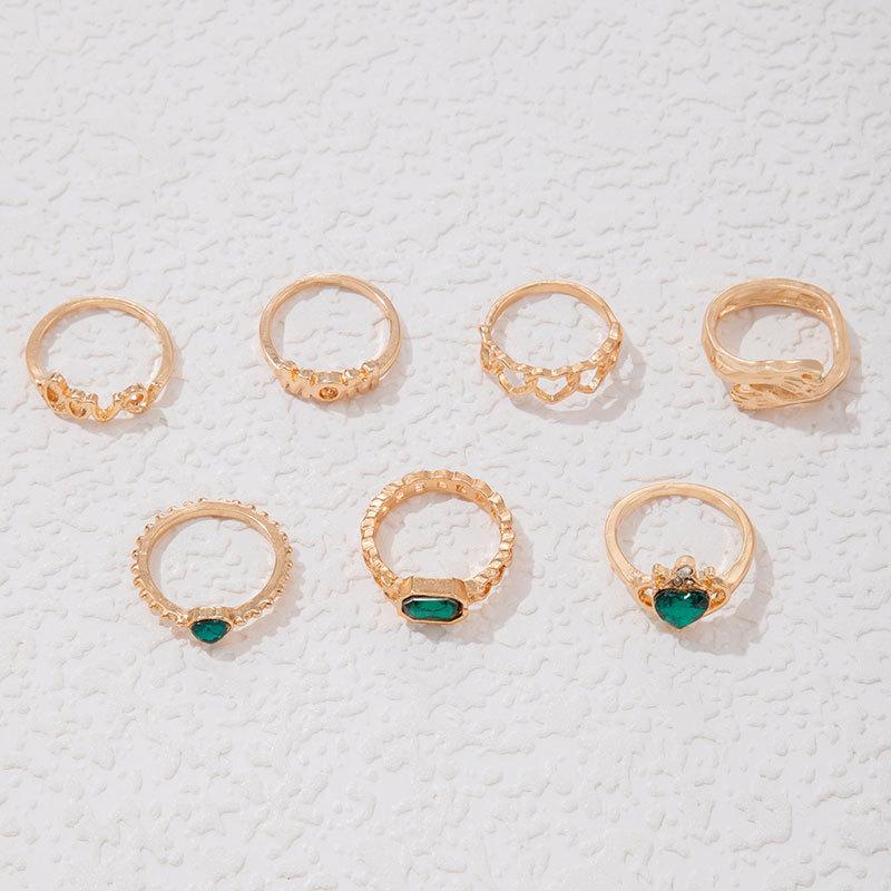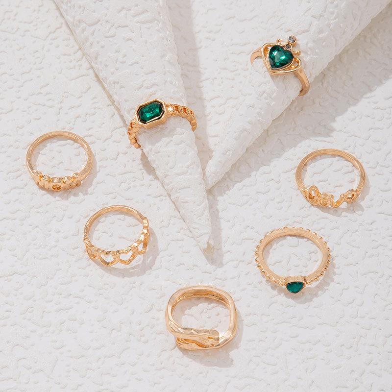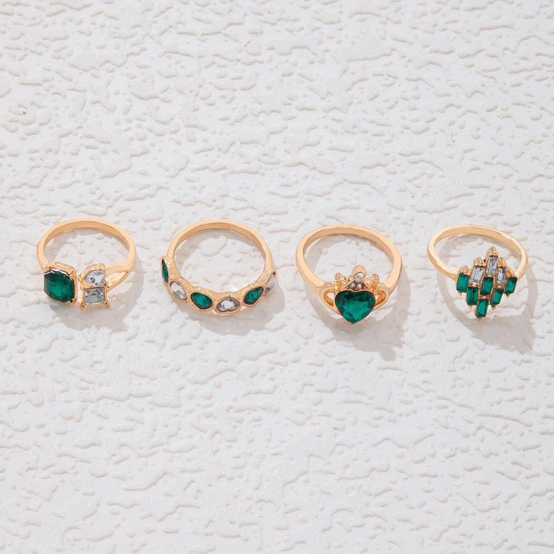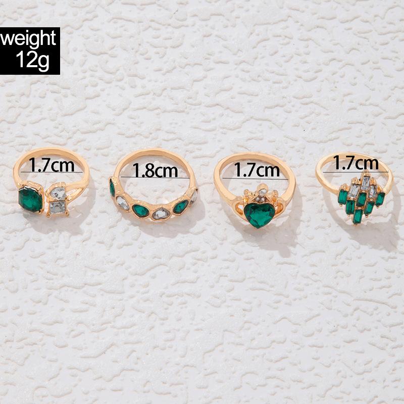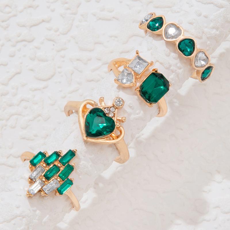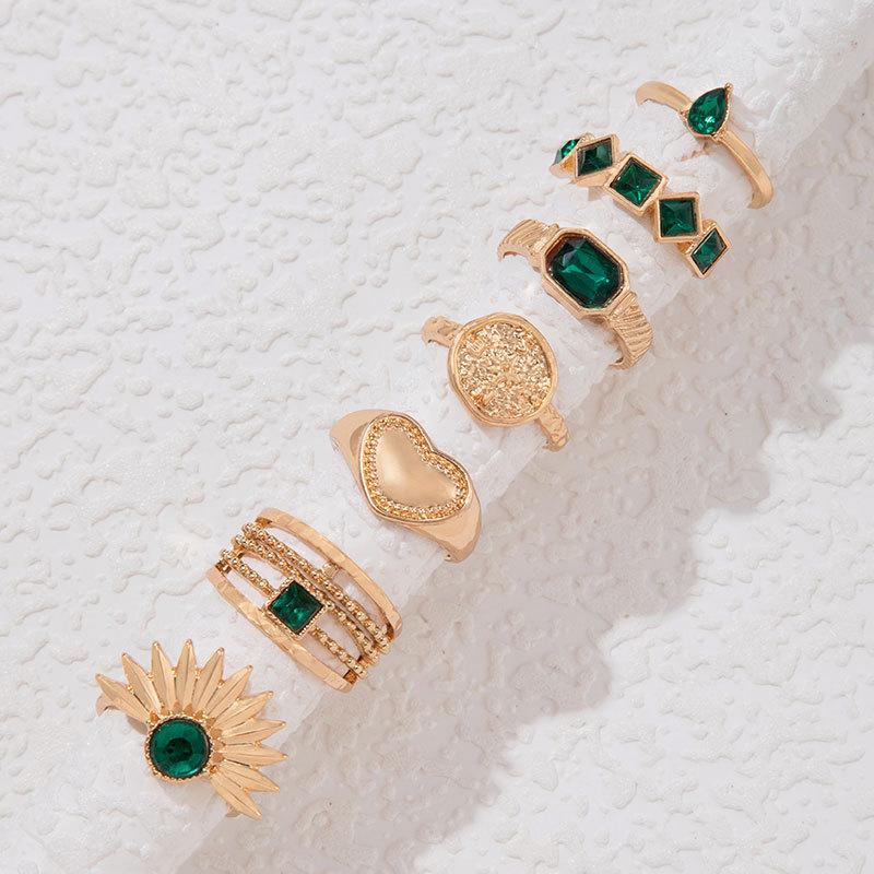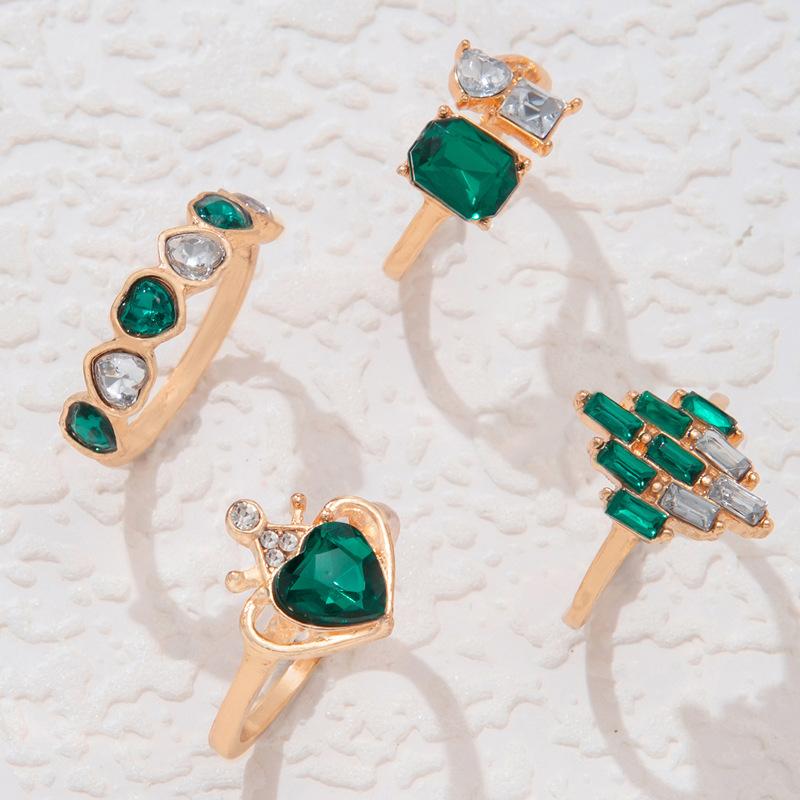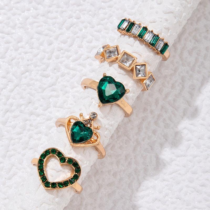 Anillo de Gema de Diamante Esmeralda de Imitación de Metal de Moda Retro Transfronteriza Europea y Americana Juego de Anillos de Serpiente en Forma de Corazón