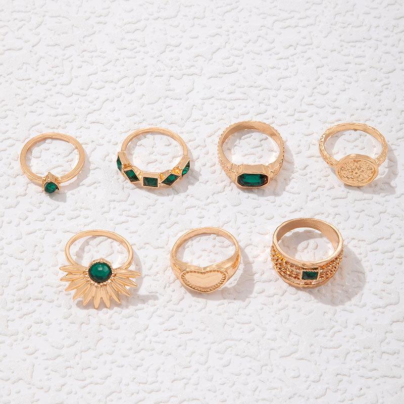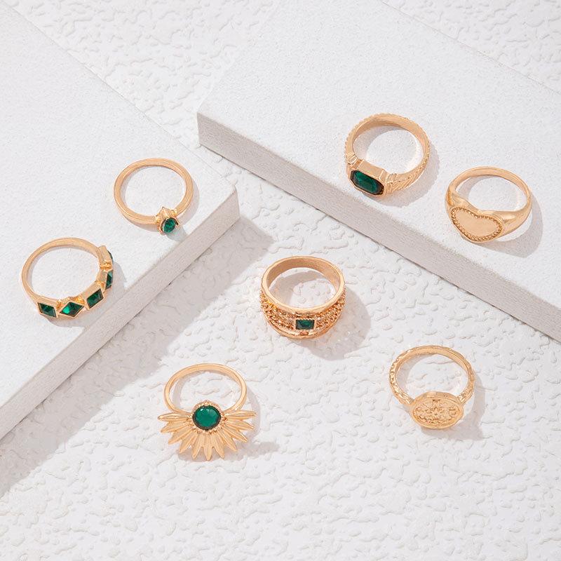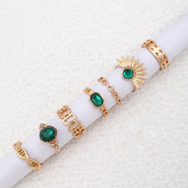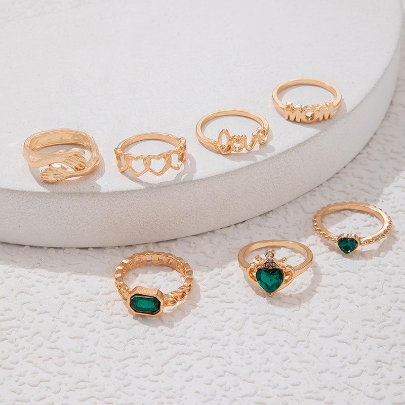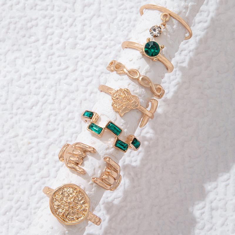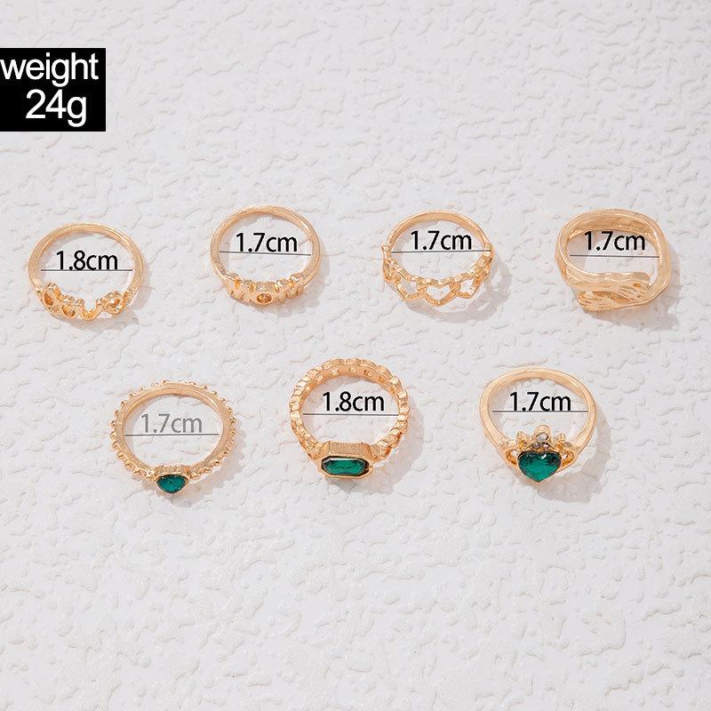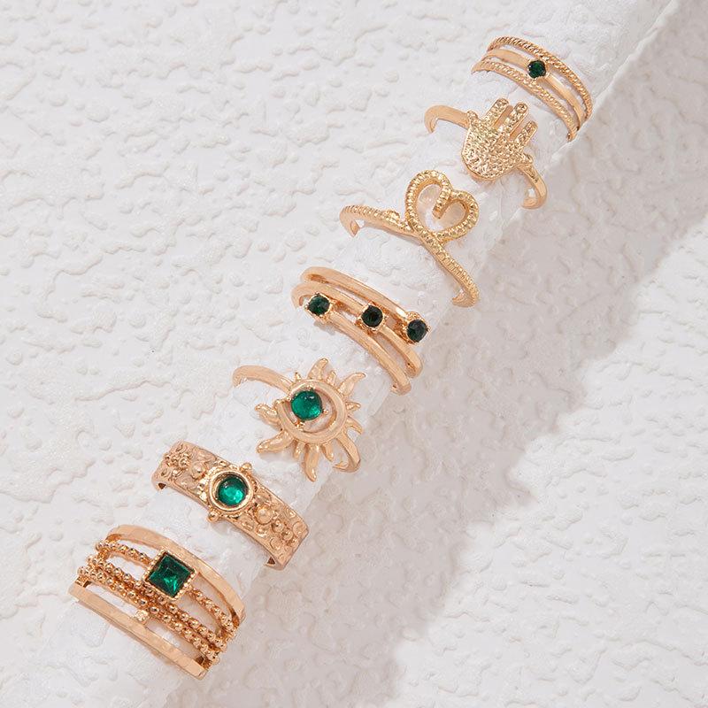 Anillo de Gema de Diamante Esmeralda de Imitación de Metal de Moda Retro Transfronteriza Europea y Americana Juego de Anillos de Serpiente en Forma de Corazón