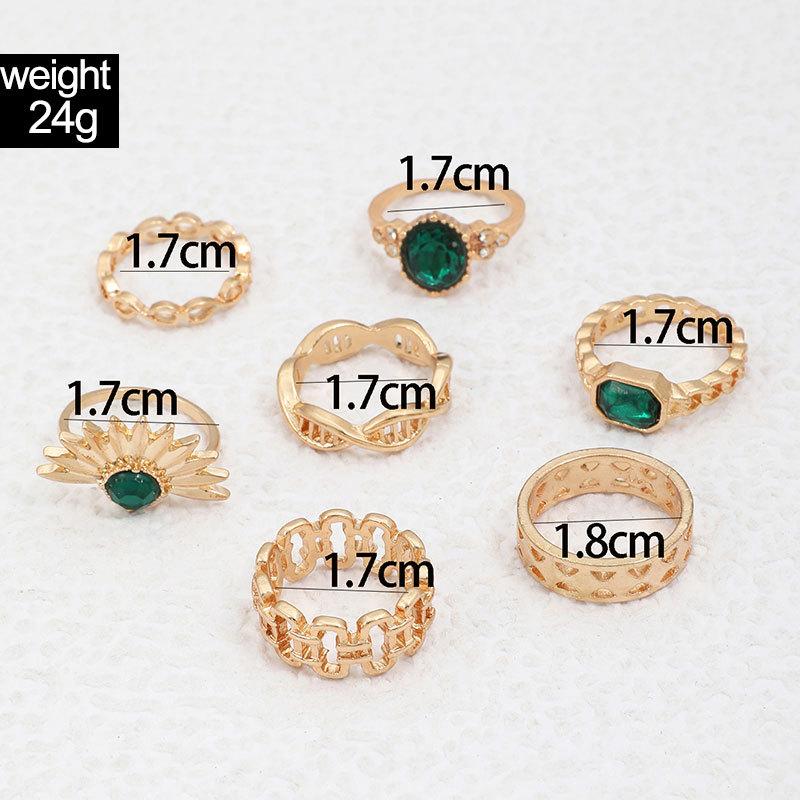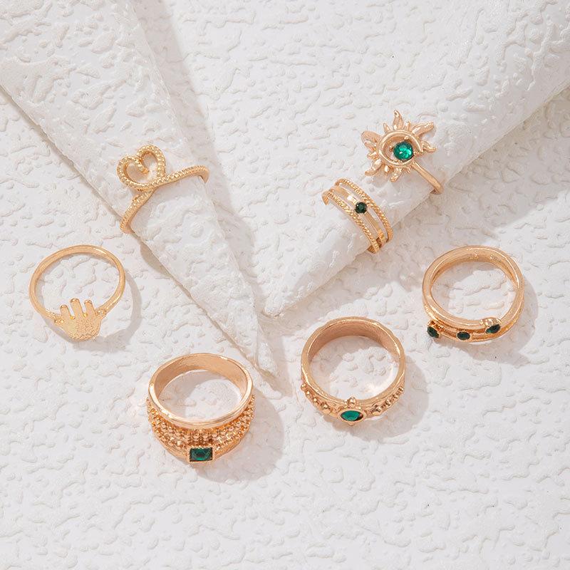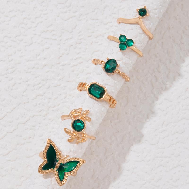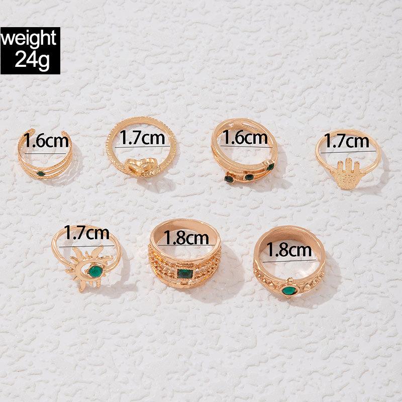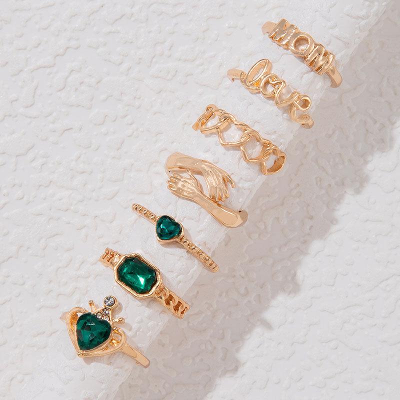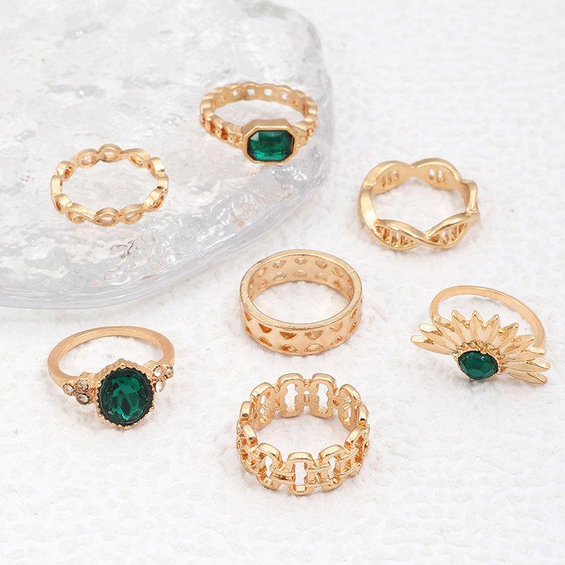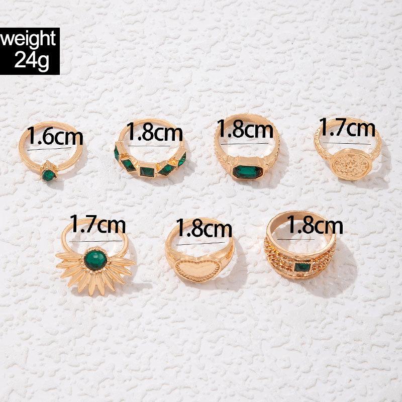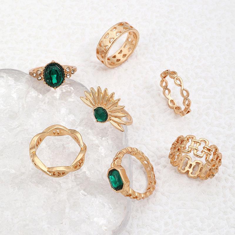 Anillo de Gema de Diamante Esmeralda de Imitación de Metal de Moda Retro Transfronteriza Europea y Americana Juego de Anillos de Serpiente en Forma de Corazón