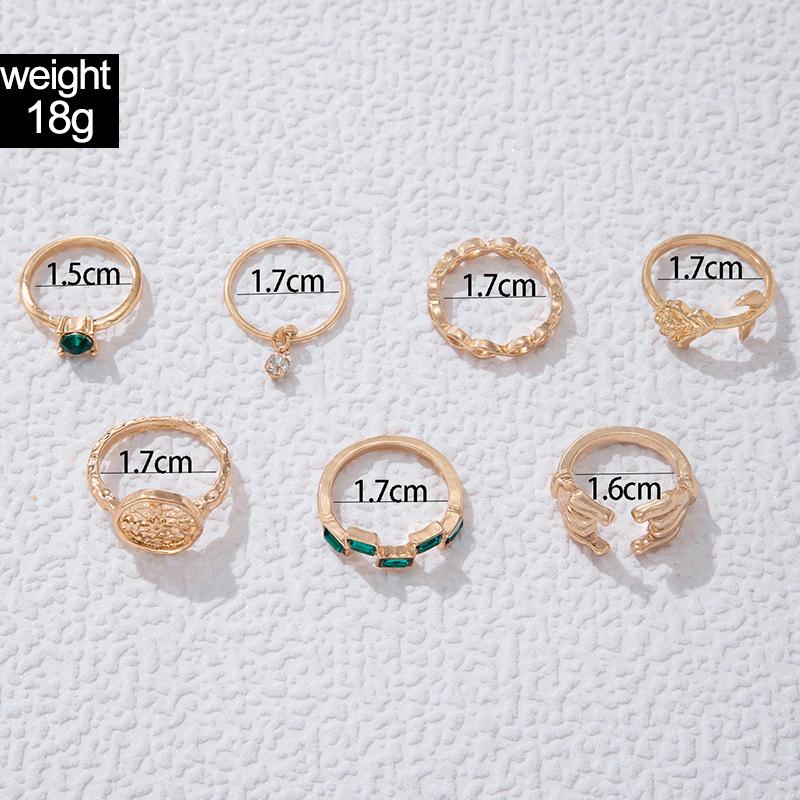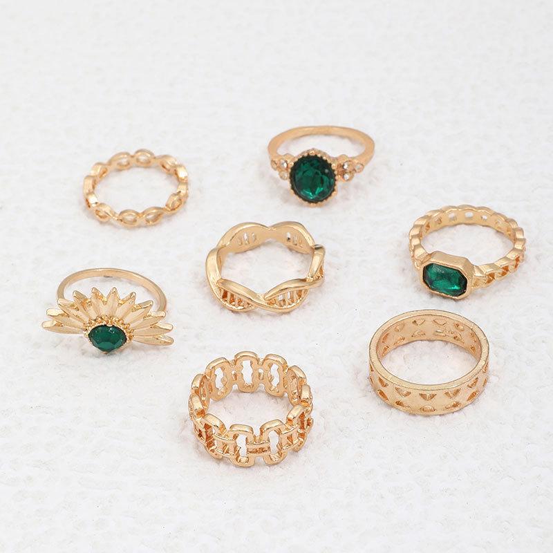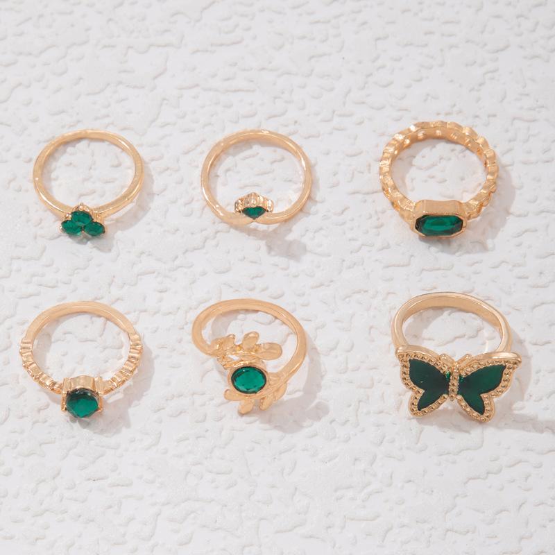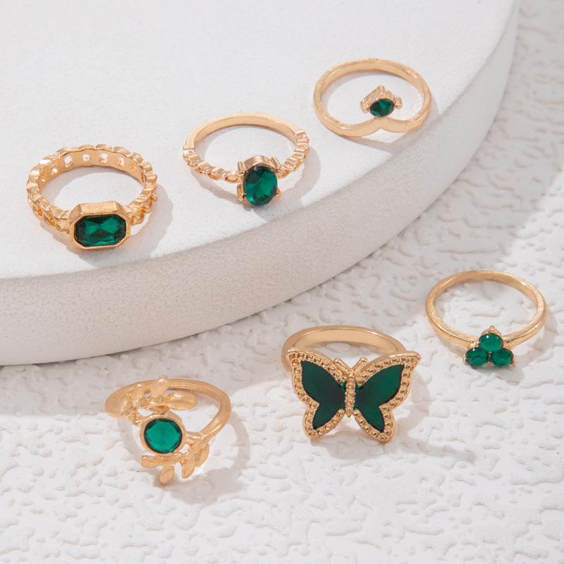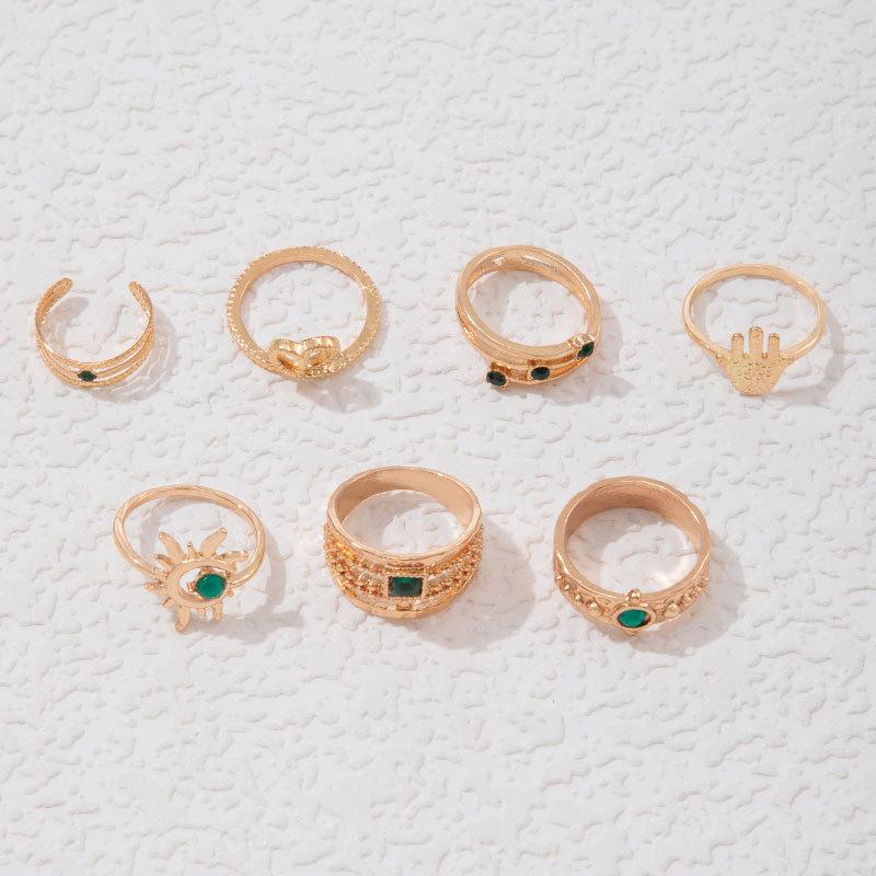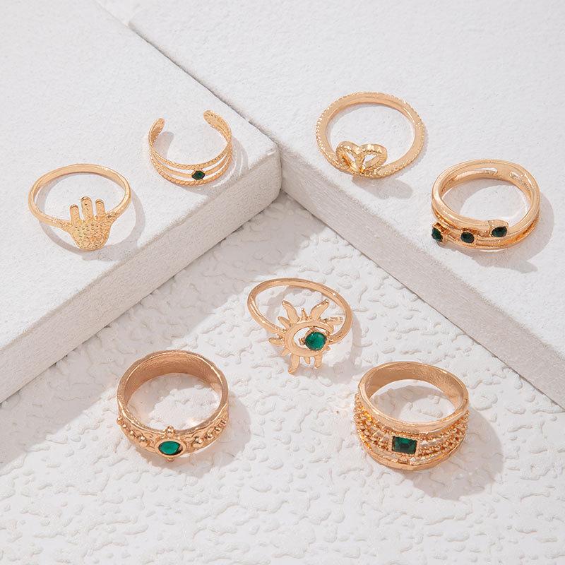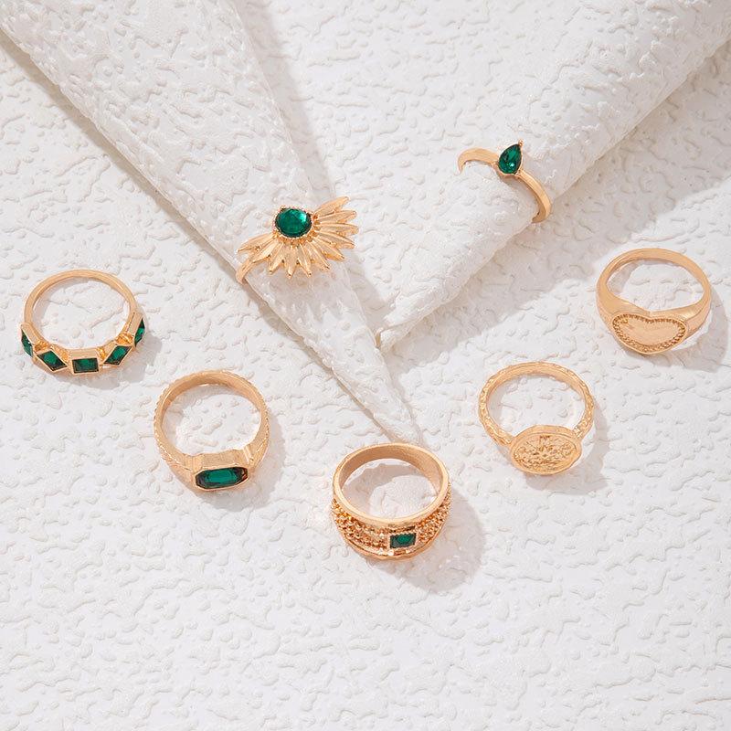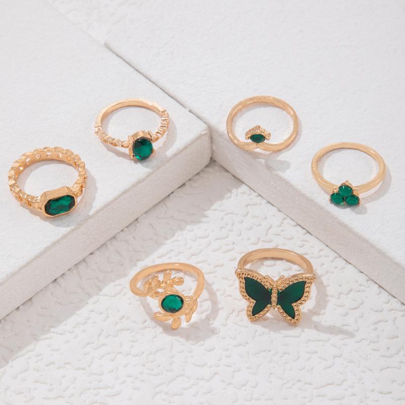 Anillo de Gema de Diamante Esmeralda de Imitación de Metal de Moda Retro Transfronteriza Europea y Americana Juego de Anillos de Serpiente en Forma de Corazón