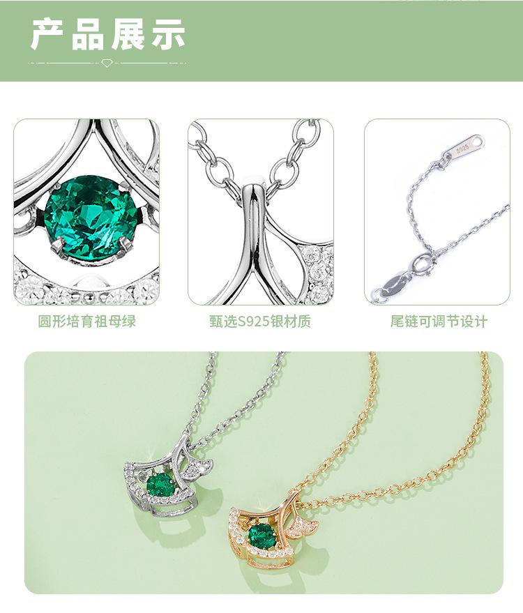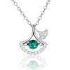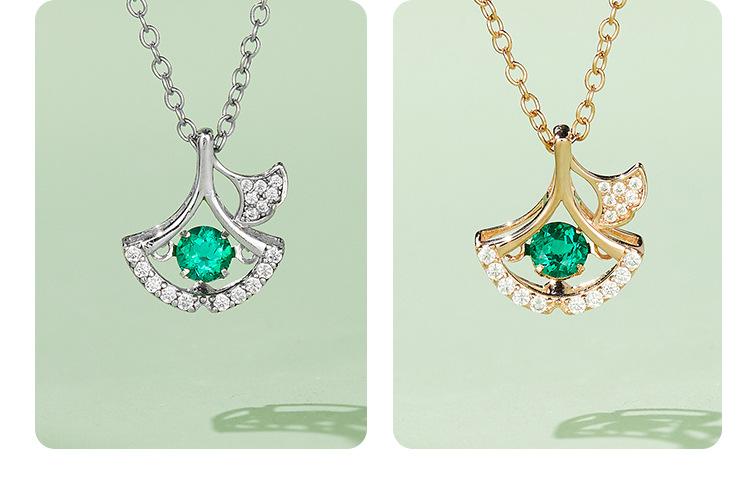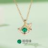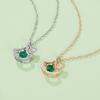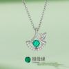 Colgante de falda de oro rosa y plata de ley S925 con esmeralda de cultivo redondo de 0,25 ct y cadena de clavícula.