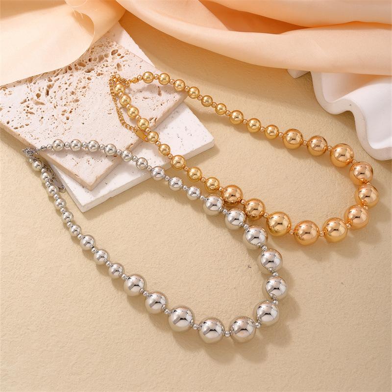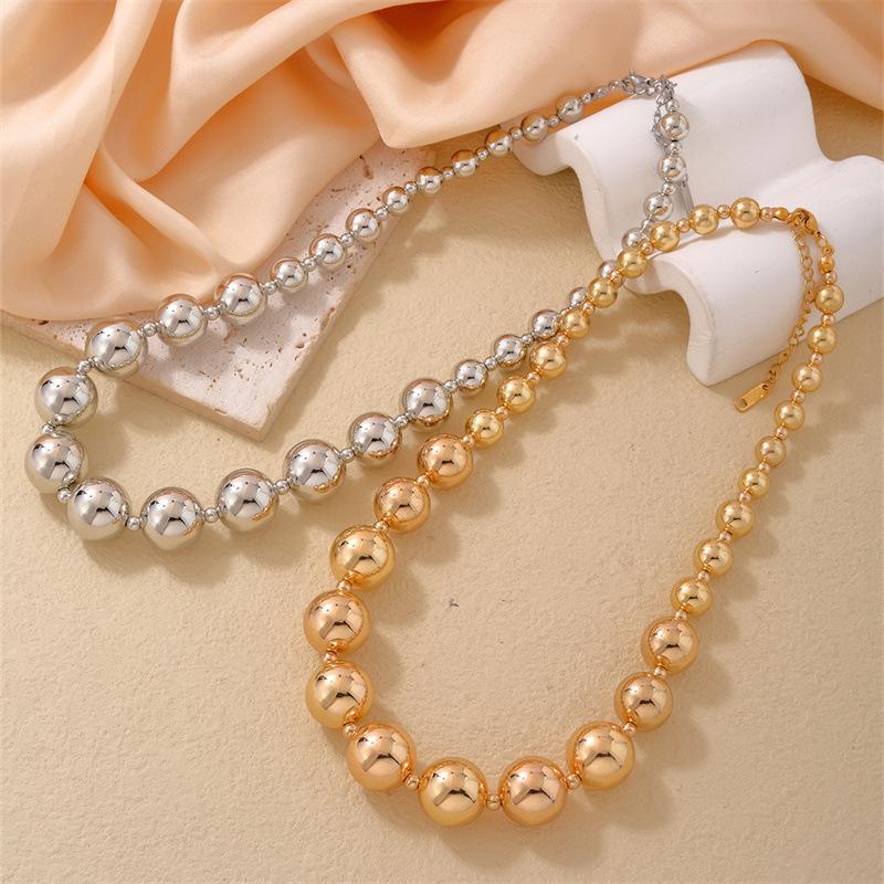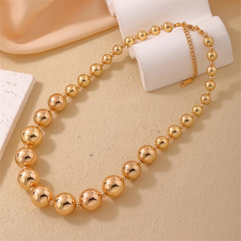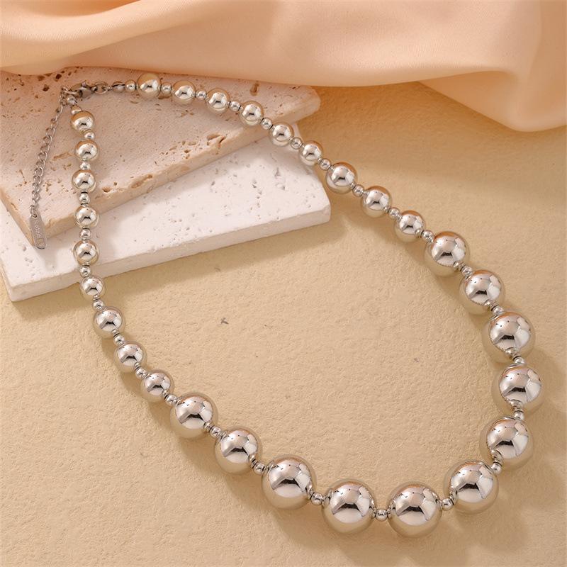 Venta al por mayor transfronteriza de moda europea y americana con personalidad exagerada, collar de acero de titanio con cuentas de la suerte, cadena de clavícula de acero inoxidable dulce y fresca para mujer