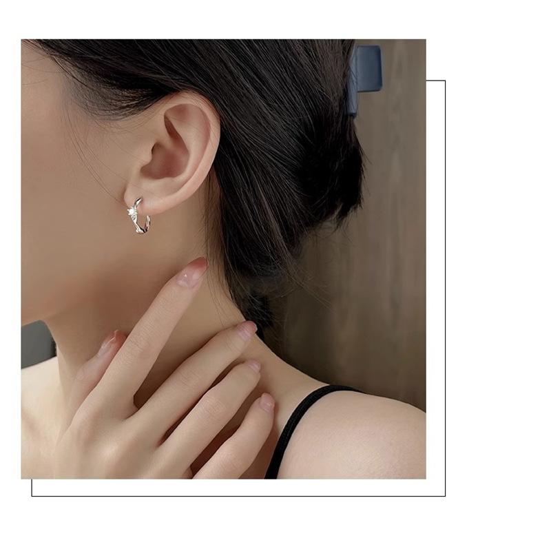 Pendientes de circonita con diseño de nicho simple y hebilla de oreja de Moebius para mujer, elegantes y modernos, de estilo frío.
