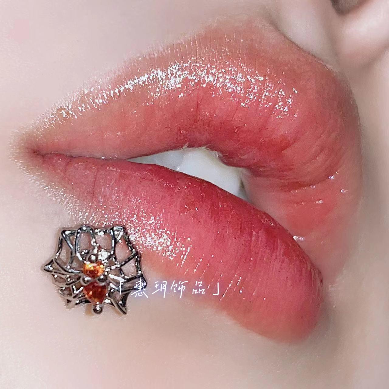 Steel Spider Web Lip Stud, Black Spider Web Lip Stud