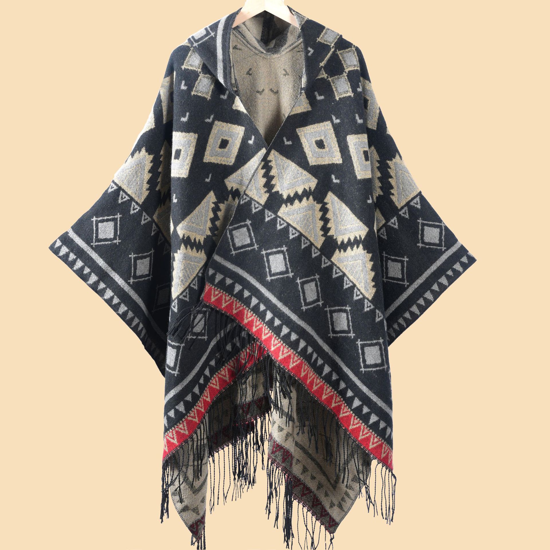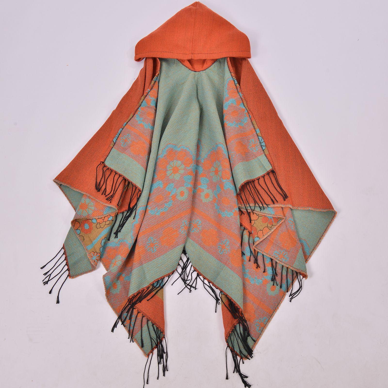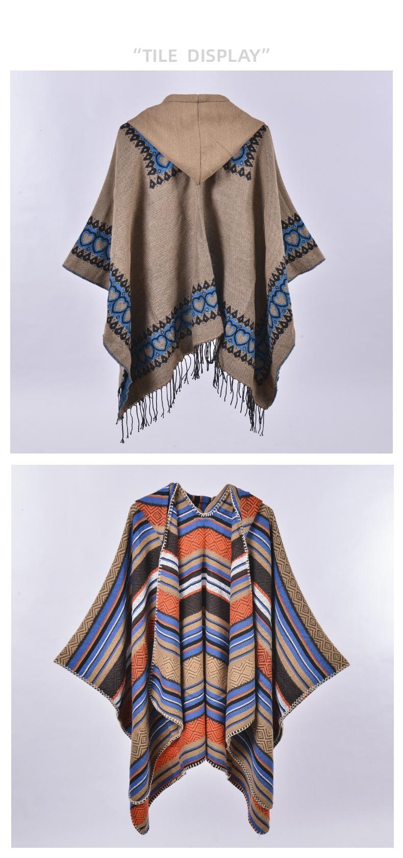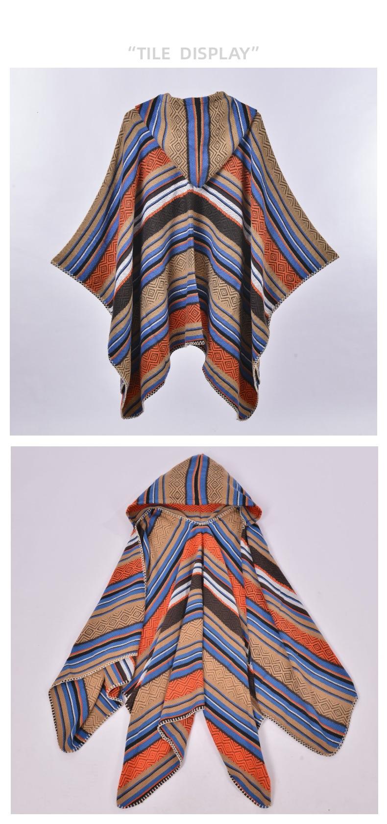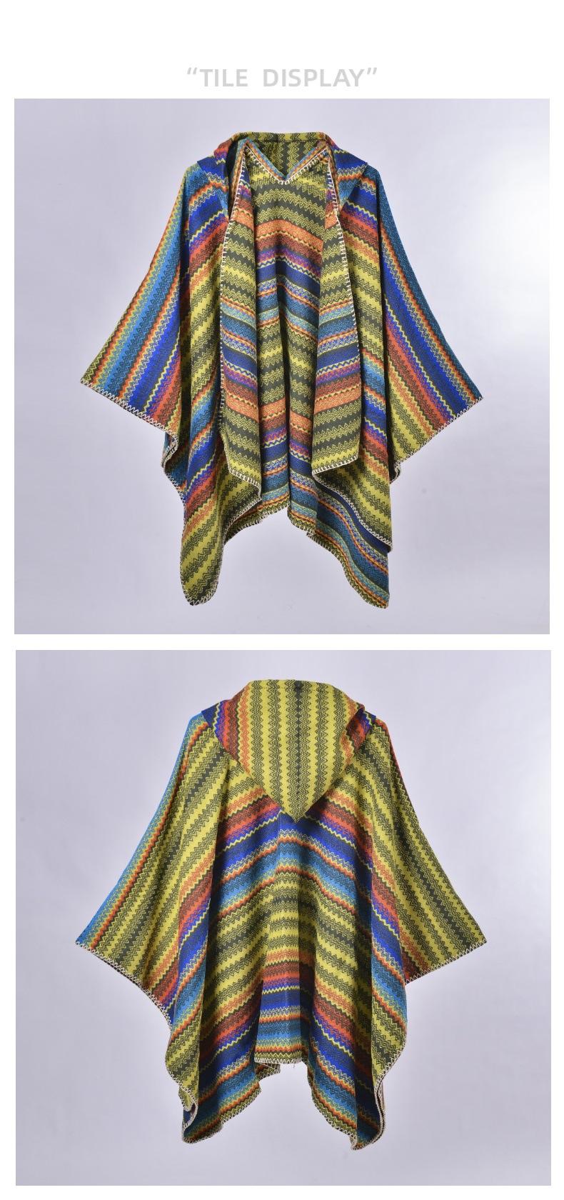 Nuevo chal con capucha dividido para mujer, de otoño e invierno, a la moda, con rayas de colores, capa, chal, explosiones transfronterizas