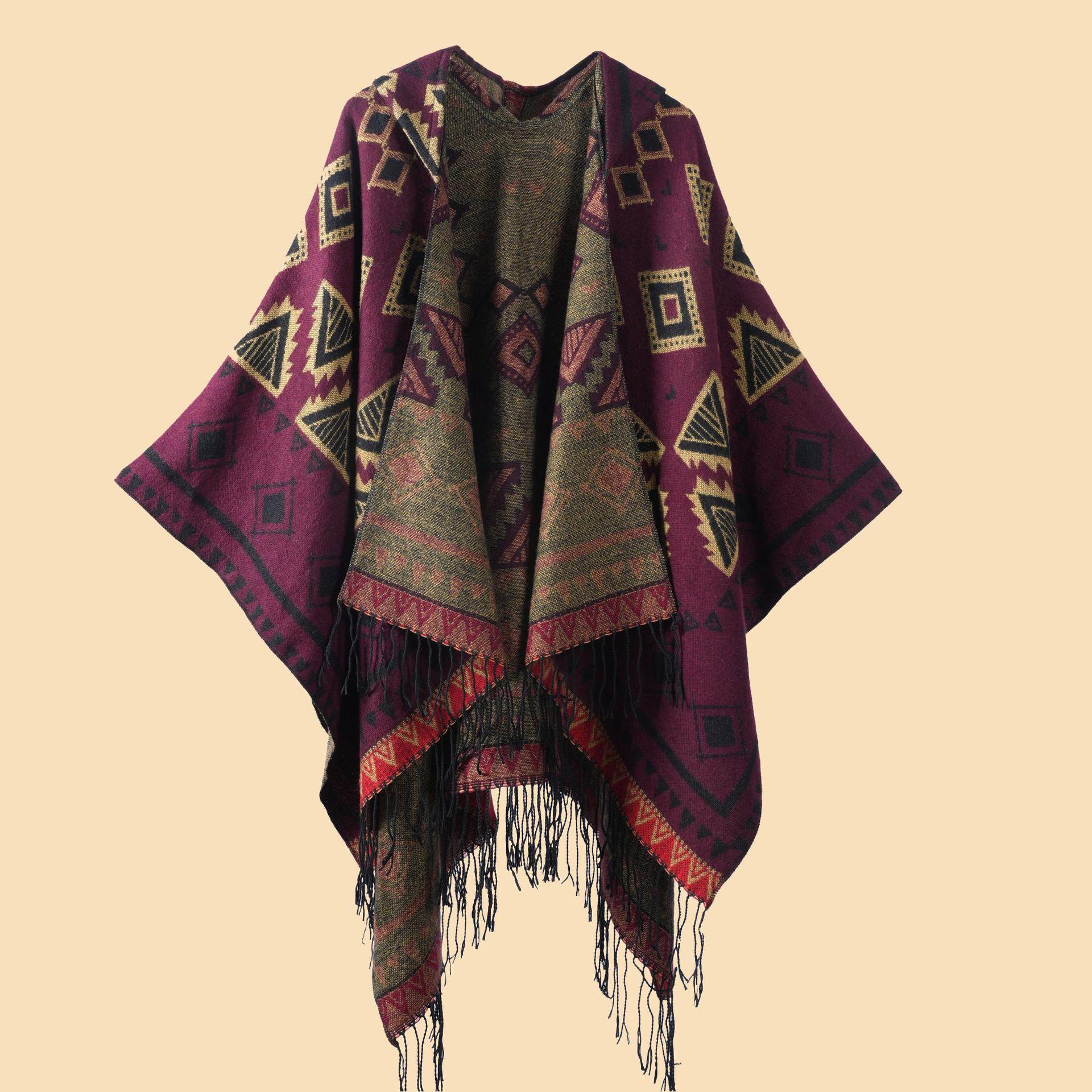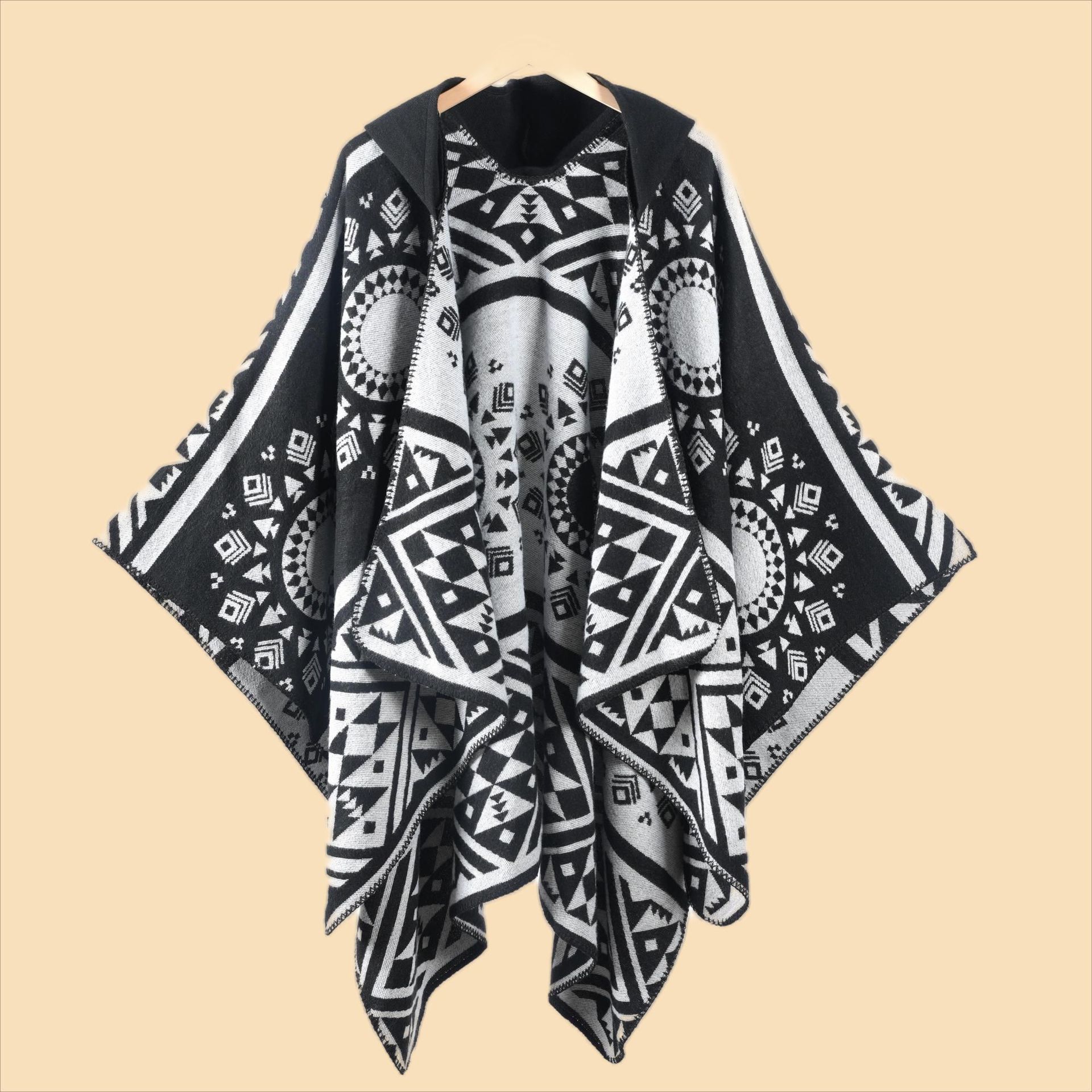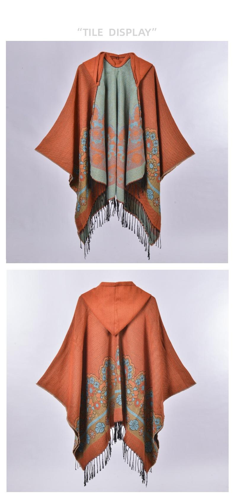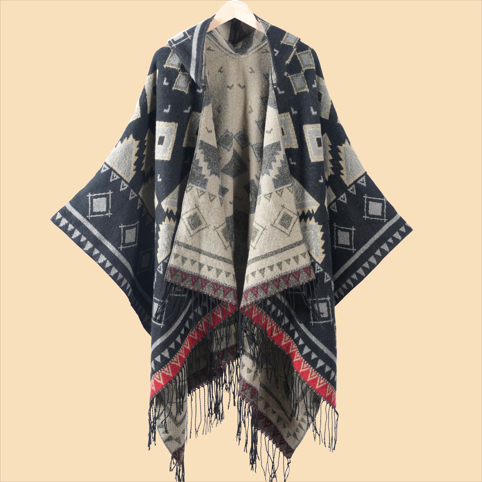 Nuevo chal con capucha dividido para mujer, de otoño e invierno, a la moda, con rayas de colores, capa, chal, explosiones transfronterizas