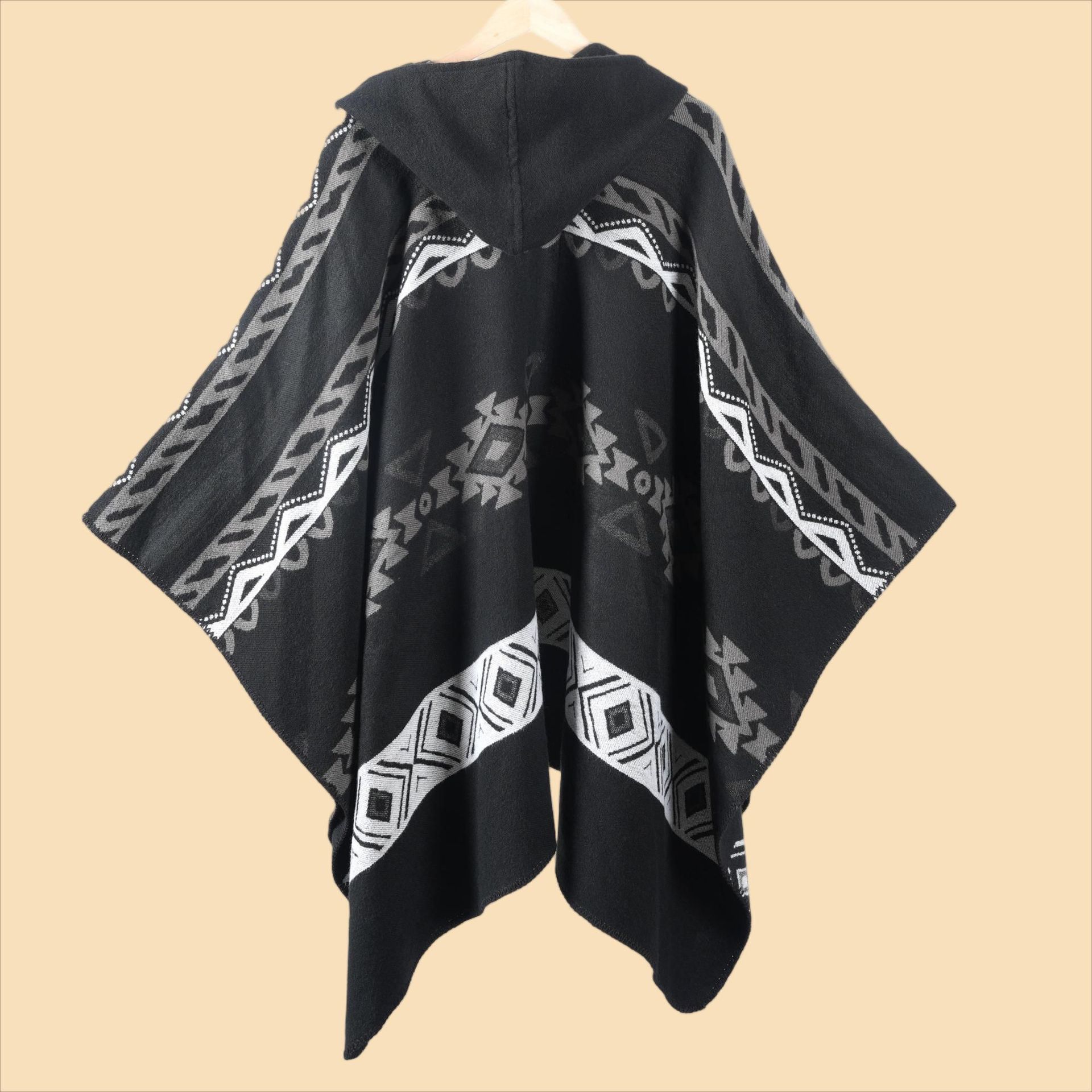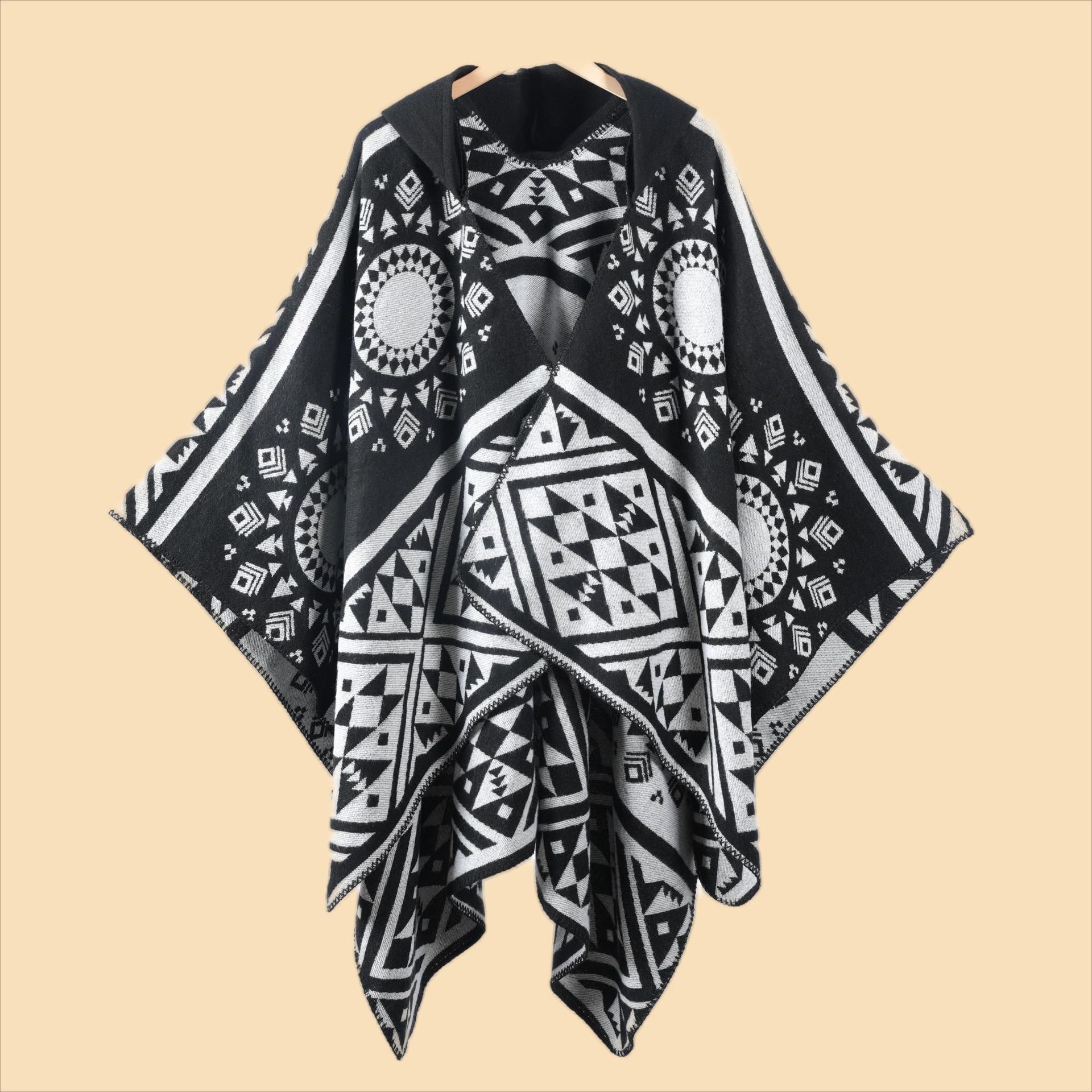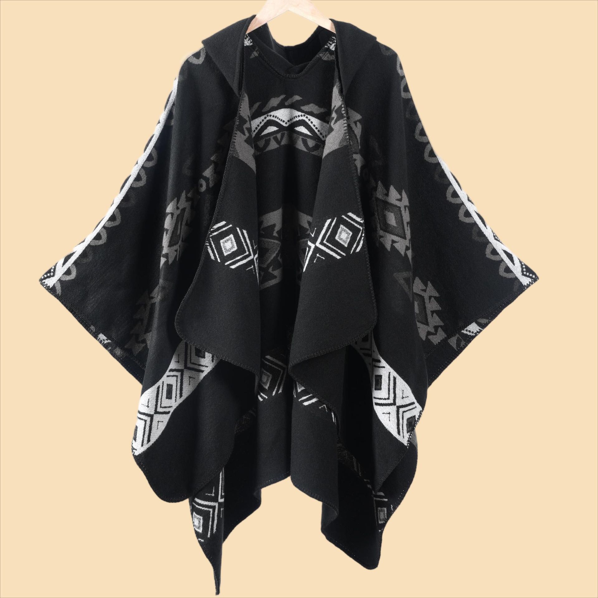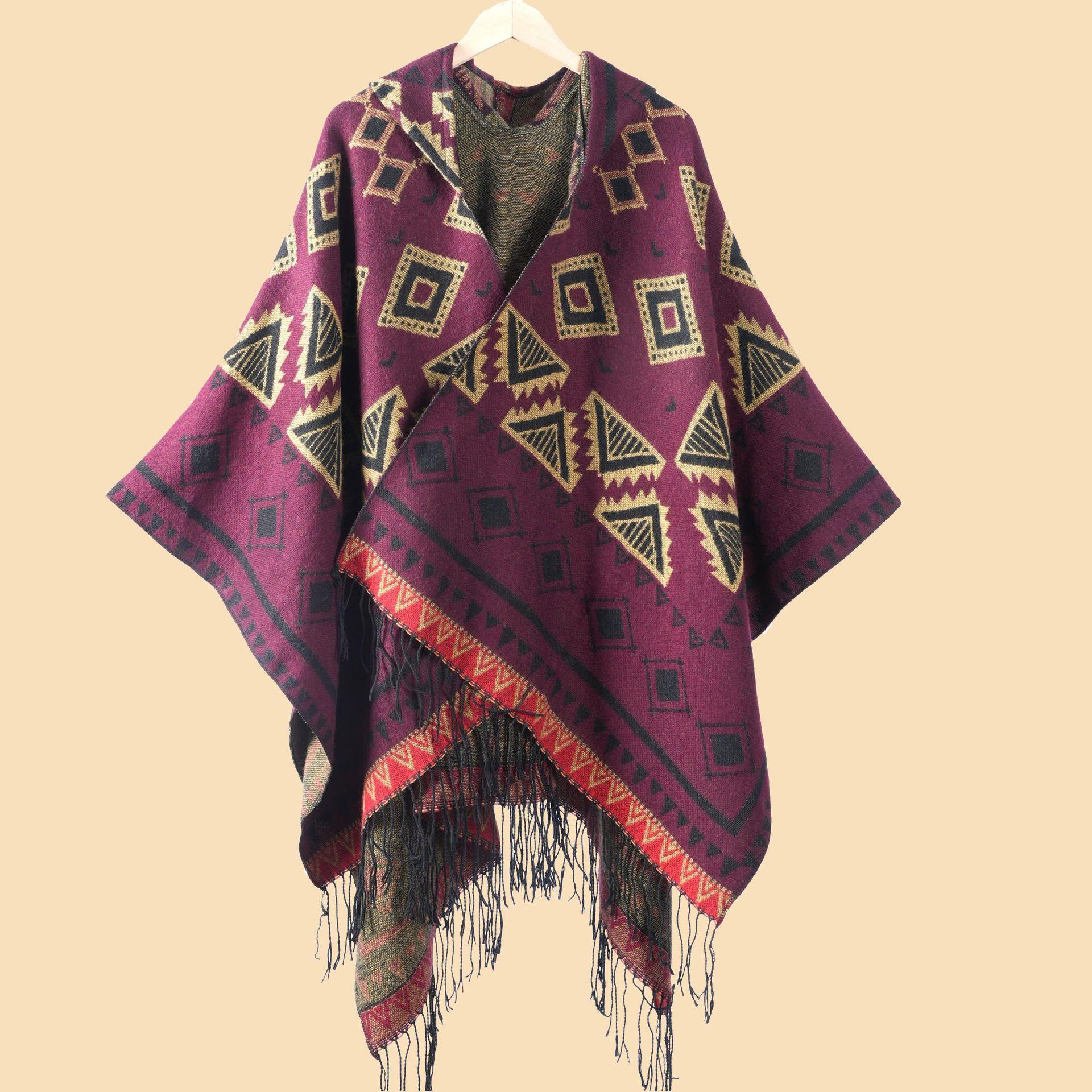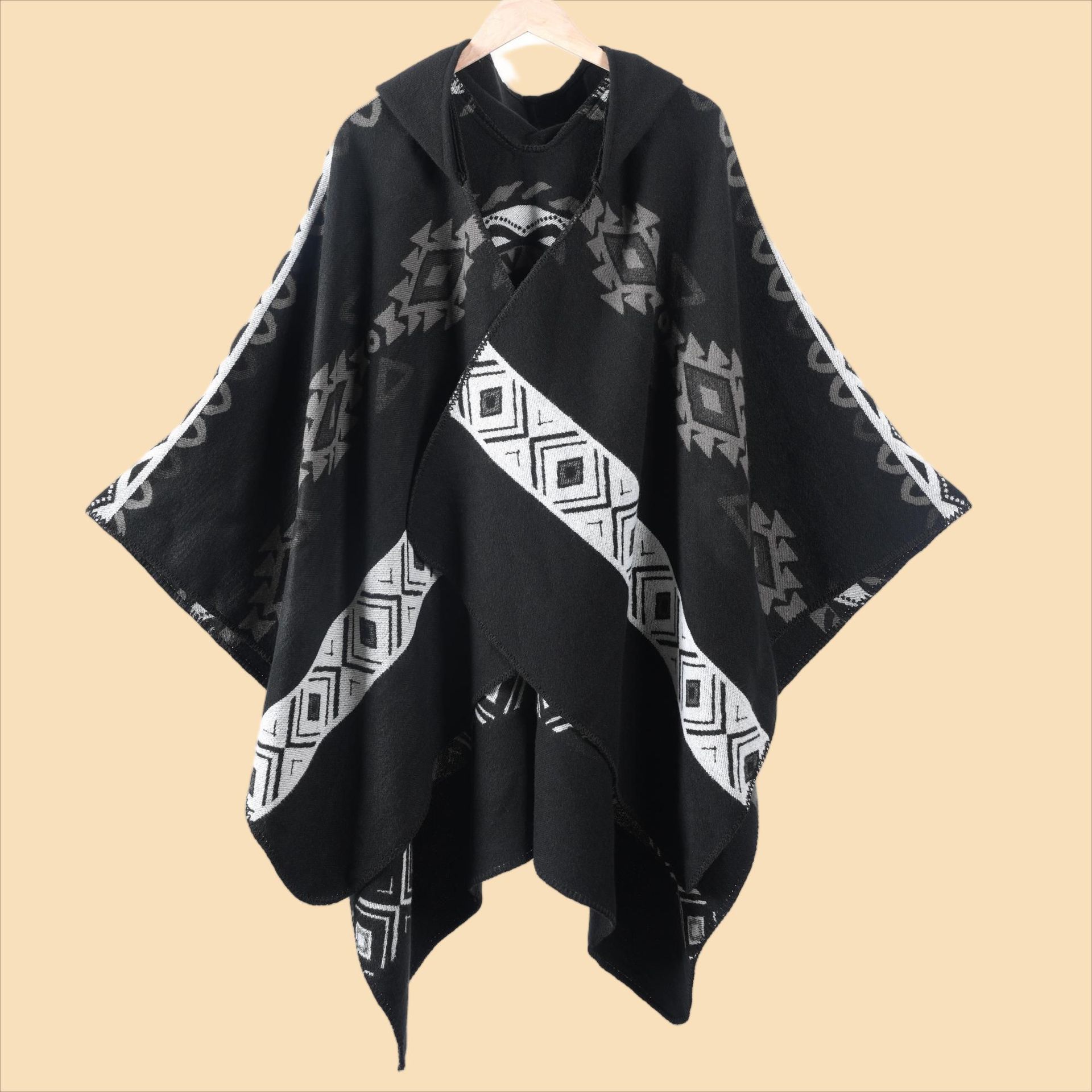 Nuevo chal con capucha dividido para mujer, de otoño e invierno, a la moda, con rayas de colores, capa, chal, explosiones transfronterizas